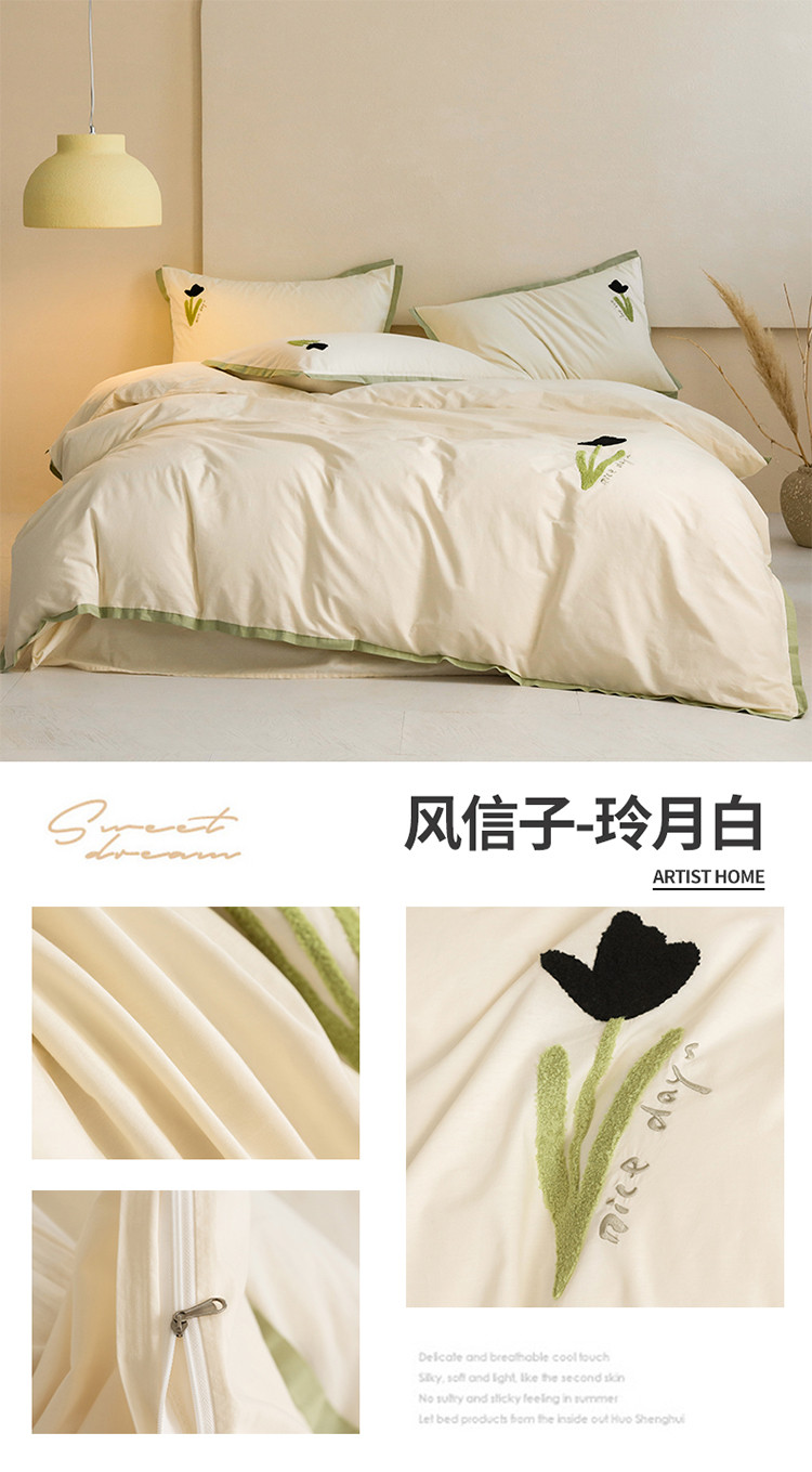 (总)名品优仓 2023新款高支高密长绒棉贴布绣毛巾绣四件套-郁金香,郁金香-粉色,郁金香-蓝色,郁金香-绿色