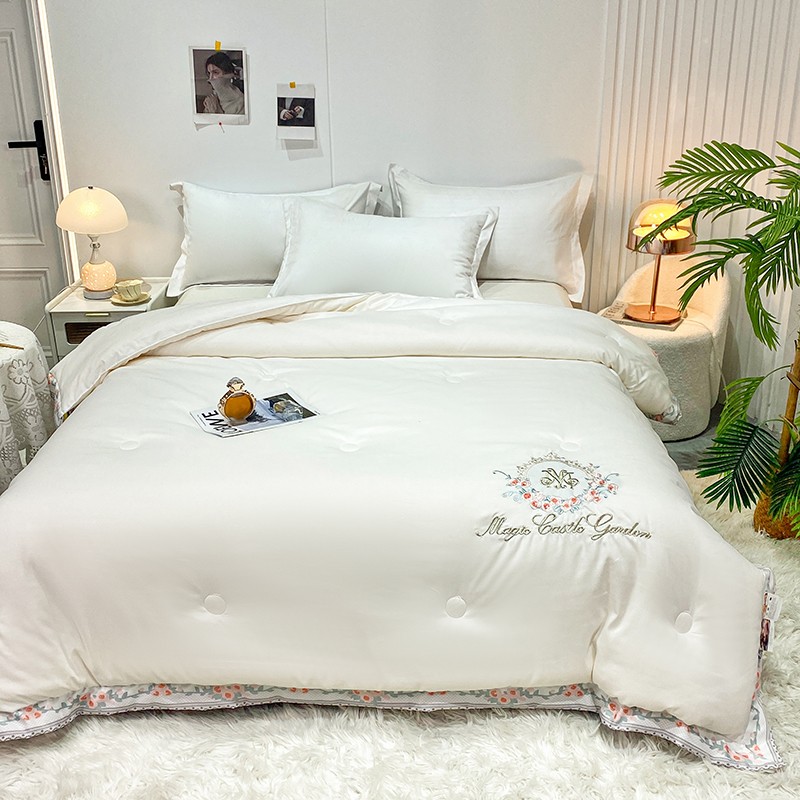 2023丽卡家纺-梦露刺绣款春秋被子被芯冬被 奶油白