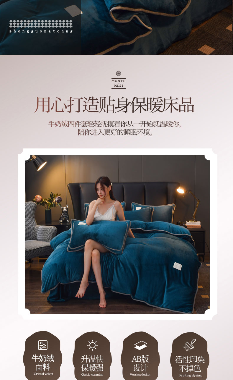 (总)啊雅家居 2026新款纯色包边双面牛奶绒四件套