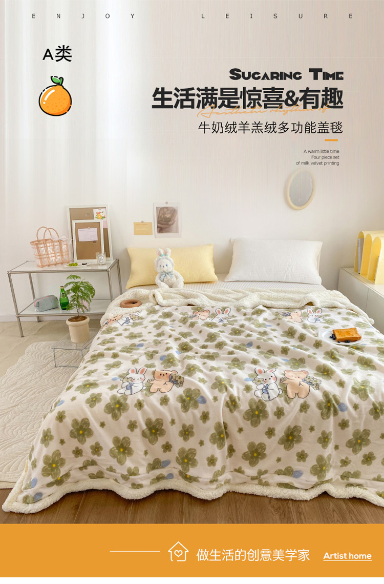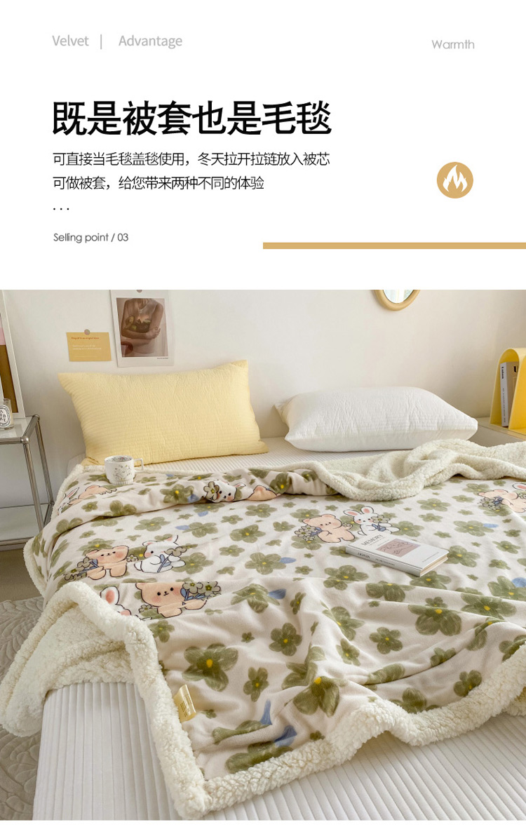 商品名称:寐居 2022新款牛奶绒羊羔绒被套两用多功能盖毯 熊兔之恋