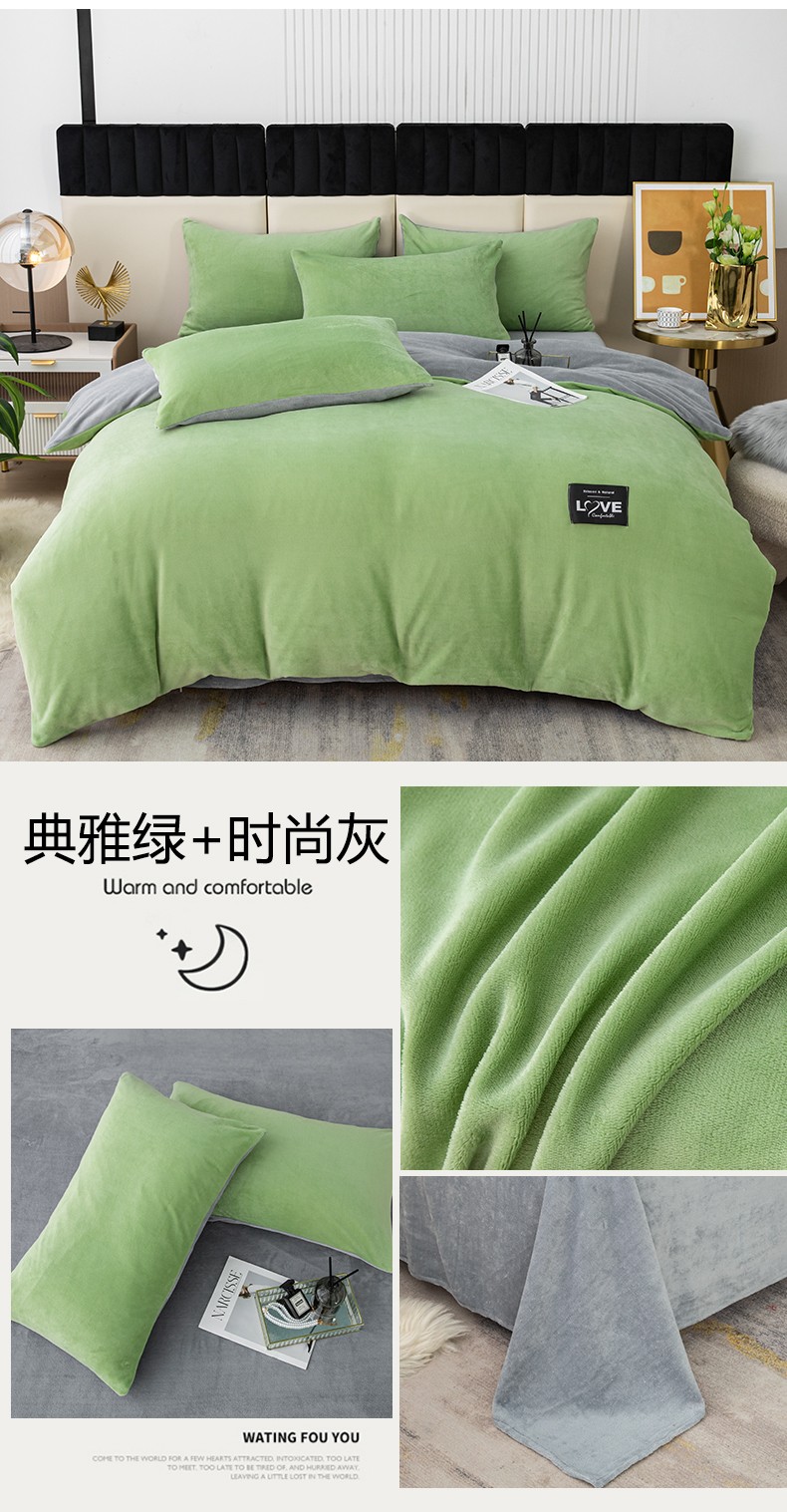 商品名称:鸿羽樱2022新款纯色牛奶绒四件套 温馨粉+时尚灰