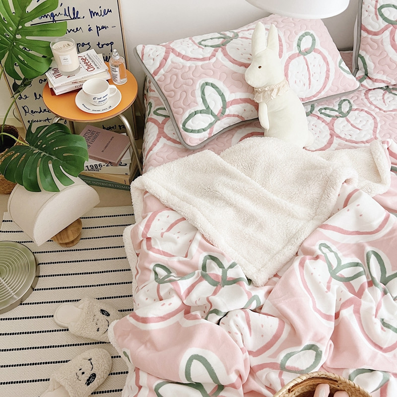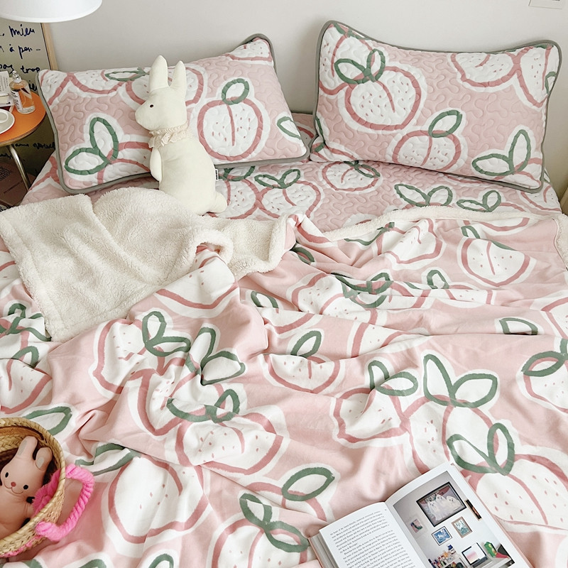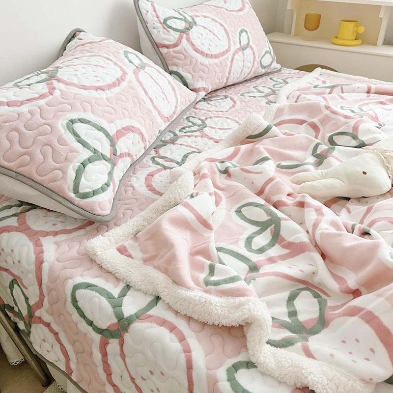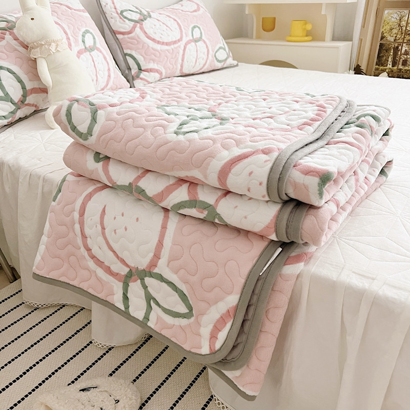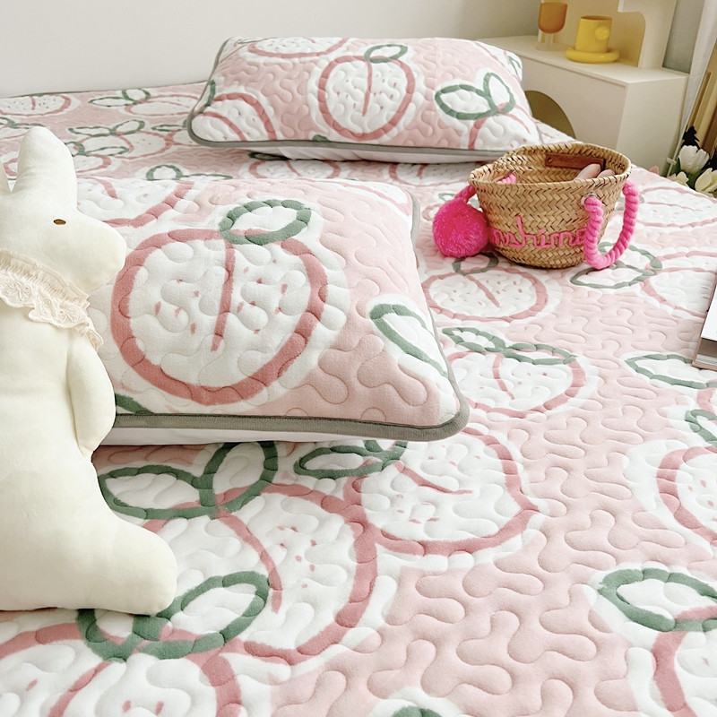 美乐迪 2022新款多功能牛奶绒亲肤棉床盖套件 大蜜桃