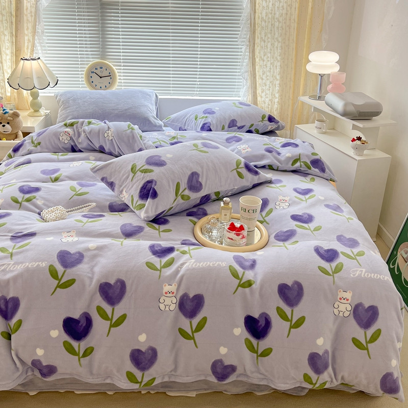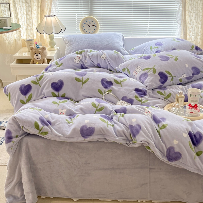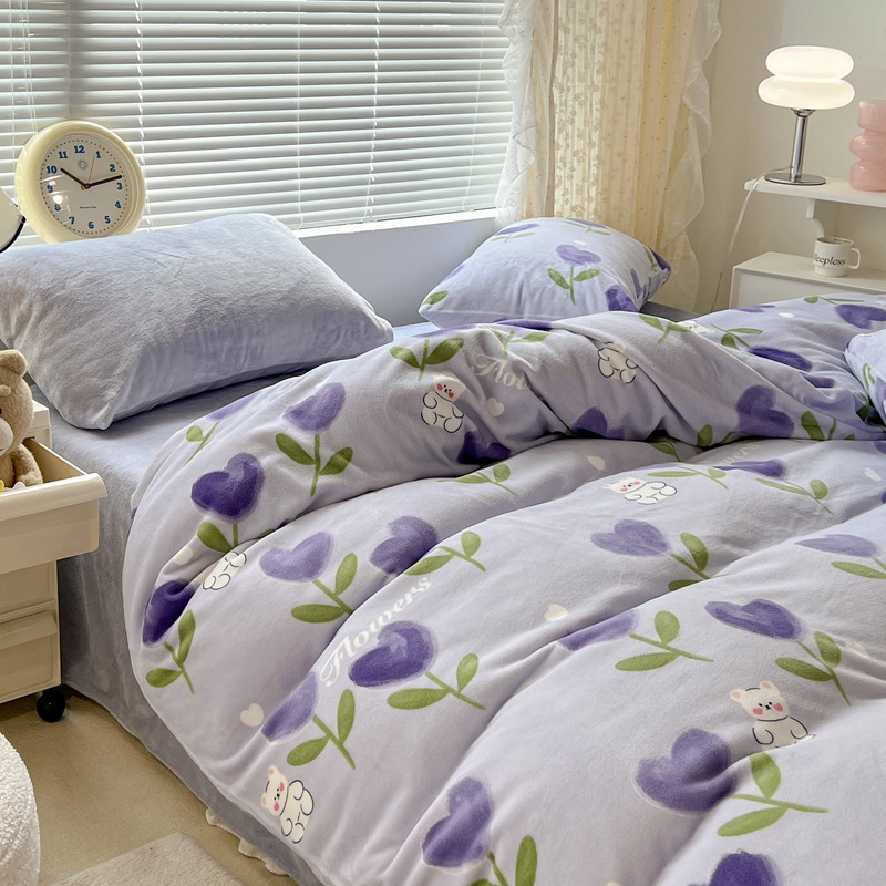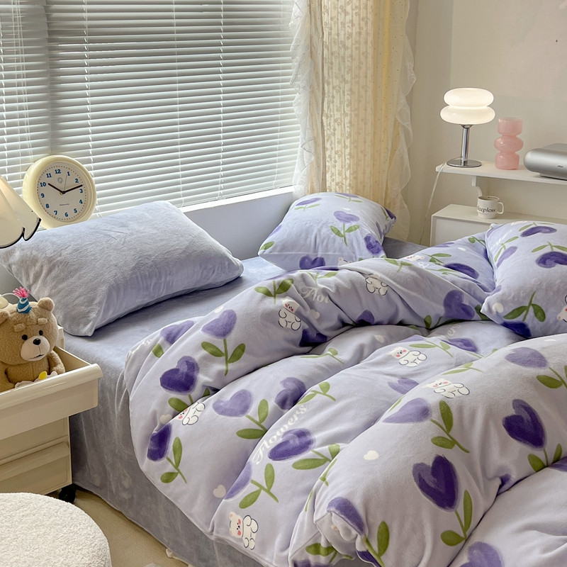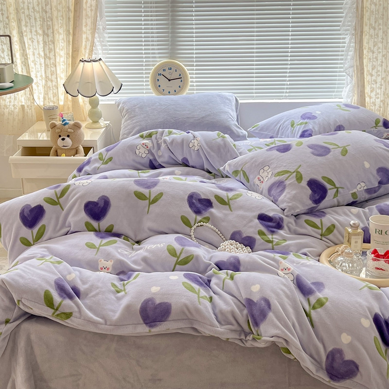 昔可 2022新款牛奶绒卡通系列四件套 紫底郁金香