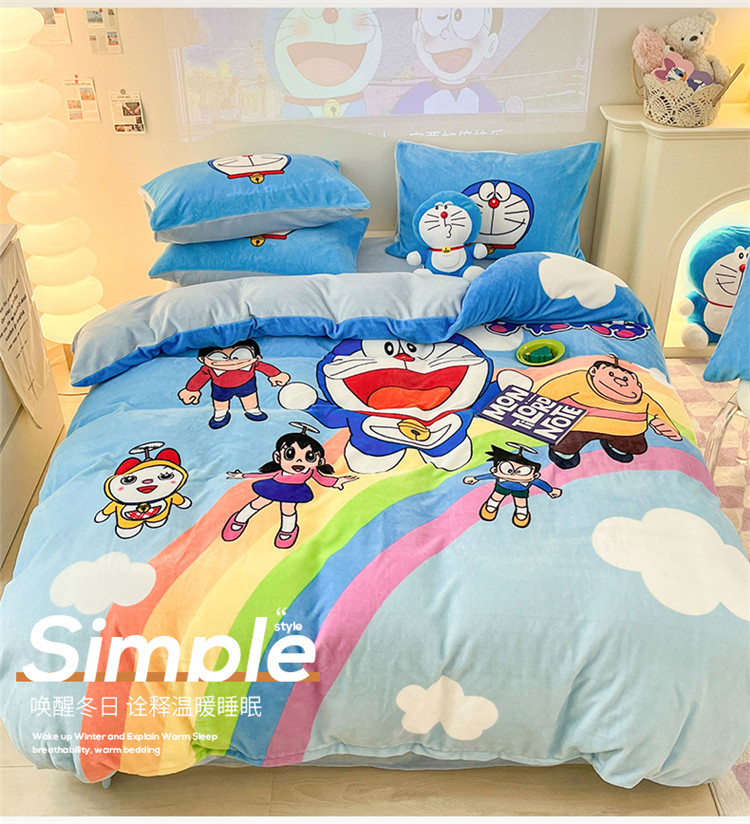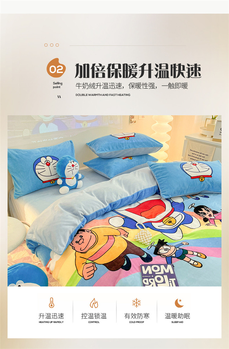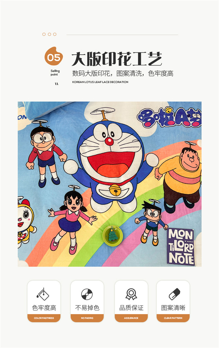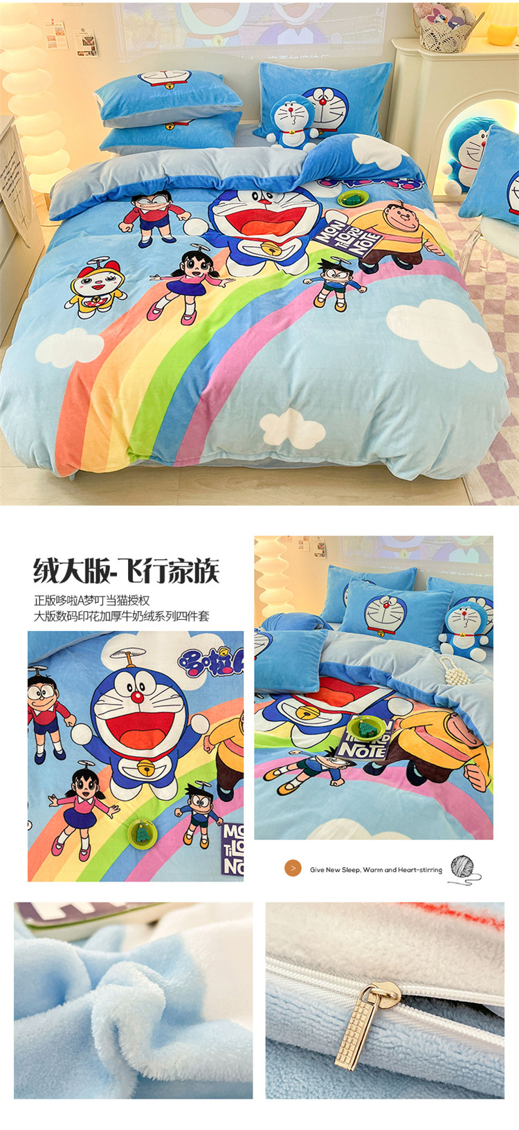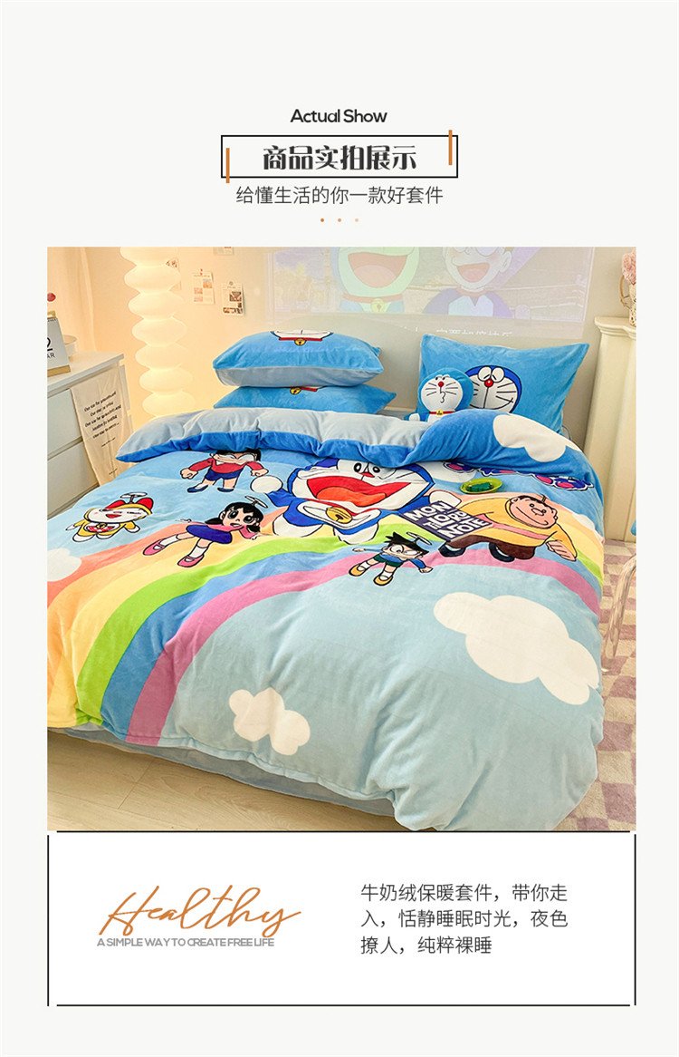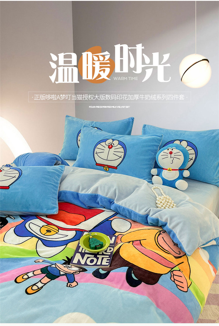 正版哆啦A梦叮当猫授权大版数码印花加厚牛奶绒系列四件套 绒大版-飞行家族