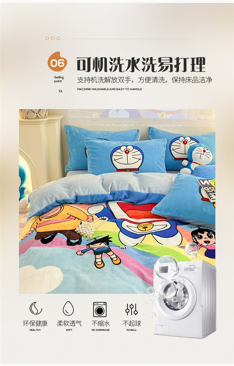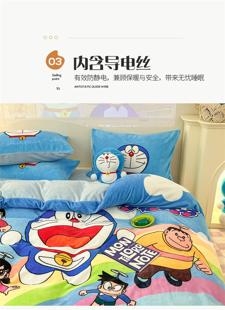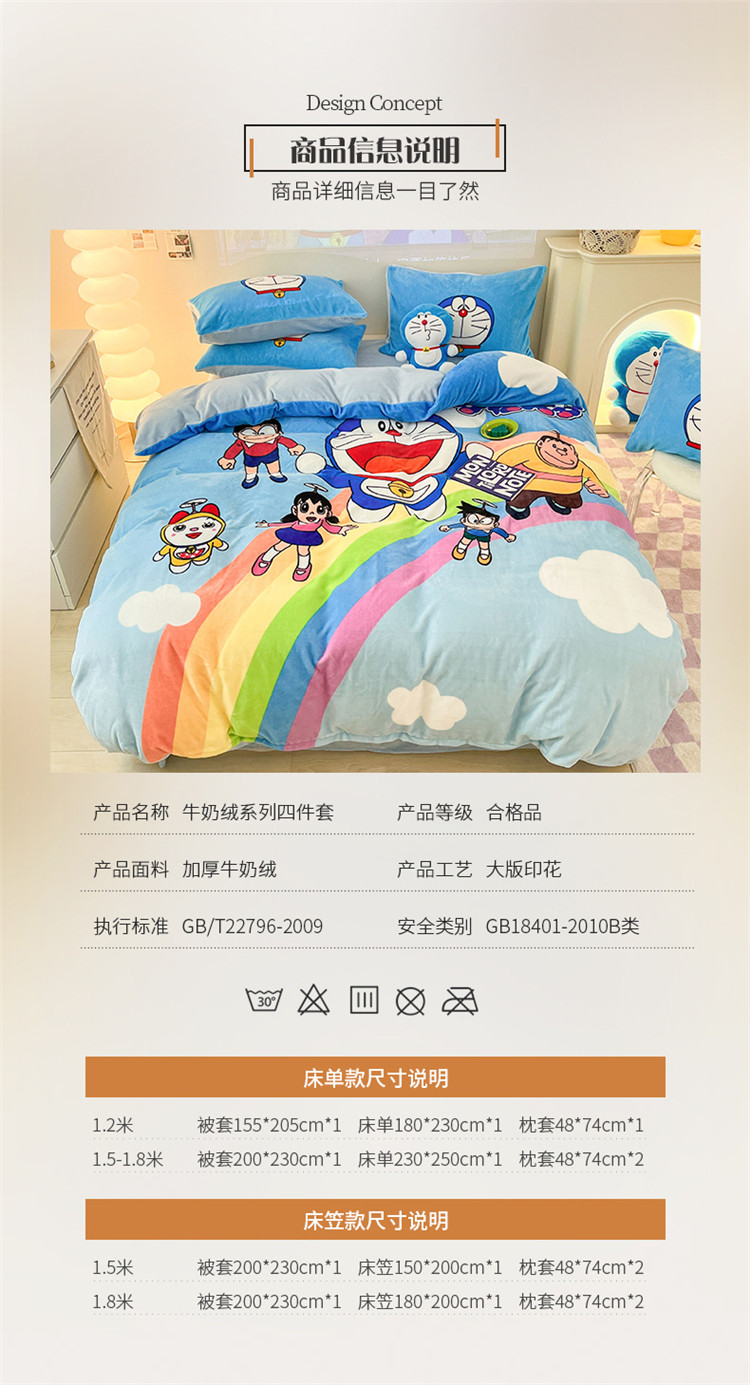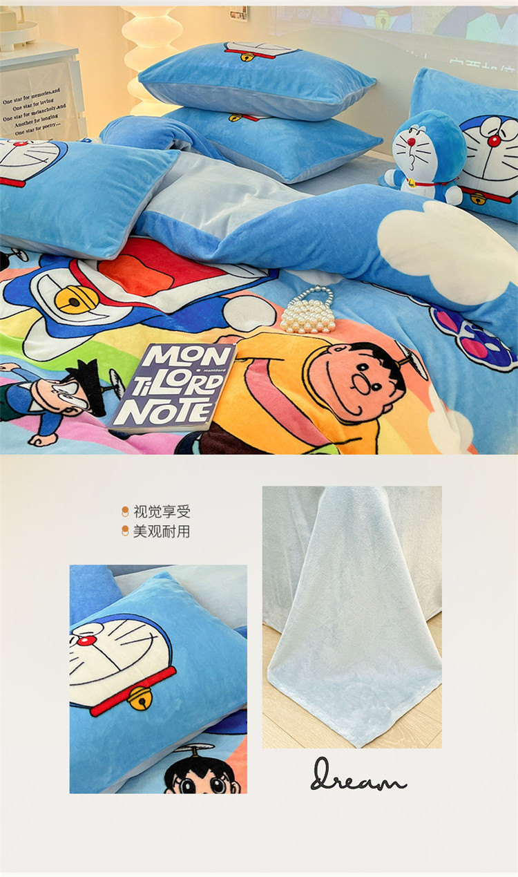 商品名称:正版哆啦A梦叮当猫授权大版数码印花加厚牛奶绒系列四件套 绒大版-飞行家族