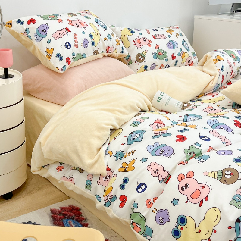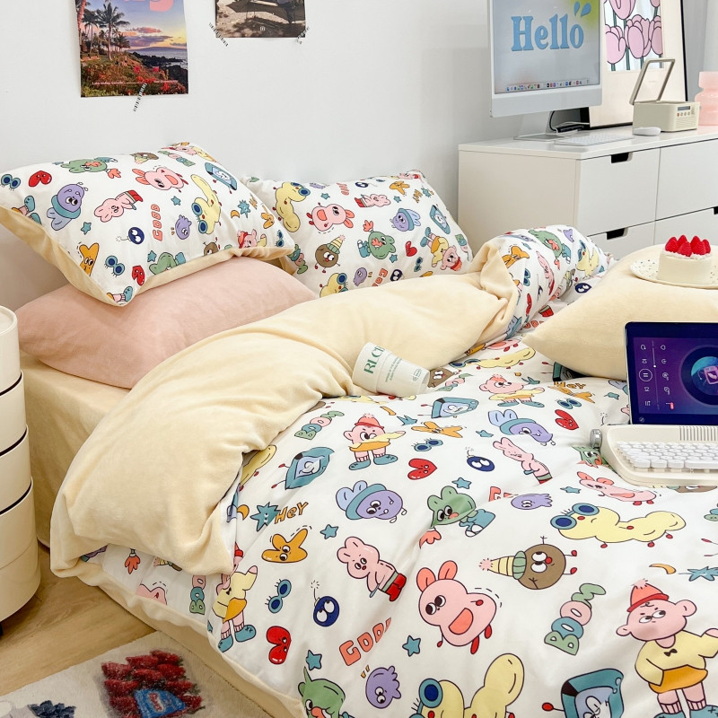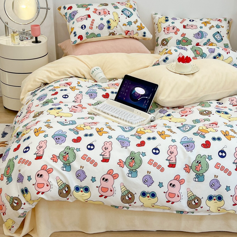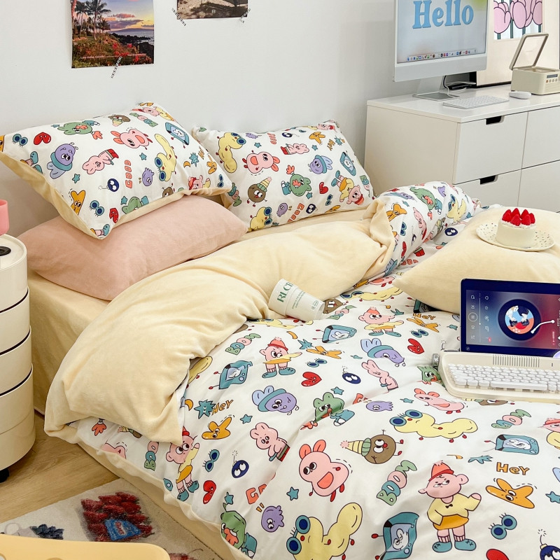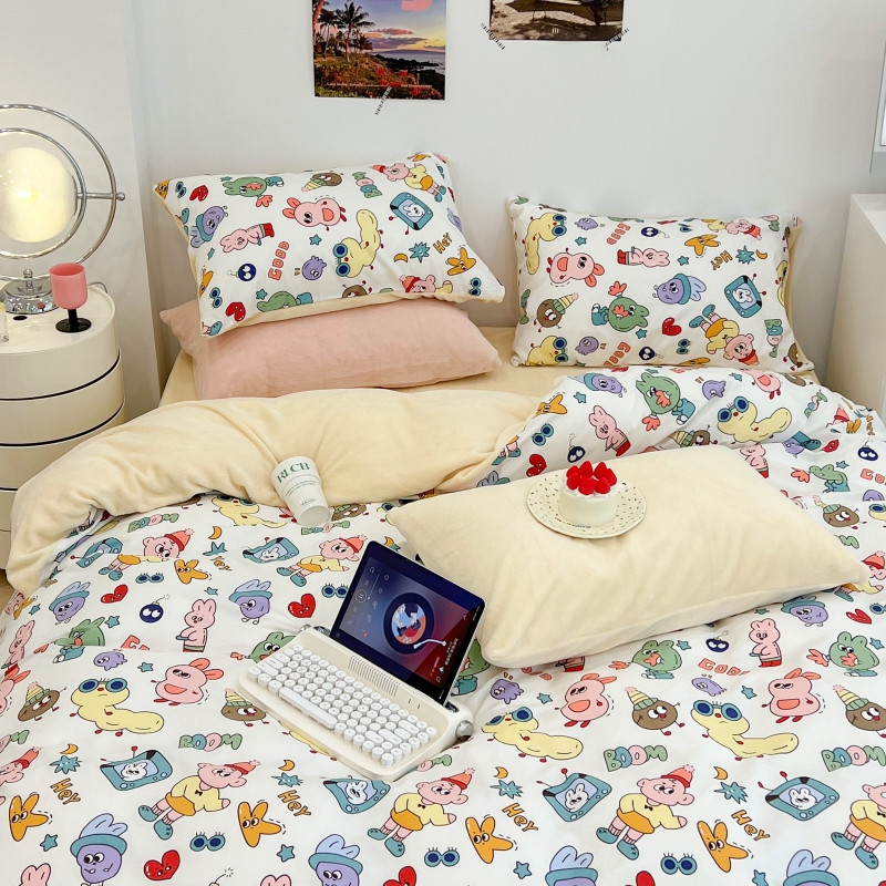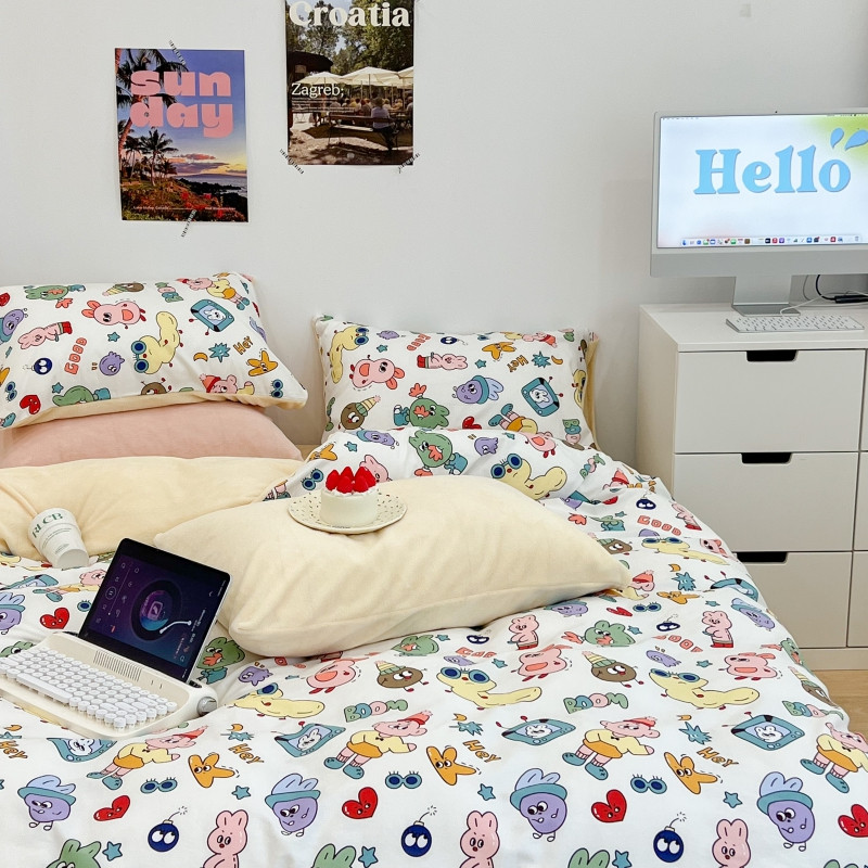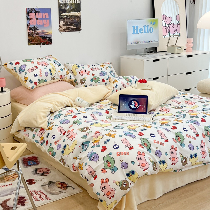 (总)昔可 2023新款学生季卡通普通款四件套,彩色气球熊,彩条恐龙,憨憨熊,花蜜小兔,蘑菇兔,圈圈草莓,蔬菜小兔,郁金香小萌狗