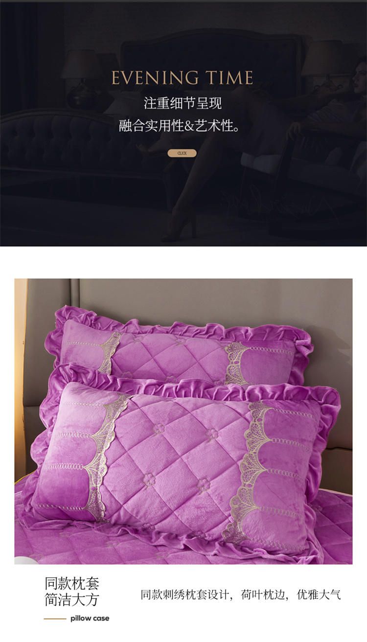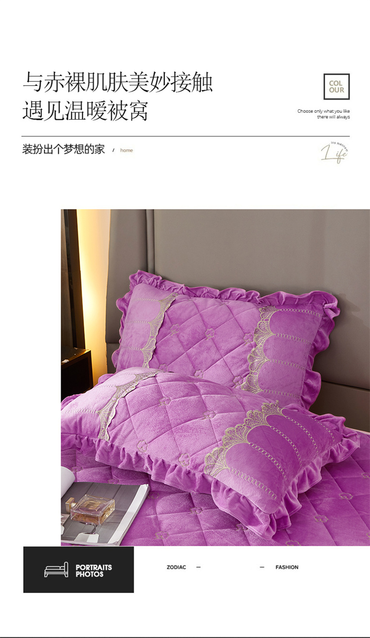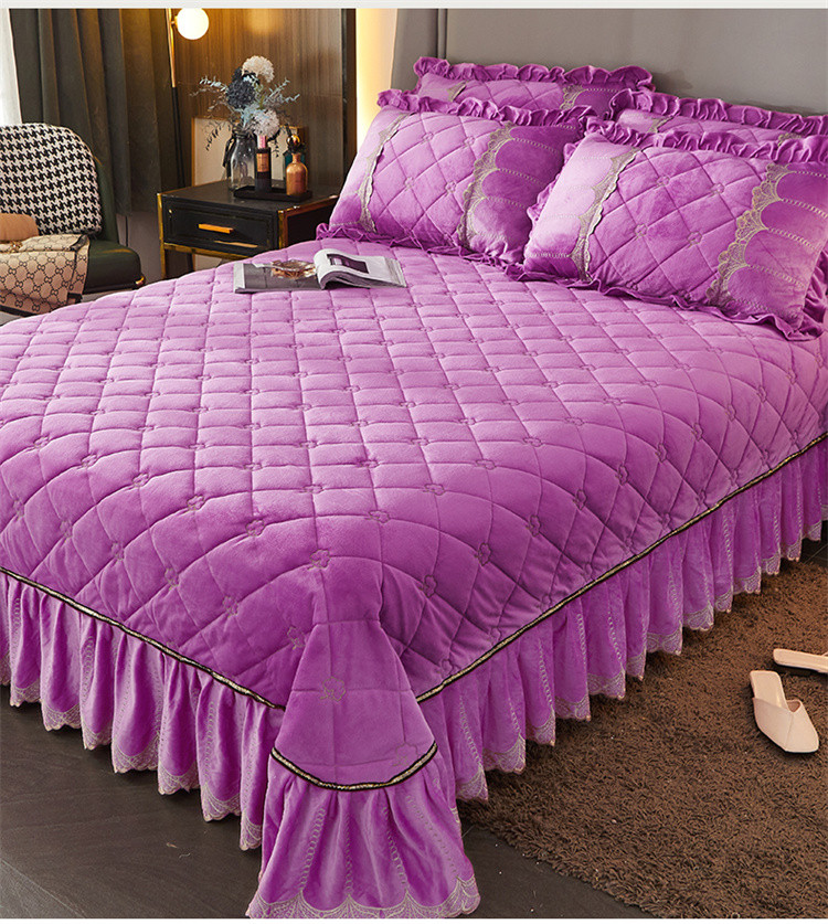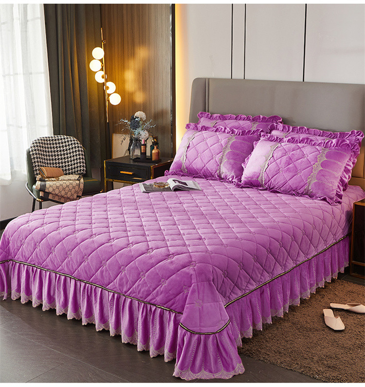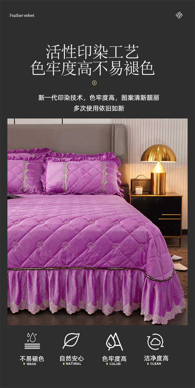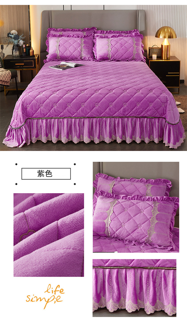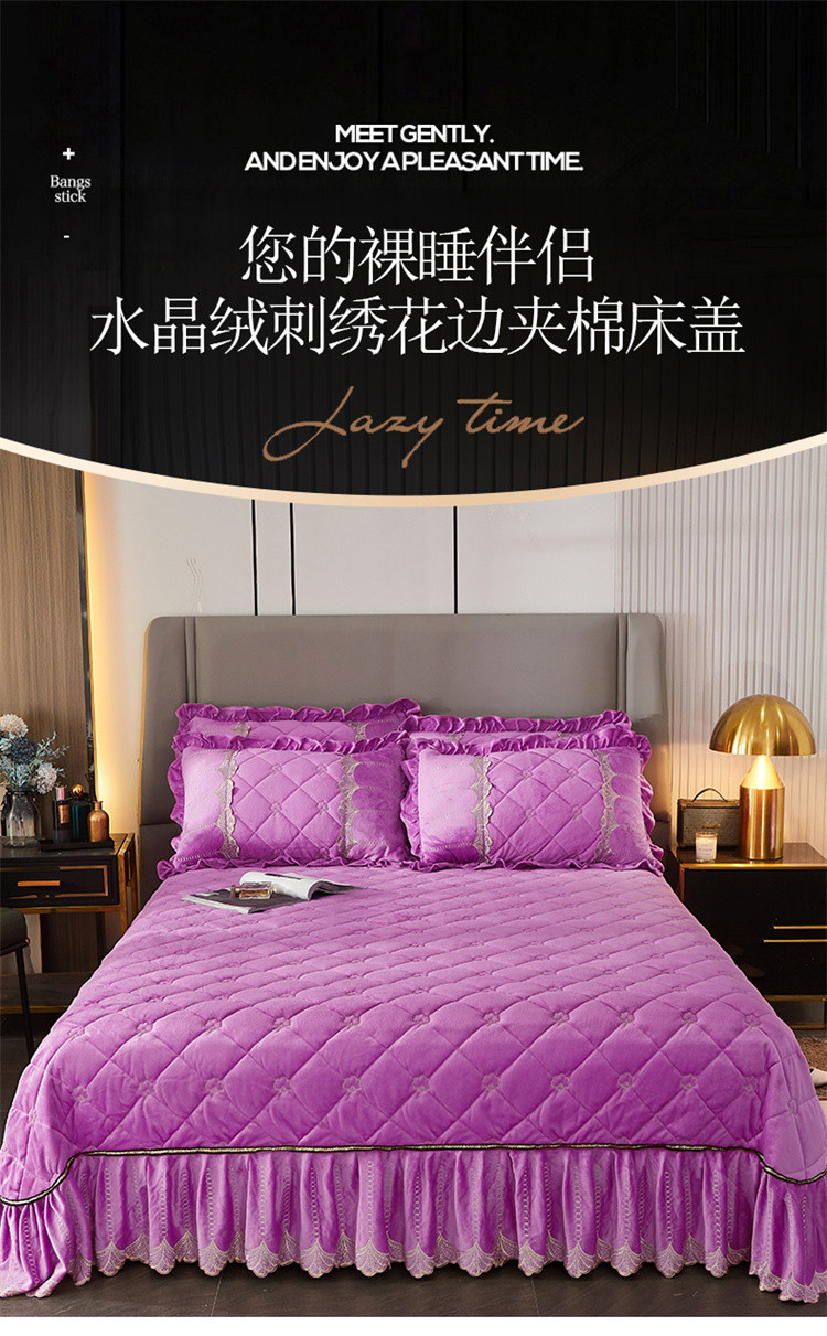 商品名称:十个点家纺 2024新款刺绣水晶绒床盖三件套 紫色