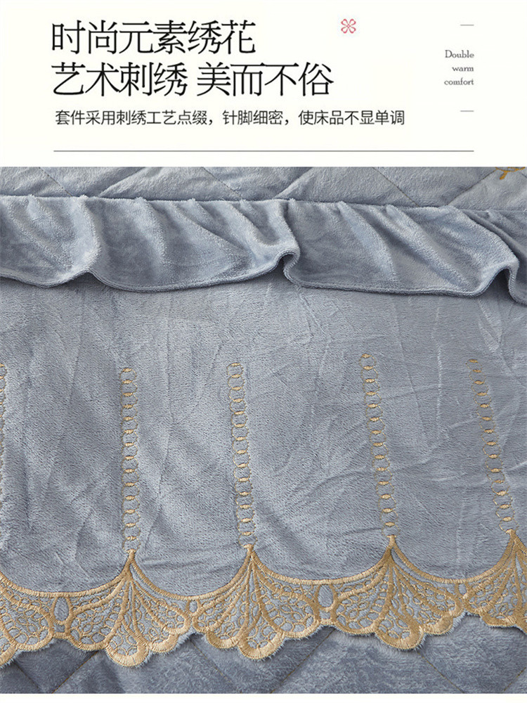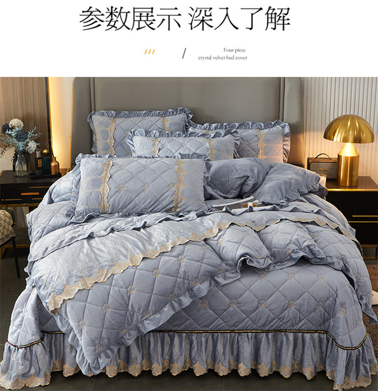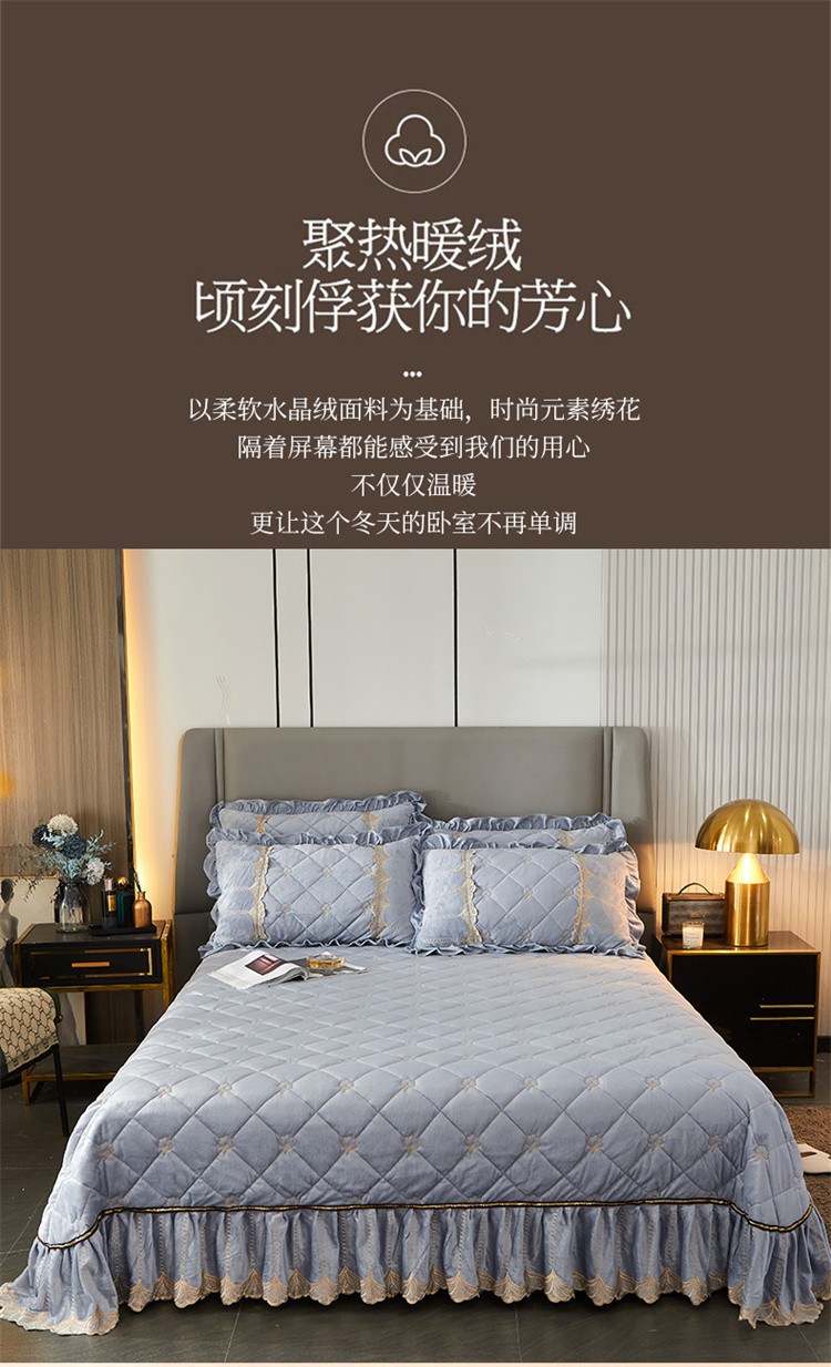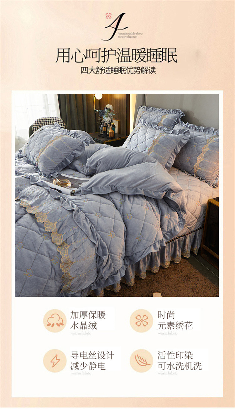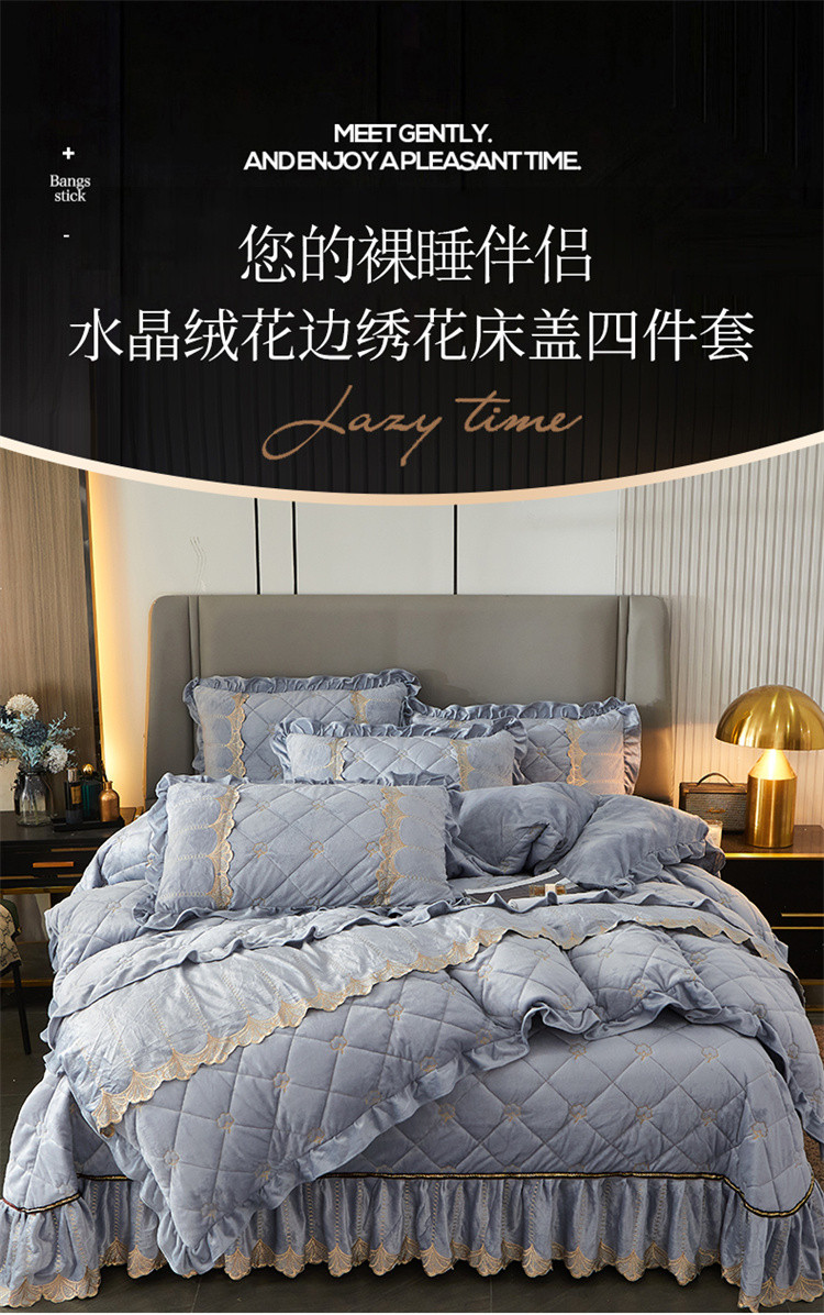 商品名称:十个点家纺 2024新款刺绣水晶绒床盖四件套 灰色