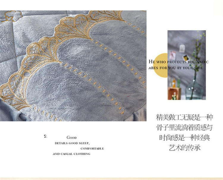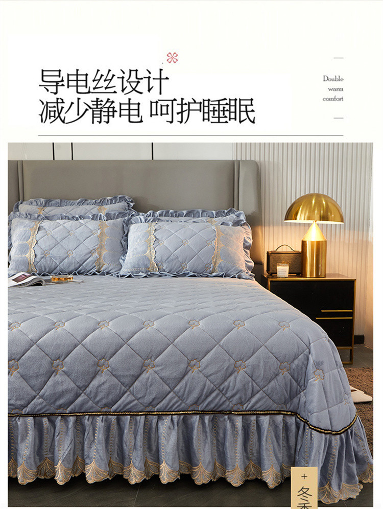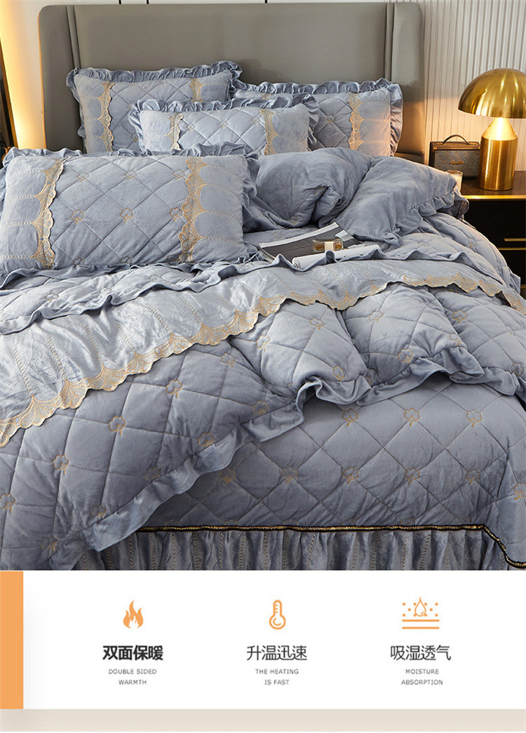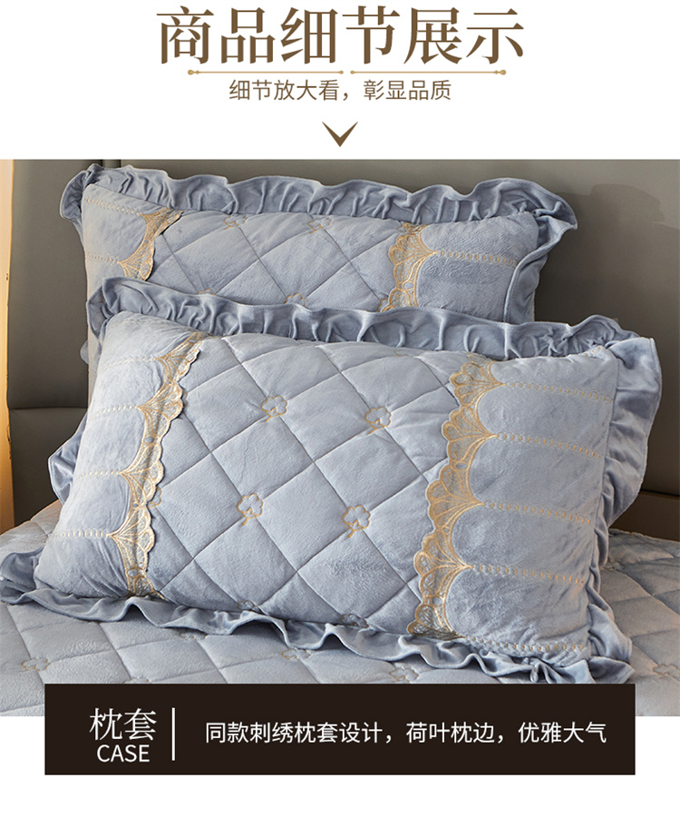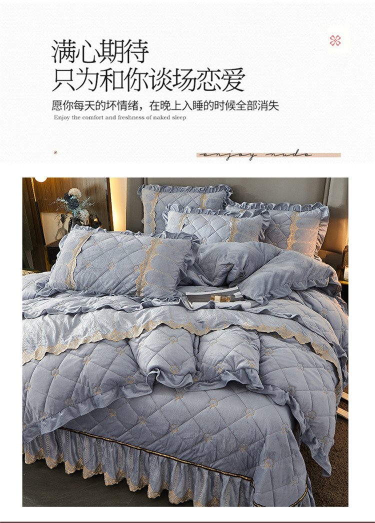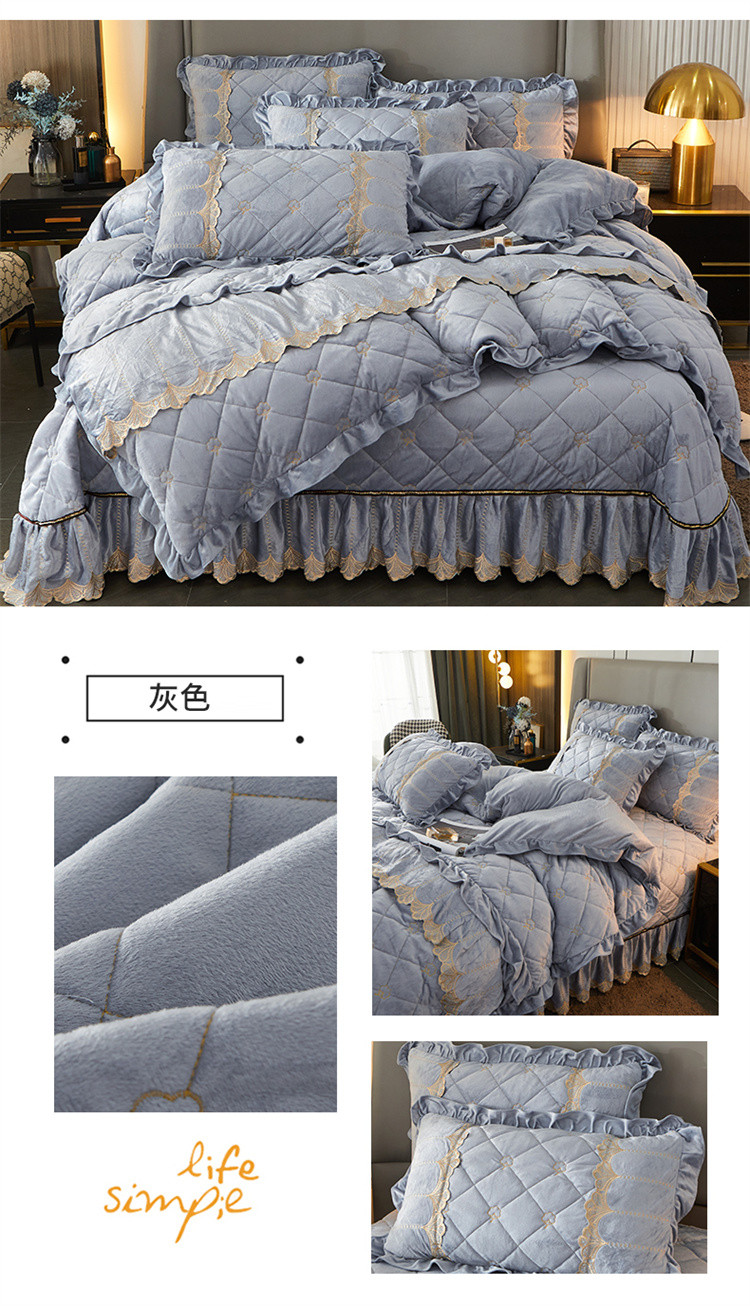 商品名称:十个点家纺 2024新款刺绣水晶绒床盖四件套 灰色