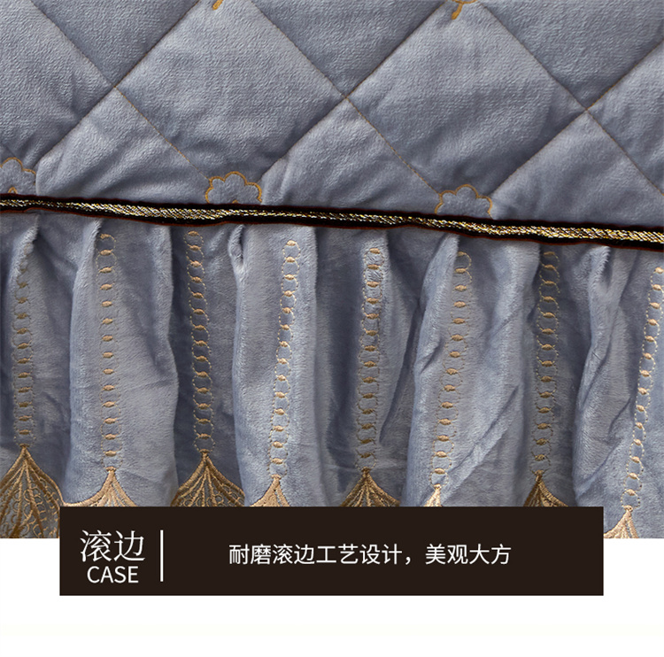 (总)十个点家纺 2025新款千鸟格磨毛绗缝夹棉纯色花边床裙三件套,经典白色,经典兰色,经典浅灰,经典浅驼,经典深灰,经典玉粉