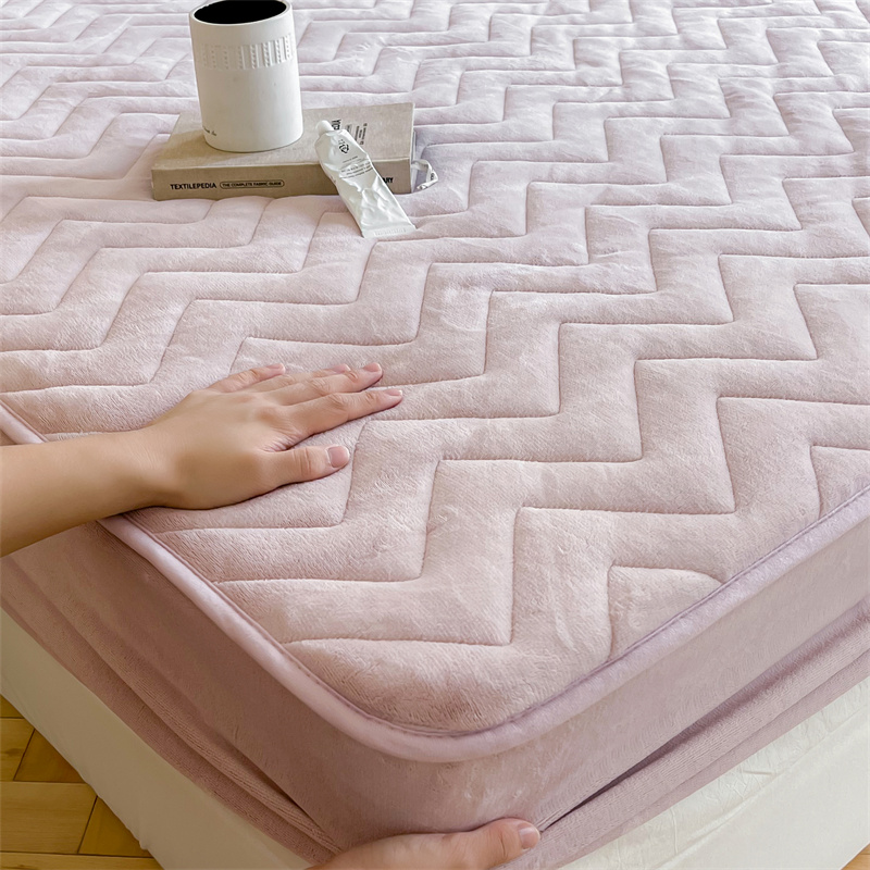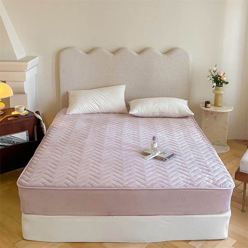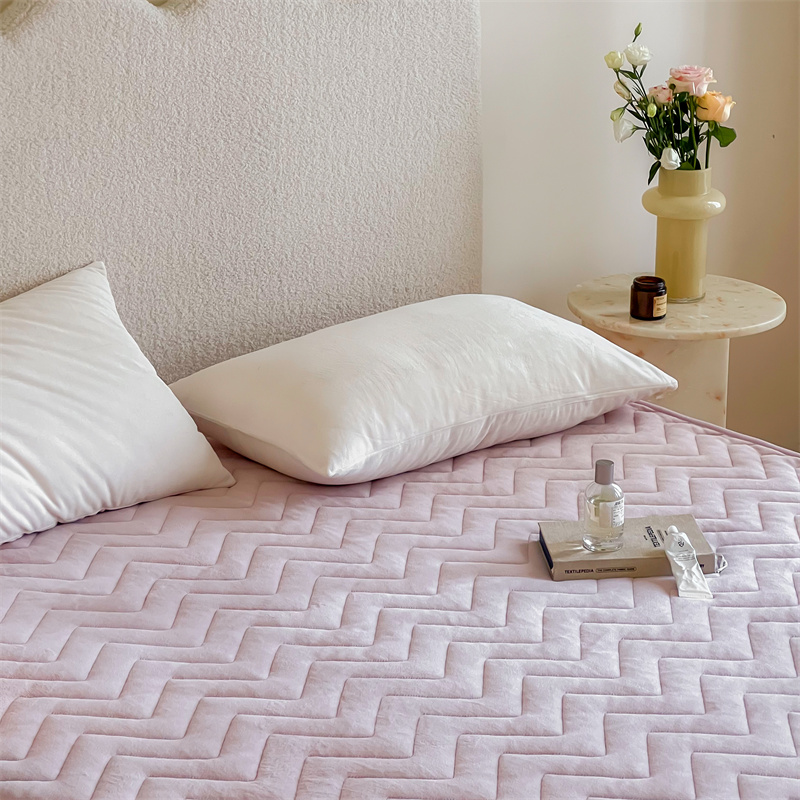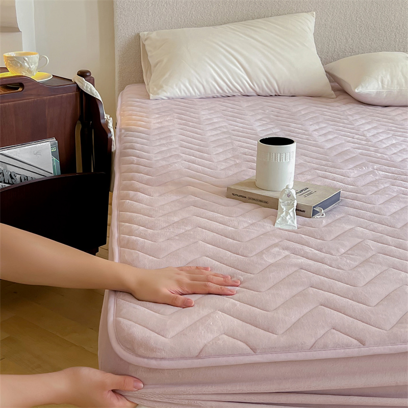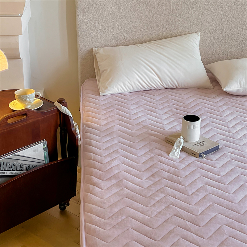 商品名称:三味舒屋 2024新款230g牛奶绒夹棉床笠 波浪杏仁粉