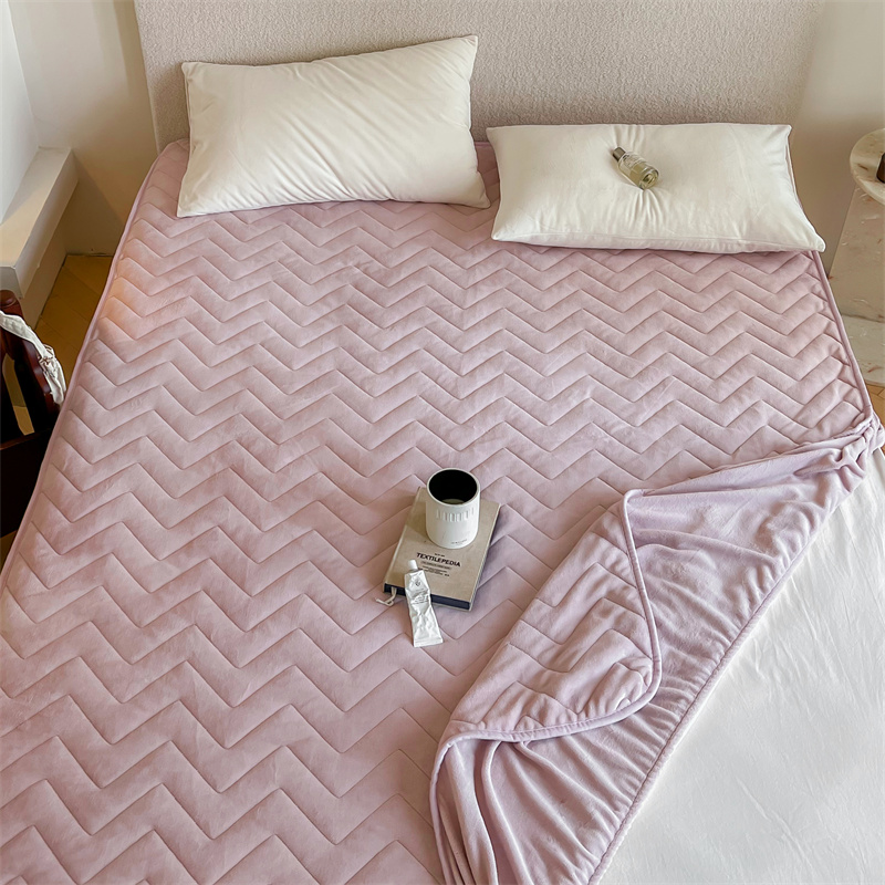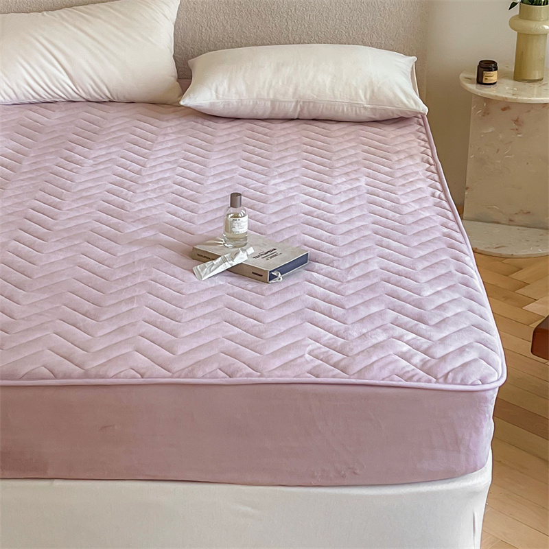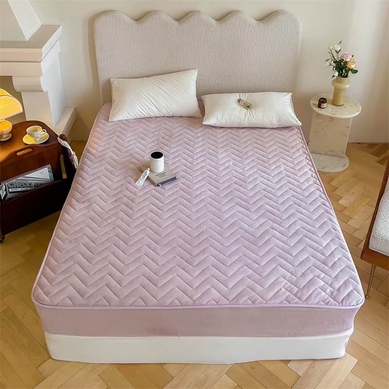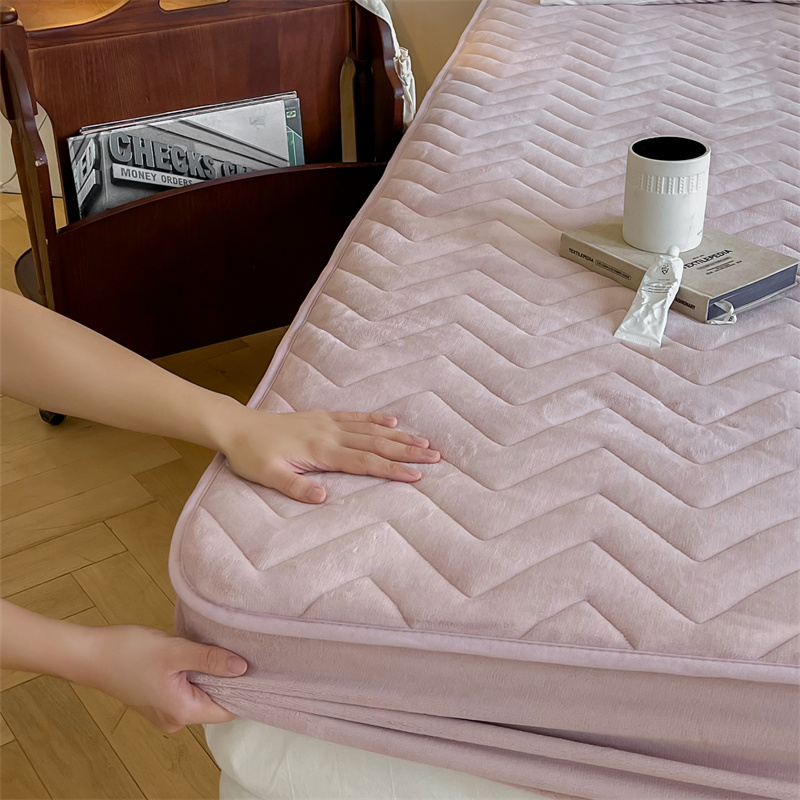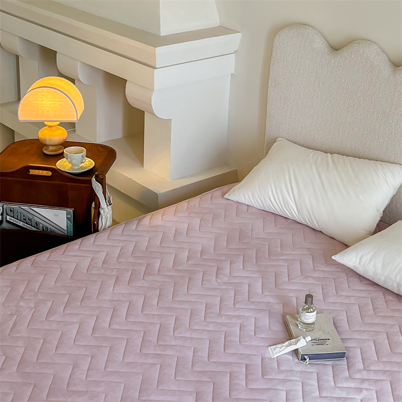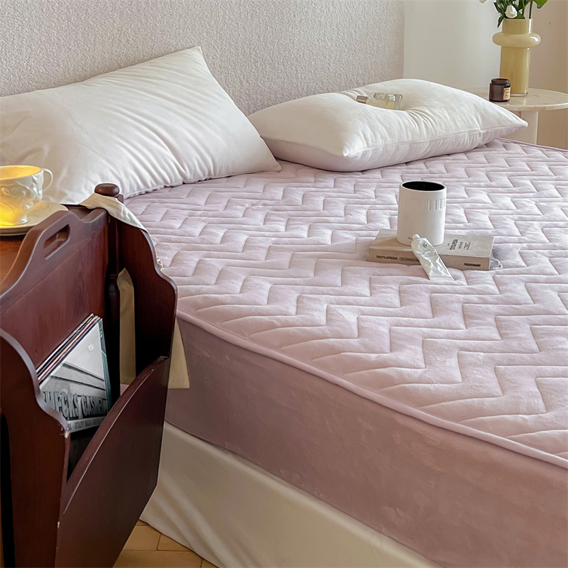 商品名称:三味舒屋 2024新款230g牛奶绒夹棉床笠 波浪杏仁粉