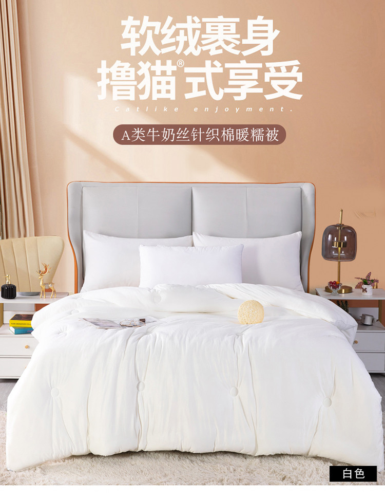 (总)天瑜家纺 2025新款纯色牛奶丝针织冬被被子被芯,米黄色,白色,浅灰色,浅绿色