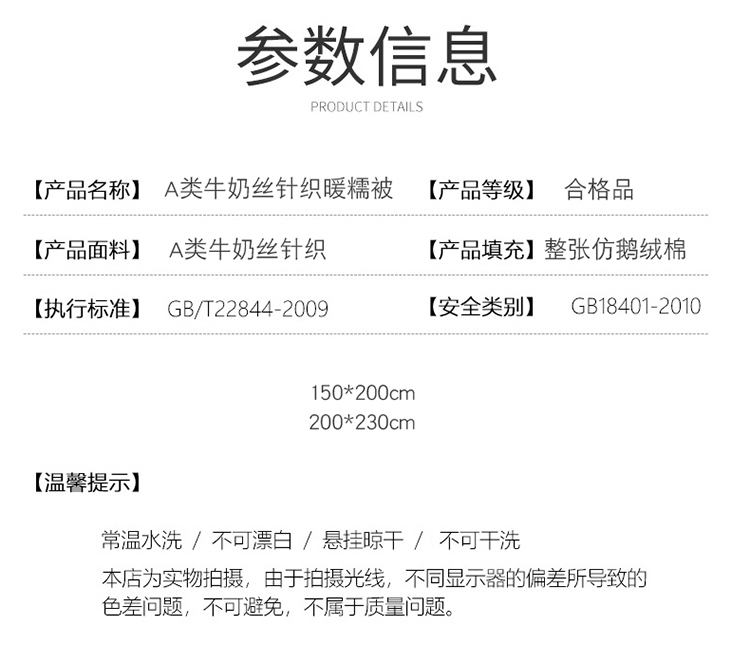 商品名称:天瑜家纺新款A类牛奶丝针织棉暖糯冬被春秋被被芯被子 宾利蓝