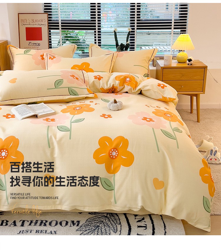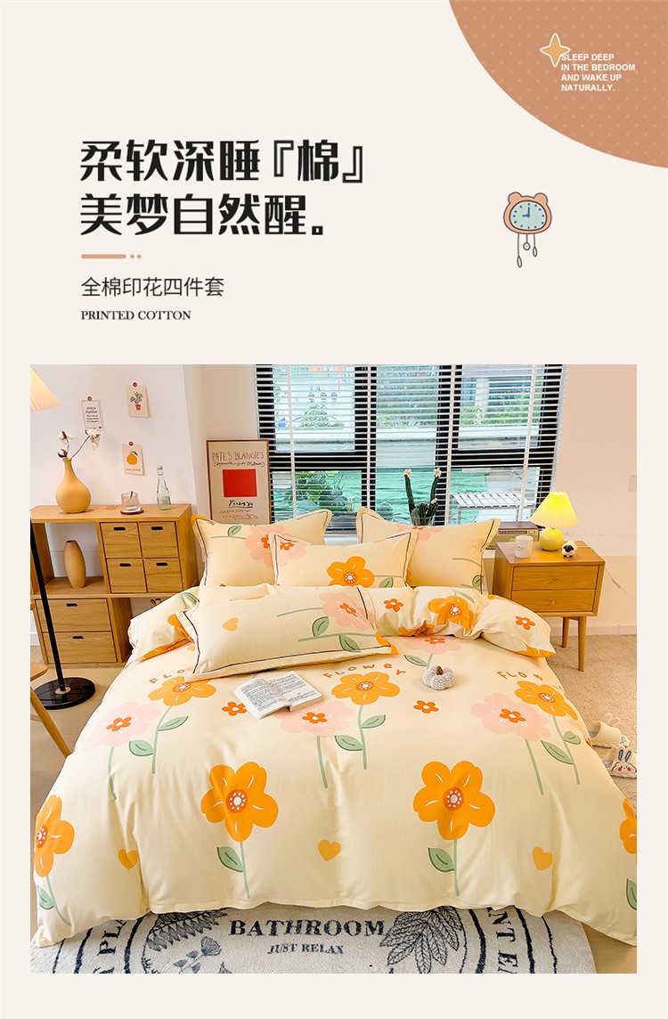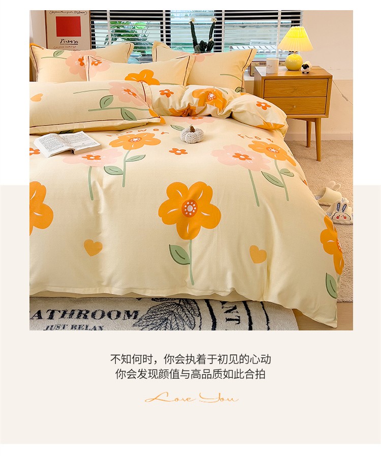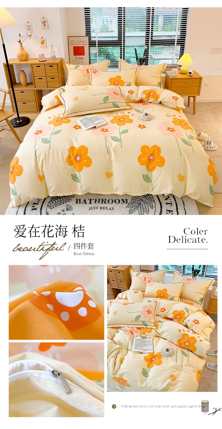 芃成 2022新款全棉磨毛四件套 爱在花海 桔