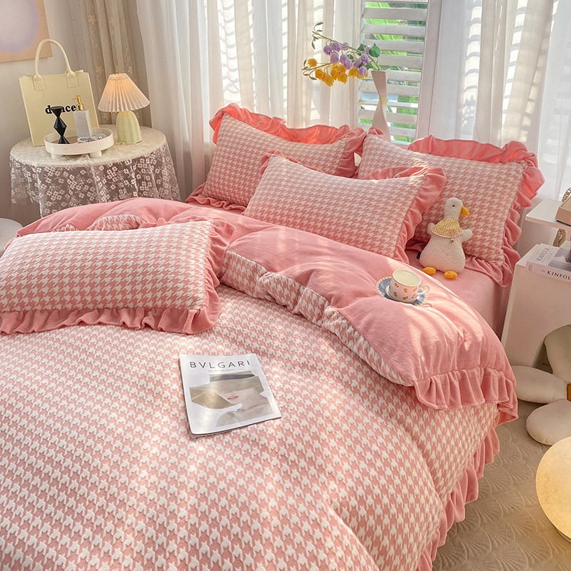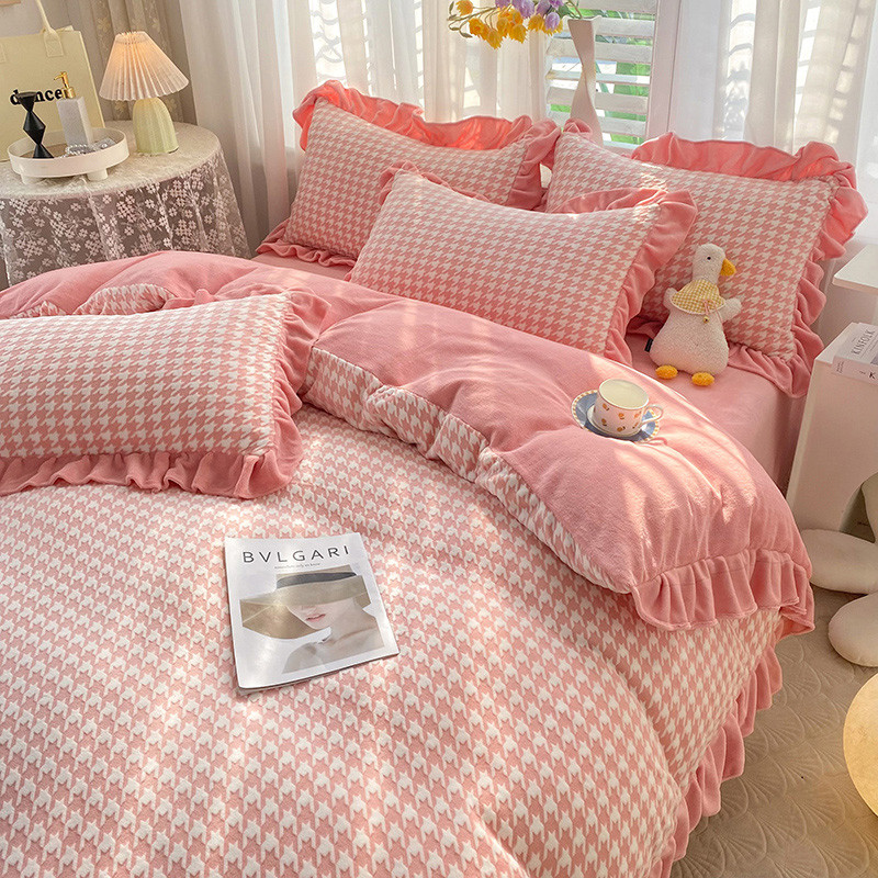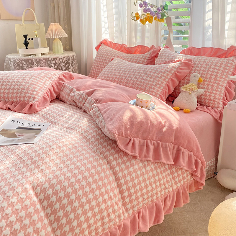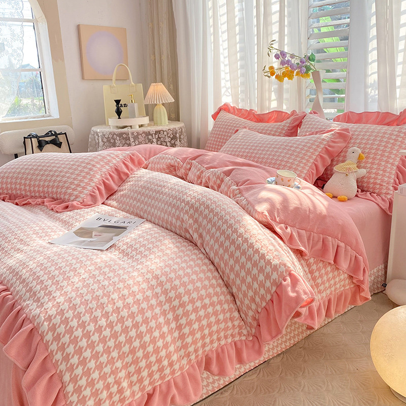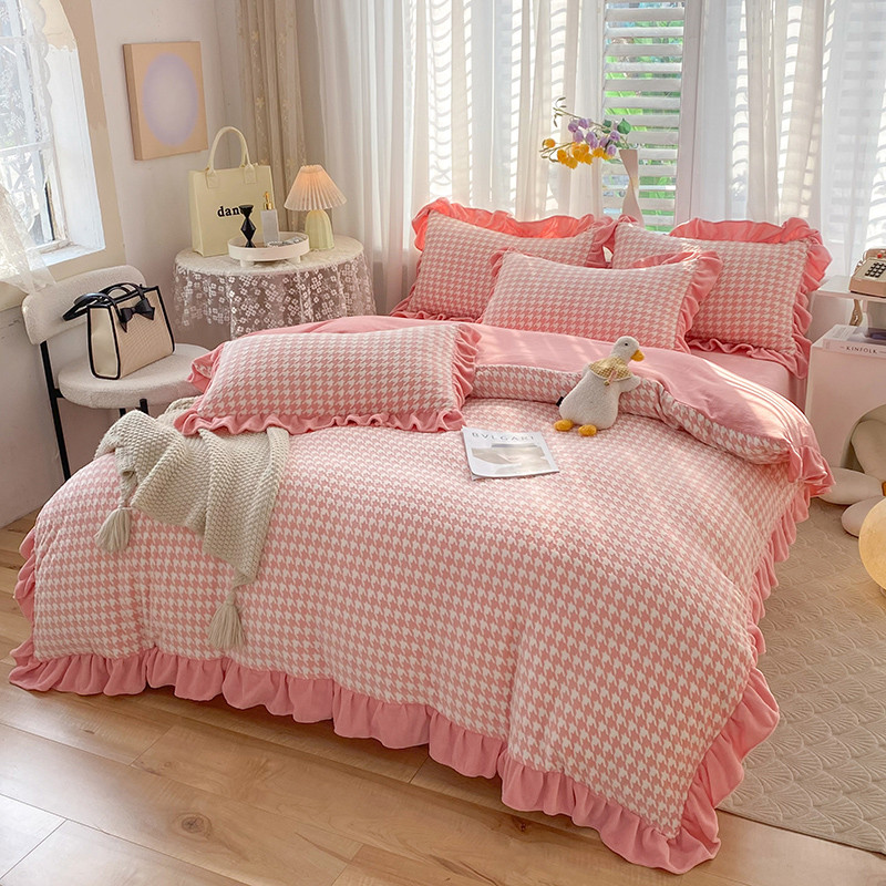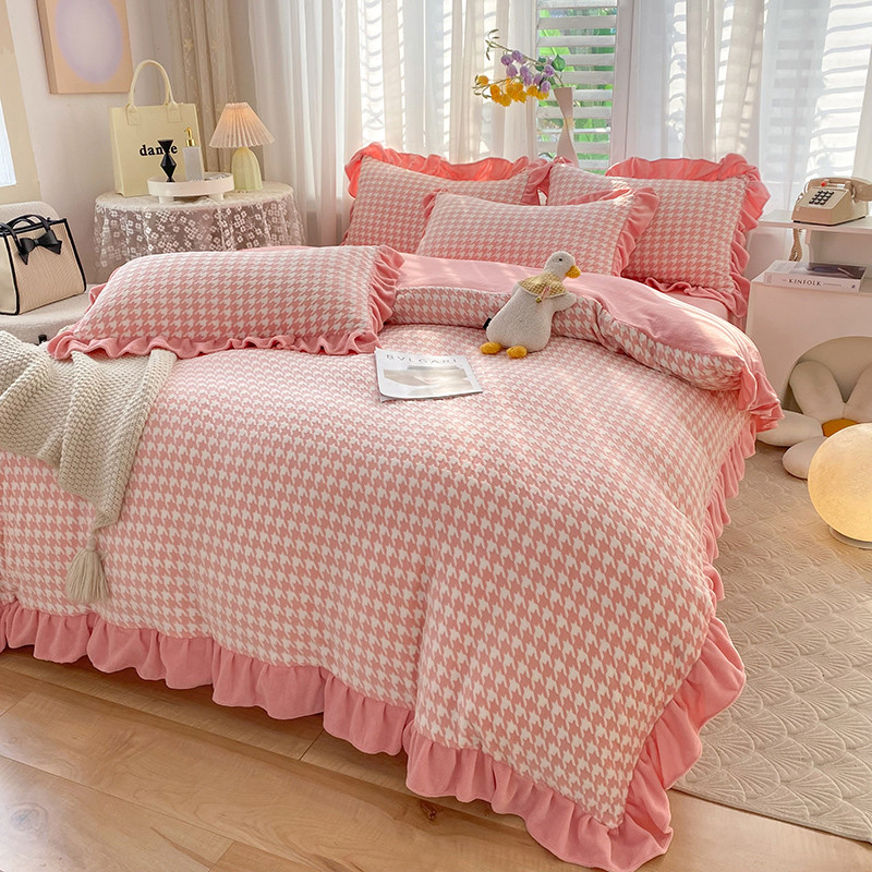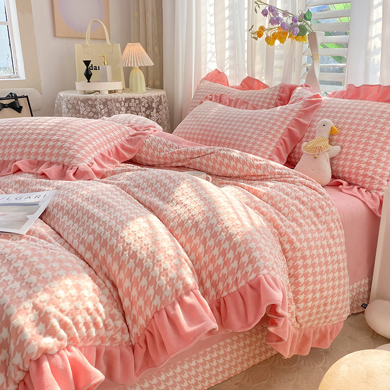 当前位置: 91家纺网 > 商品网购 > 床品套件 > 四件套 > 牛奶绒四件套 > 小主驾到 2023秋冬新款千鸟格牛奶绒花边四件套 千鸟格-粉花边款