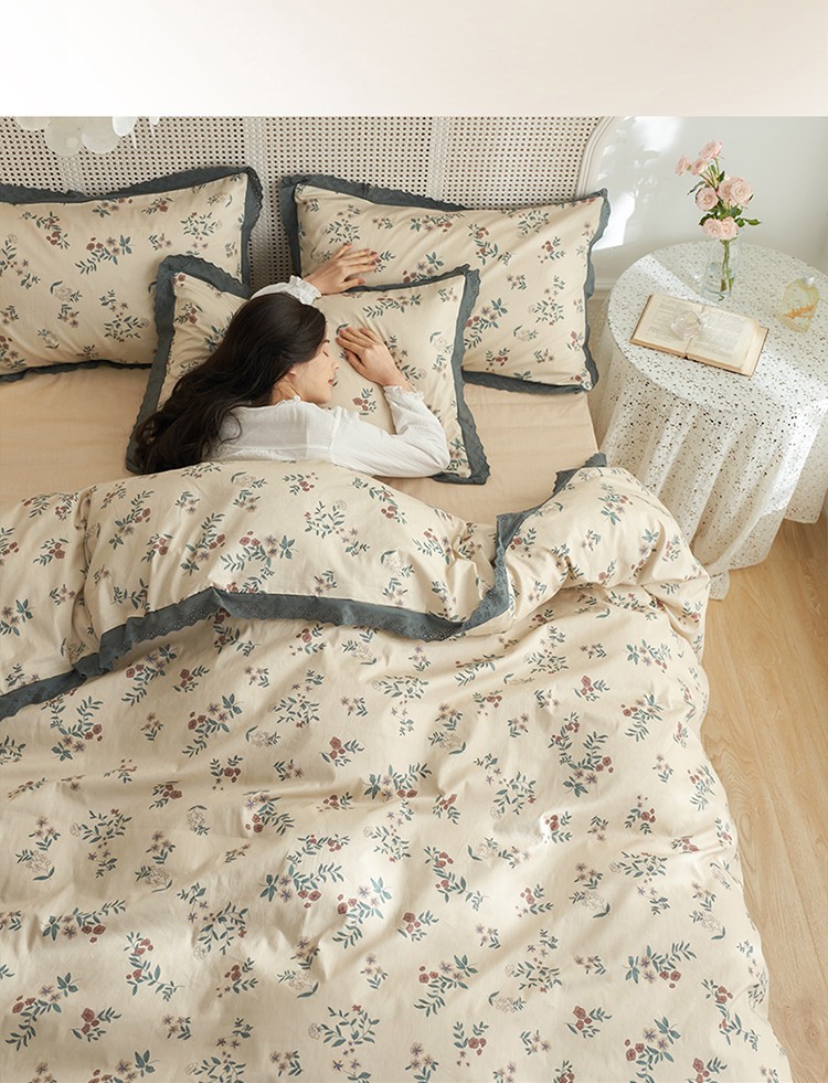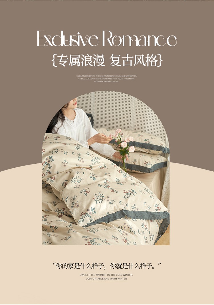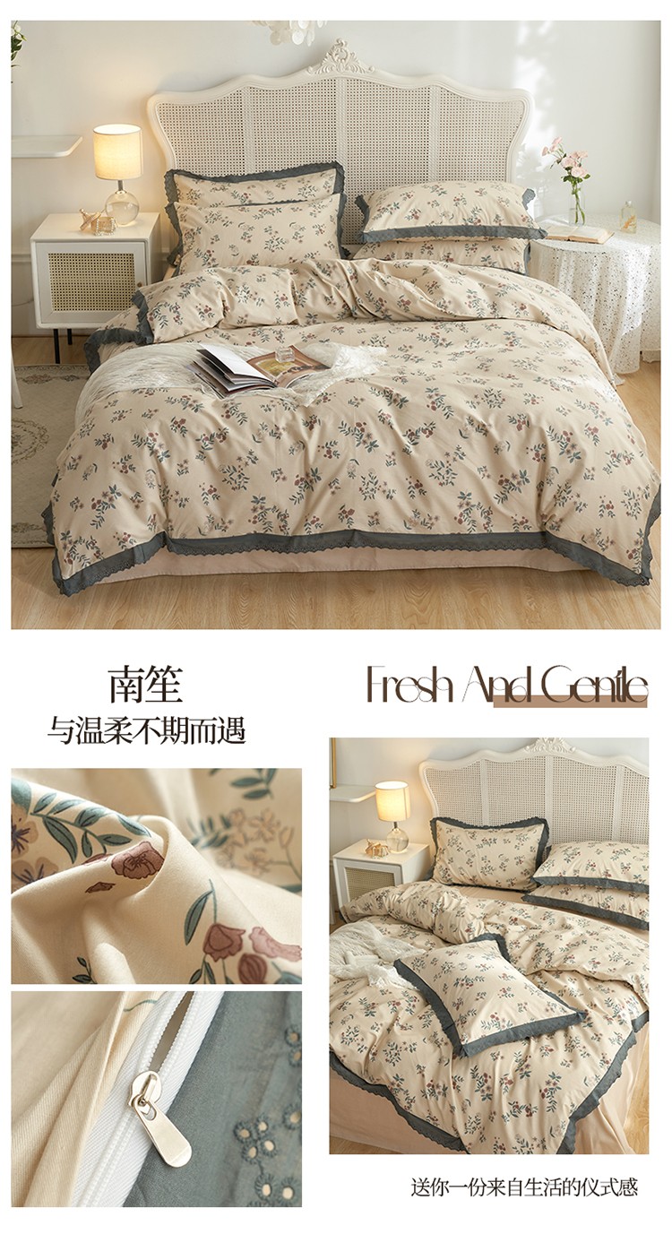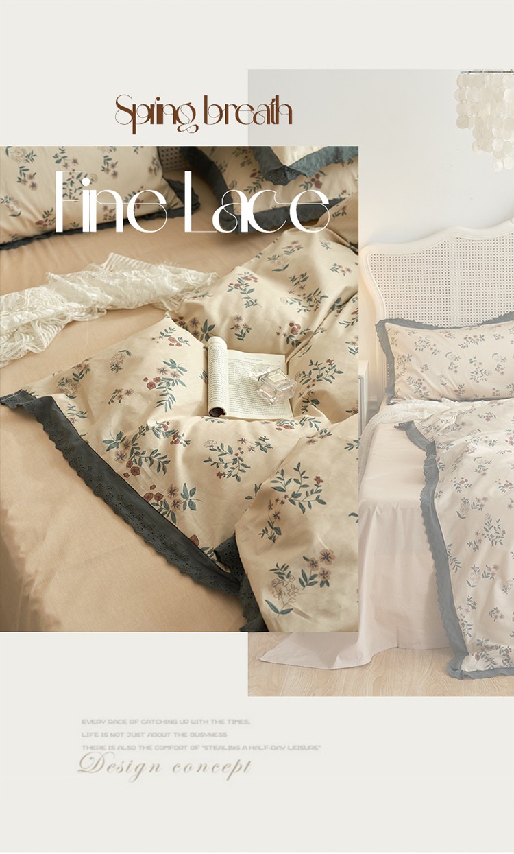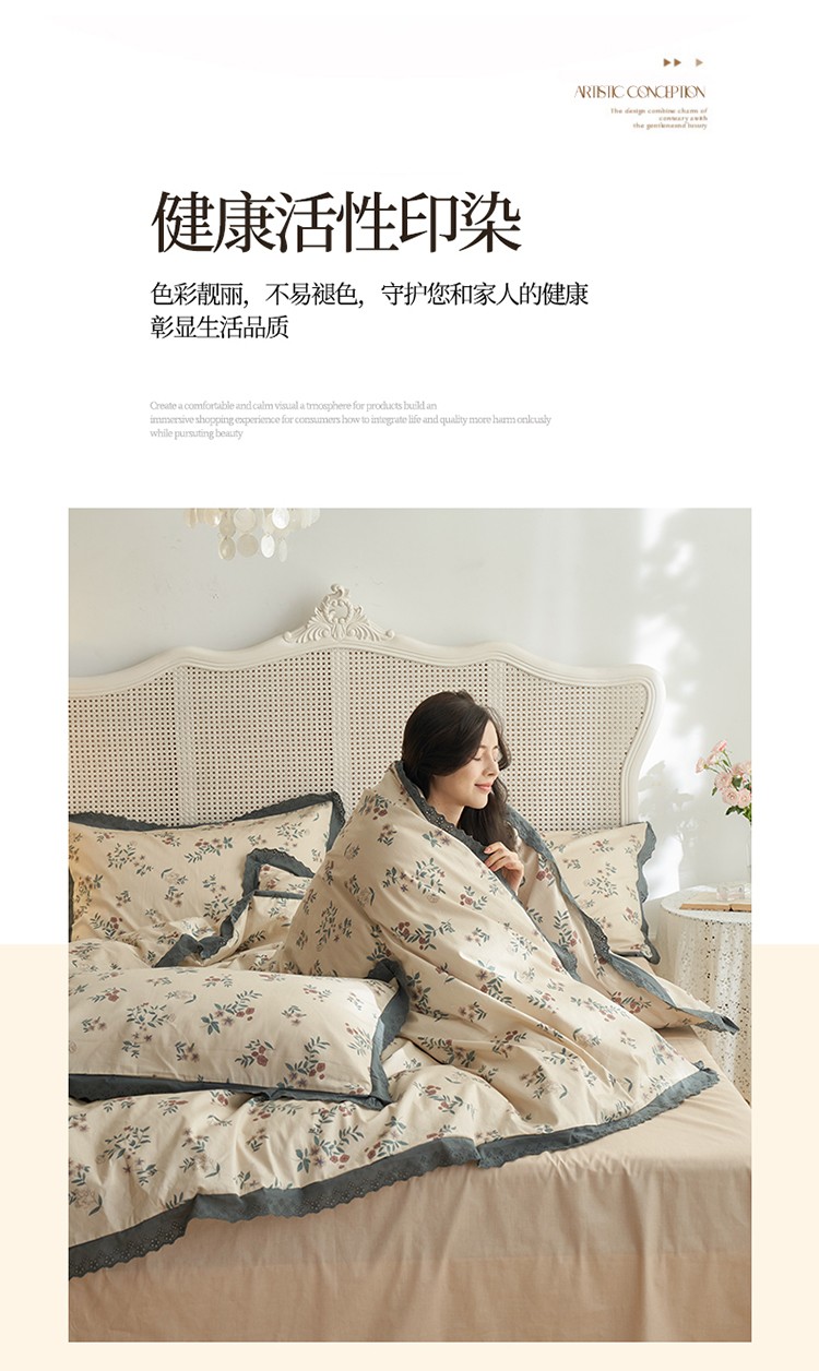 蓝邻 2023新款复古小清晰花边四件套风格一 南笙