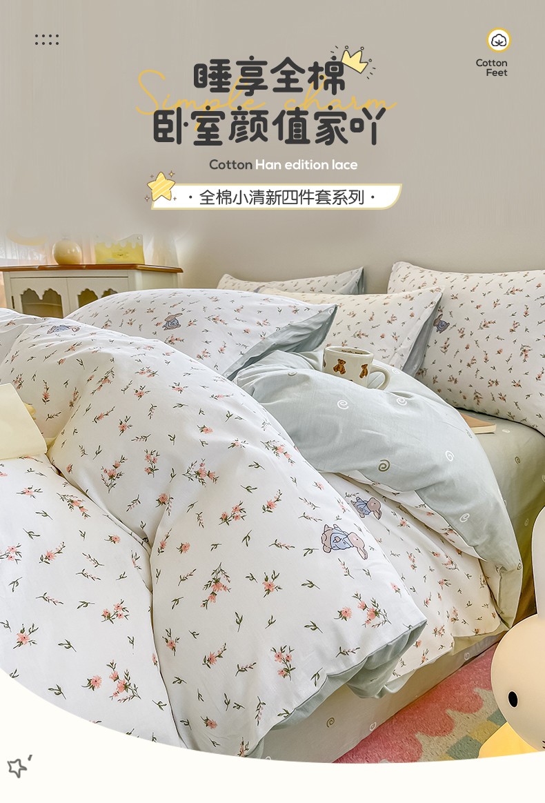 (总)小懒猪 2023新款春夏全棉小清新系列四件套