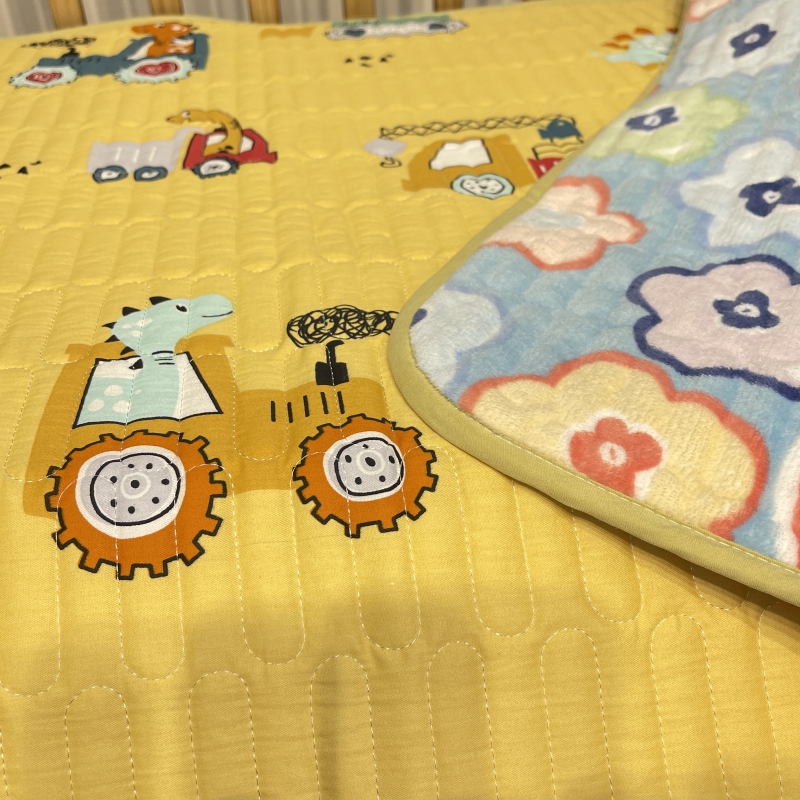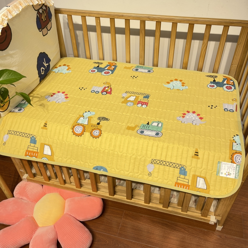 沐纯家居 2023新款40S全棉加密牛奶绒印花防水隔尿垫 工程车黄色