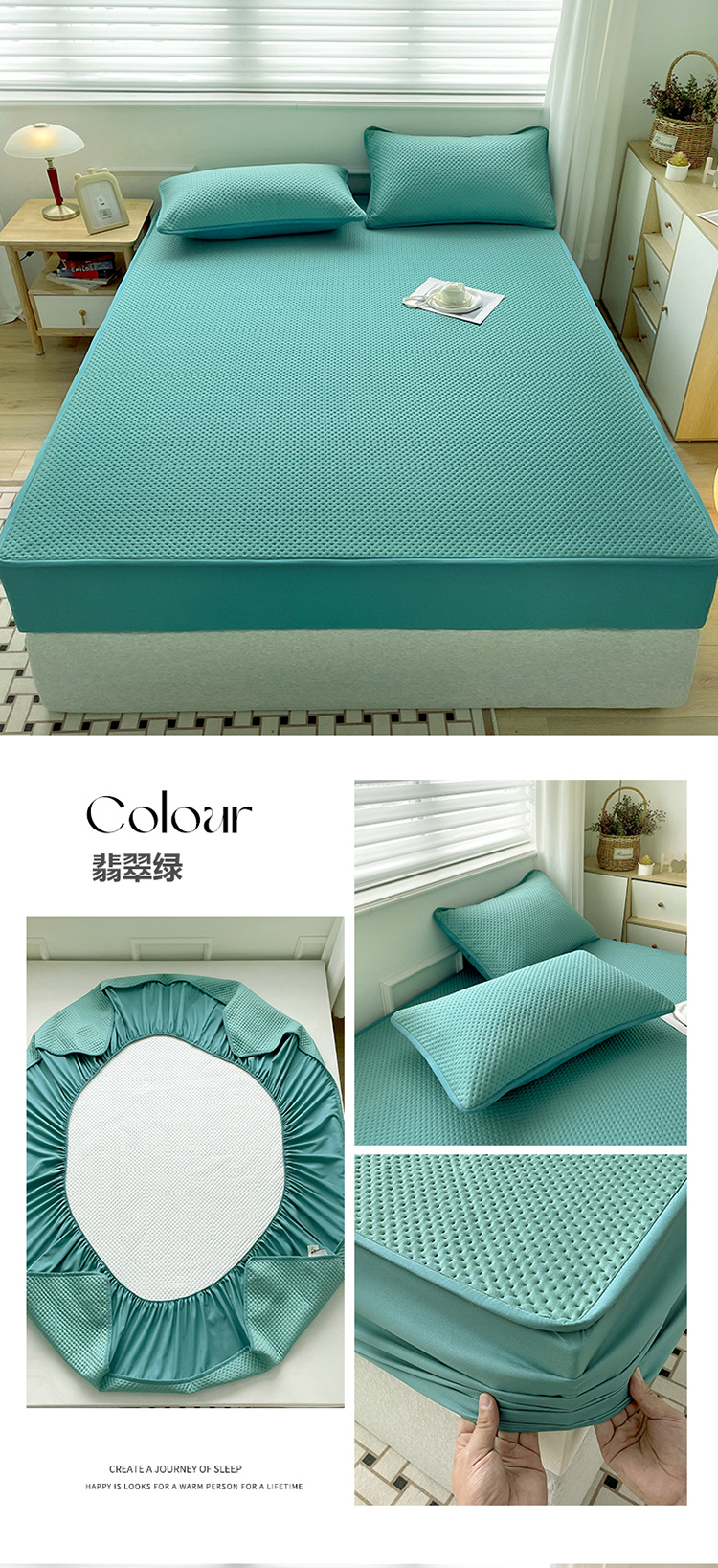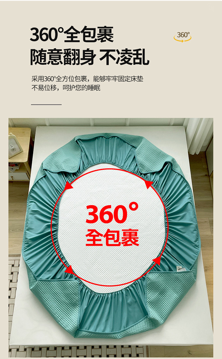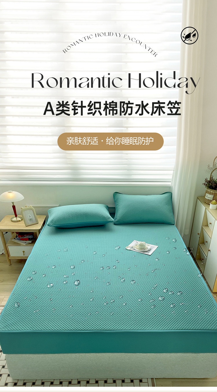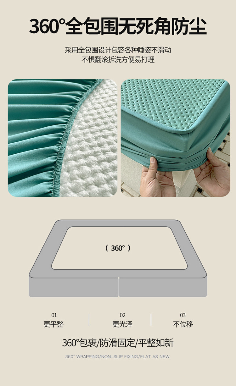 商品名称:忘忧草 2023新款A类针织棉夹棉防水床笠 翡翠绿