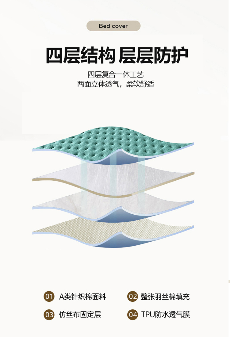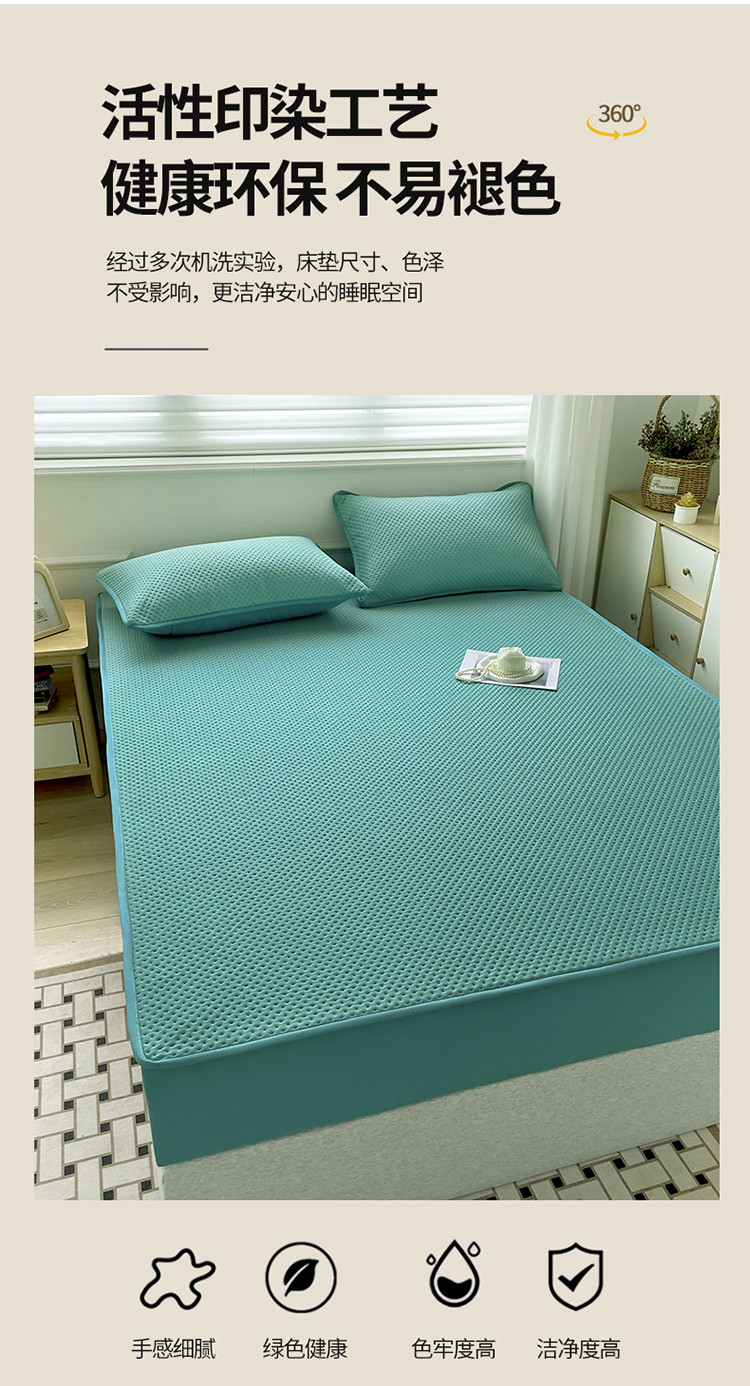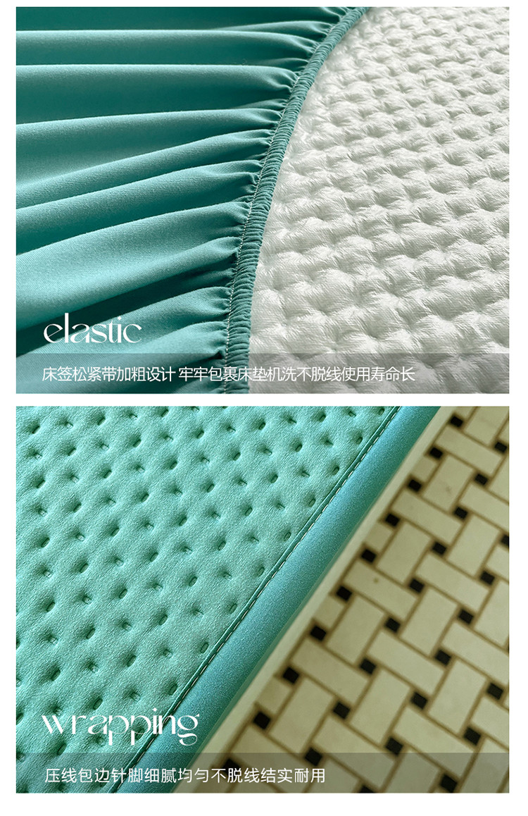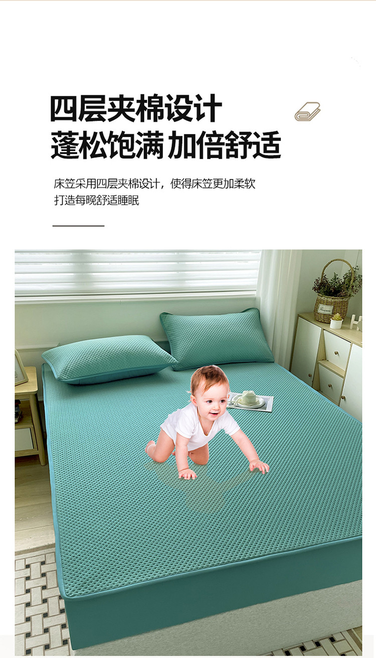 商品名称:忘忧草 2023新款A类针织棉夹棉防水床笠 翡翠绿