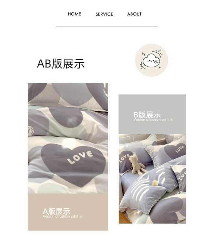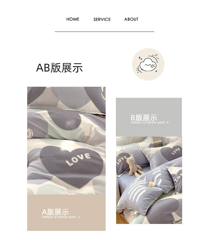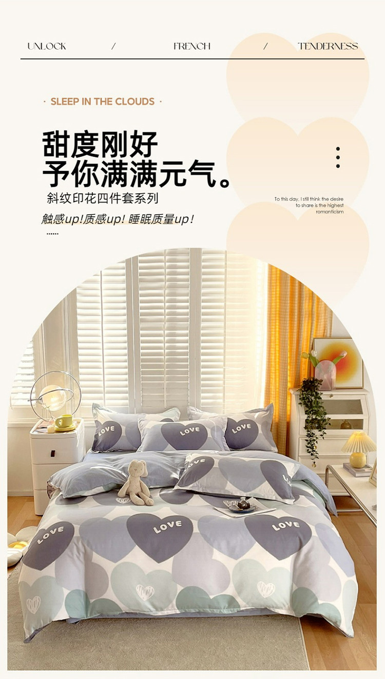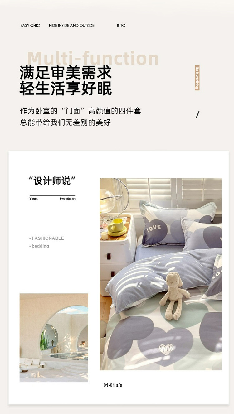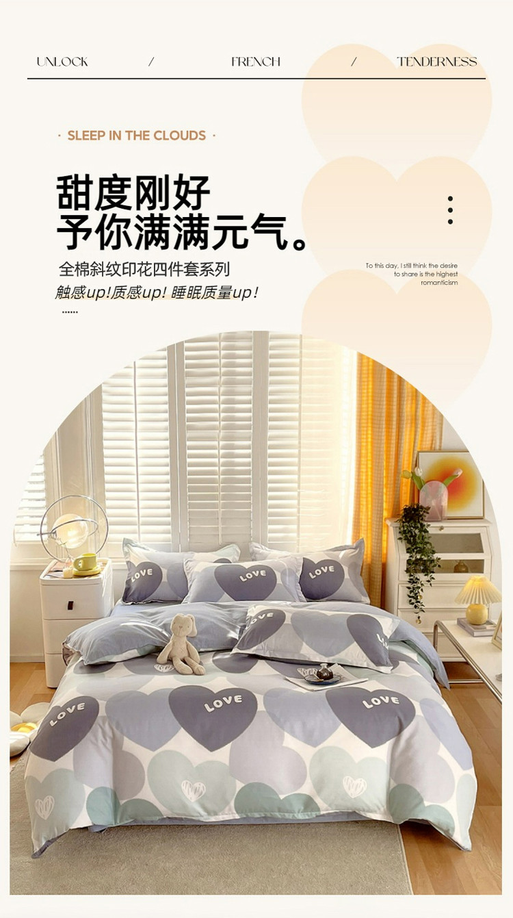 当前位置: 91家纺网 > 商品网购 > 床品套件 > 四件套 > 全棉普通四件套 > 仟人梦 2024新款直播爆款植物羊绒四件套单被套 AB心晴