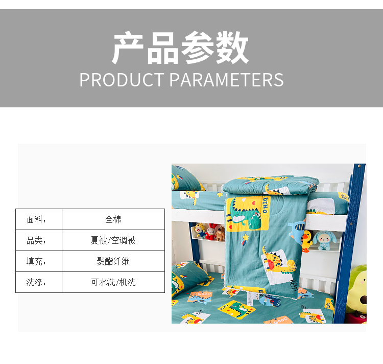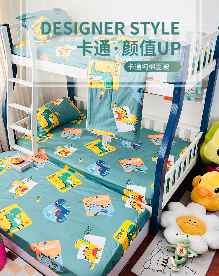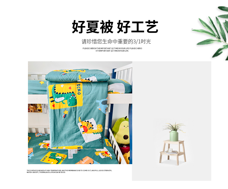 商品名称:小虾米 2023新款卡通系列全棉夏被 恐龙家族绿
