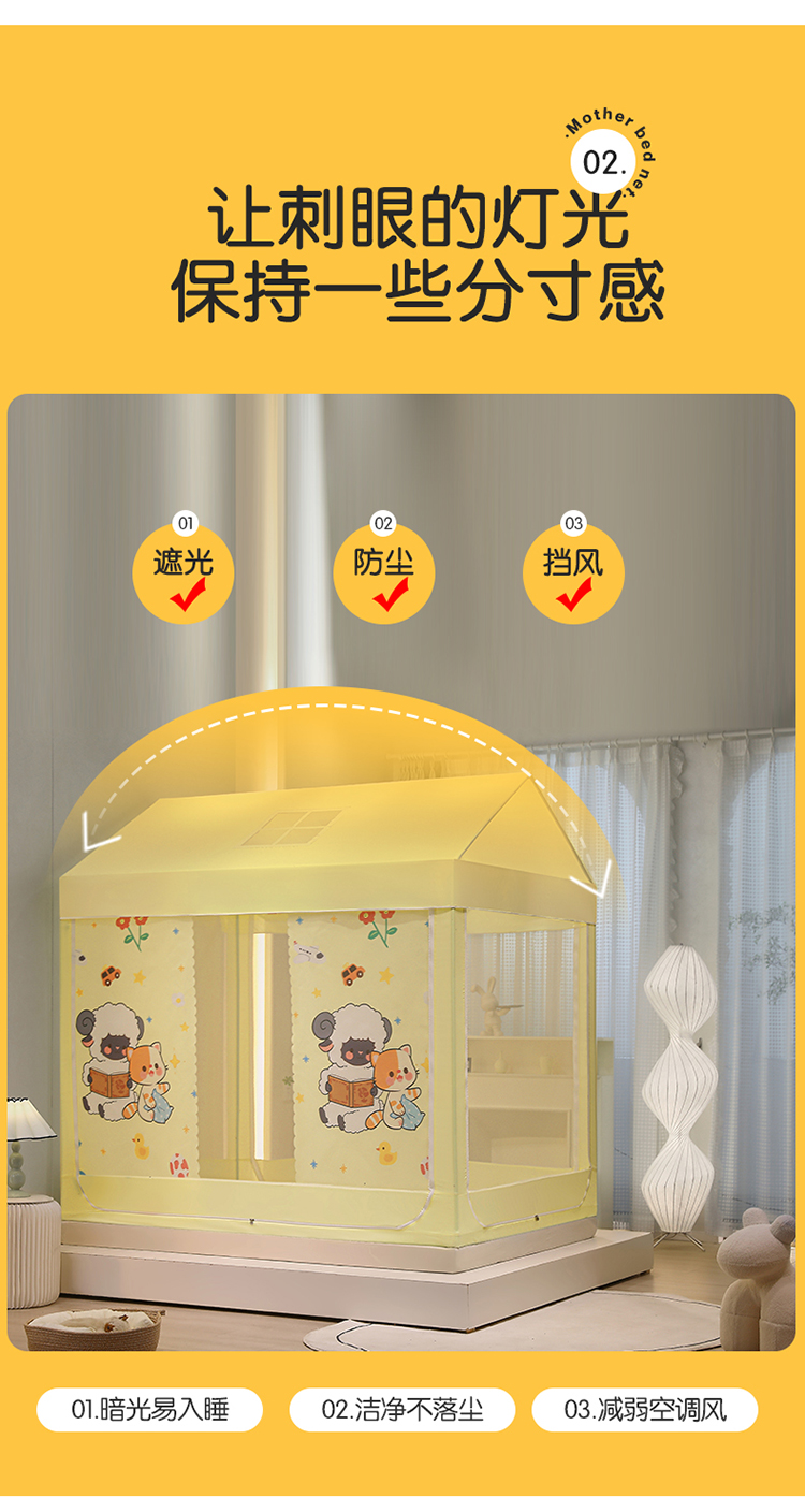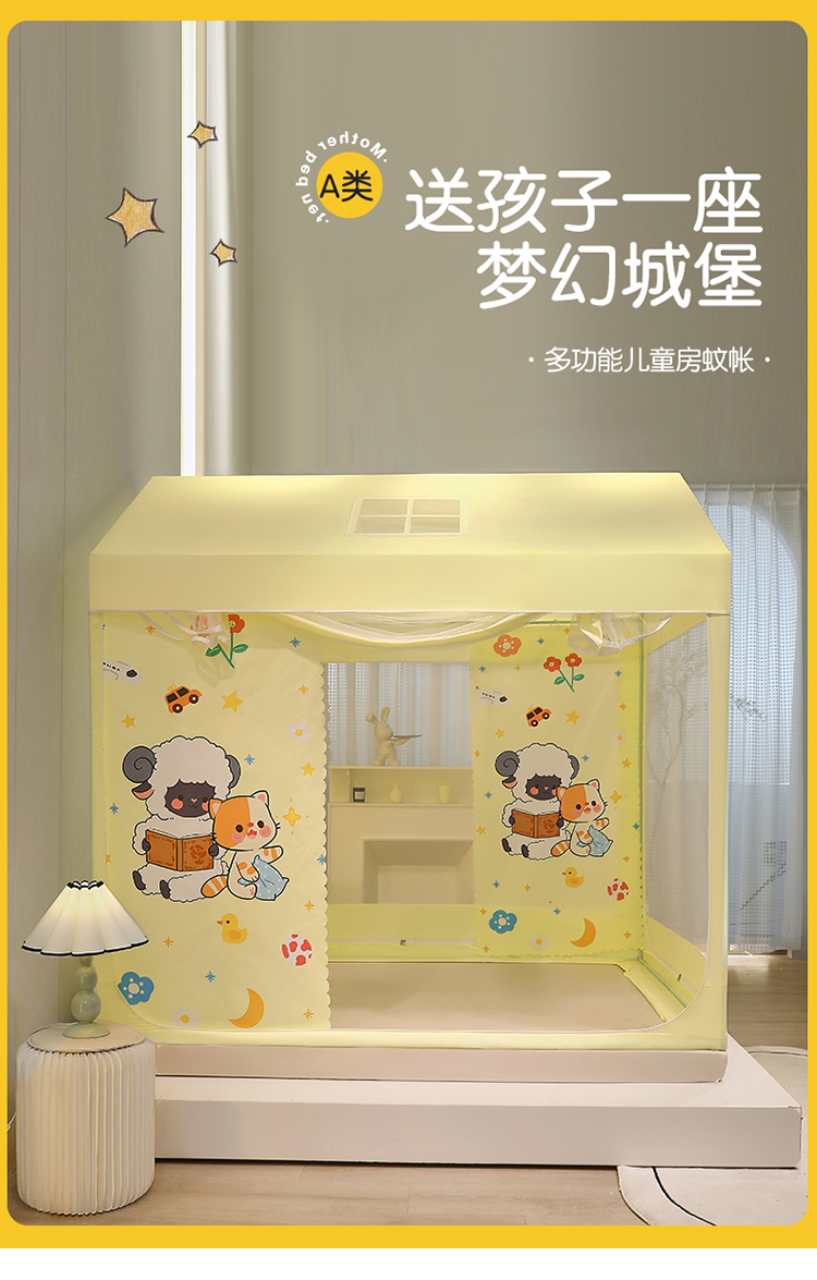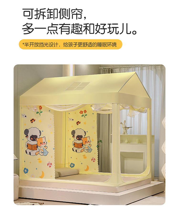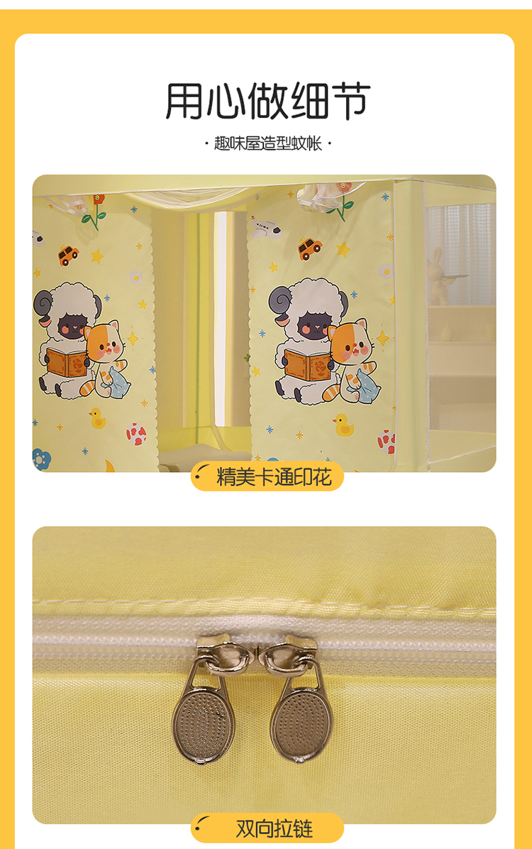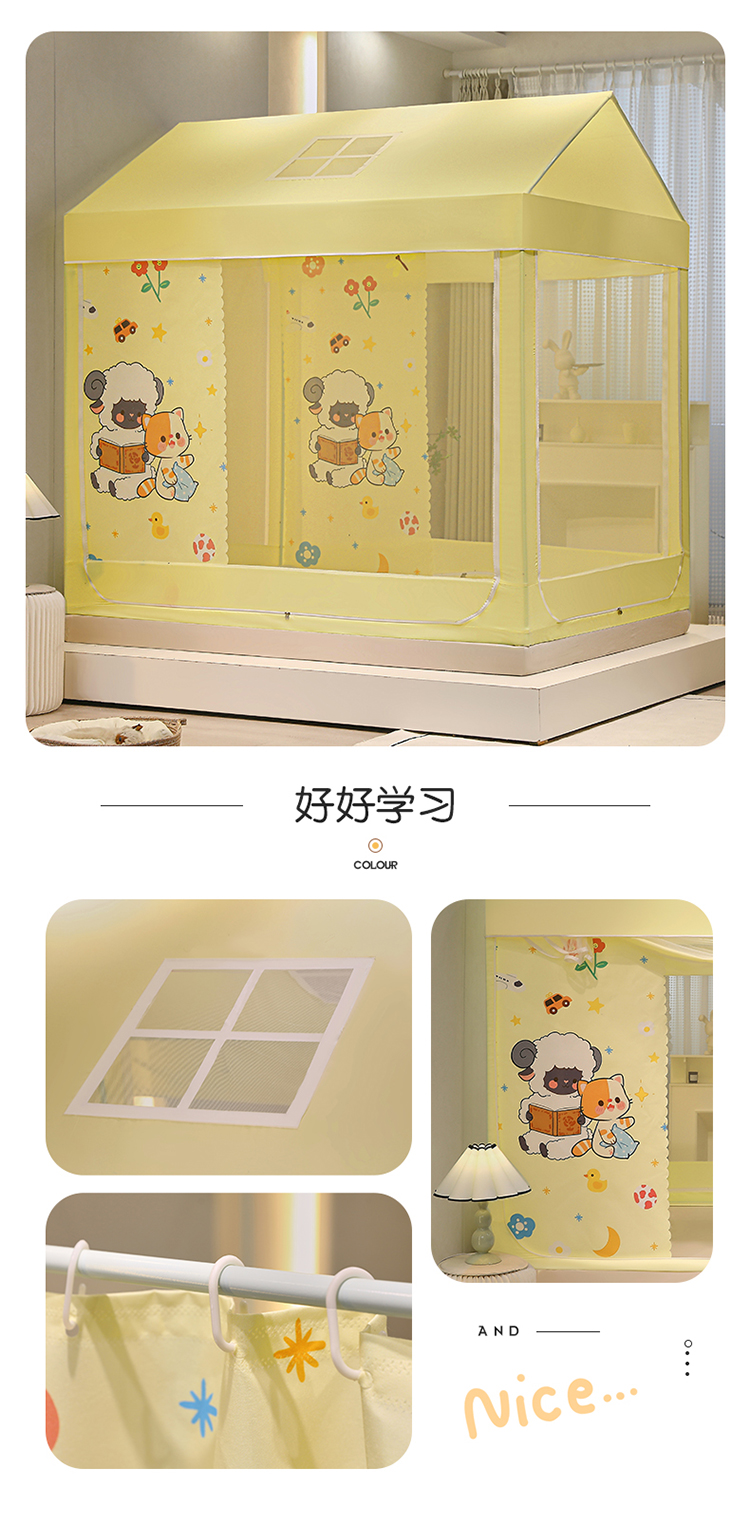 (总)安金蚊帐2025新款防蚊遮光一体99%强遮光学生宿舍上下铺遮光学生蚊帐-黄色系列,好学布布,团布布,星泡泡,贪吃猫,野餐猫,好拍档,好学卡卡,小花熊,尼尼熊,小猫莉