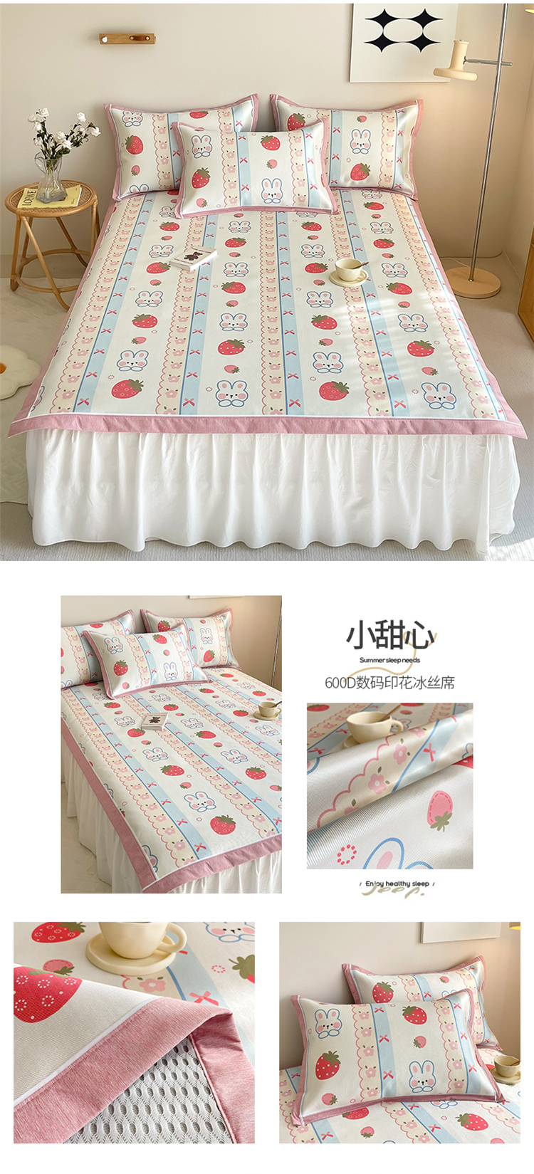 商品名称:懒猫 2024新款600D数码印花冰丝席 小甜心