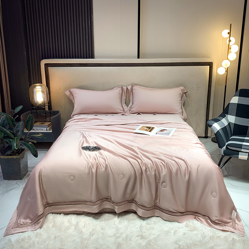 (总)淼铭家纺 2025新款法式天丝棉夏被夏凉被空调被床盖四件套-伊莲娜系列,粉色,金色,绿色,紫色