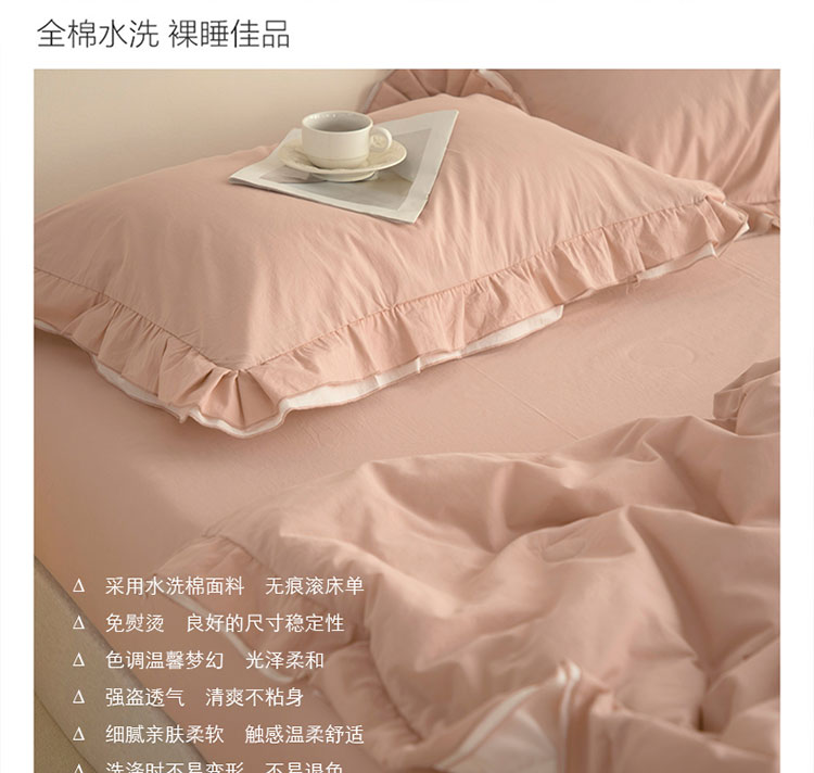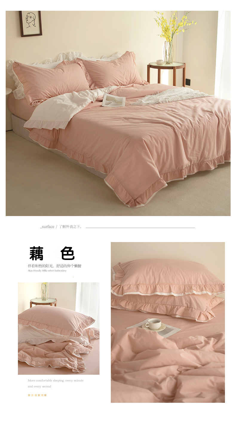 当前位置: 91家纺网 > 商品网购 > 床品套件 > 四件套 > 全棉普通四件套 > 网客 2024韩系仙女风全棉四件套 藕色