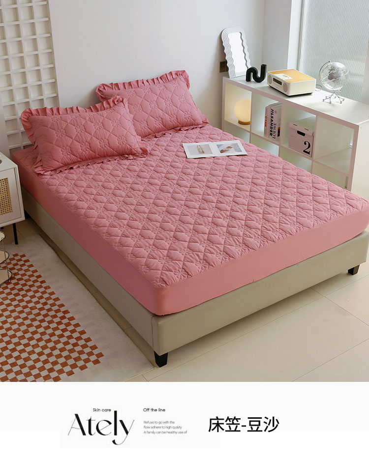 情煊 2023新款全棉夹棉纯色印花床笠款(可定制尺寸) 床笠-豆沙