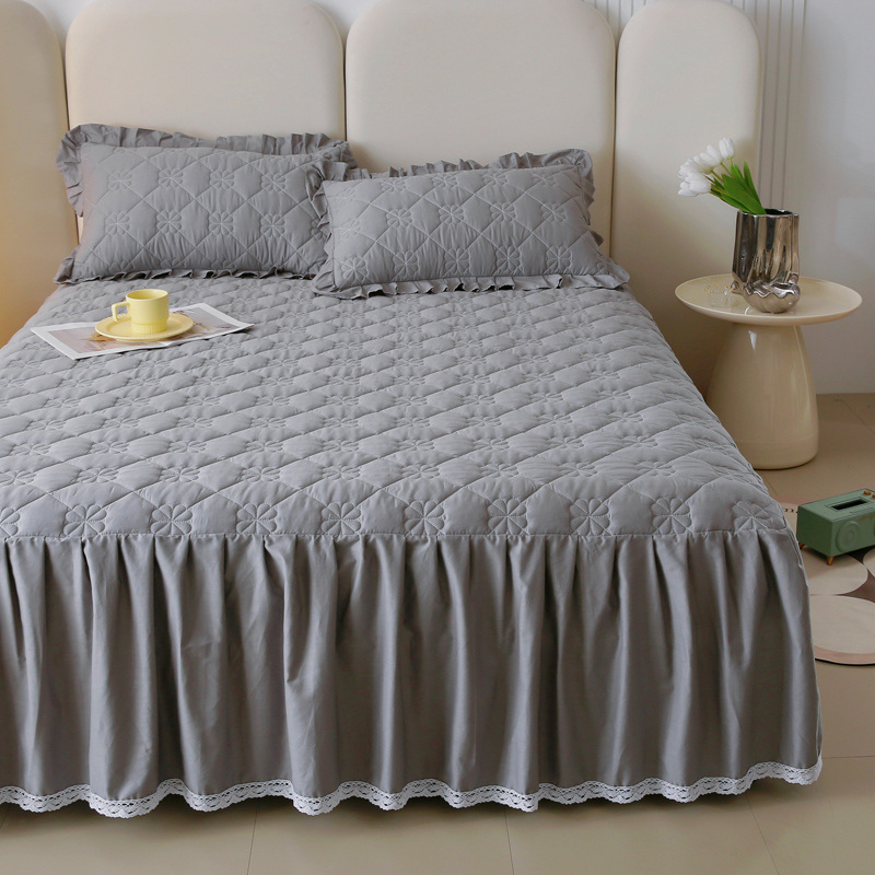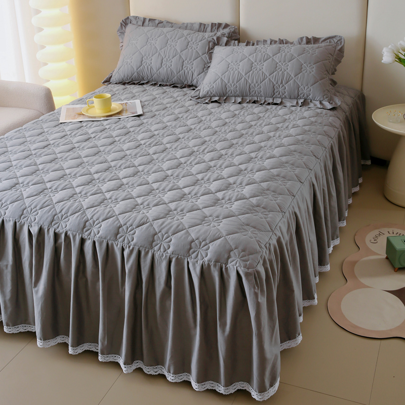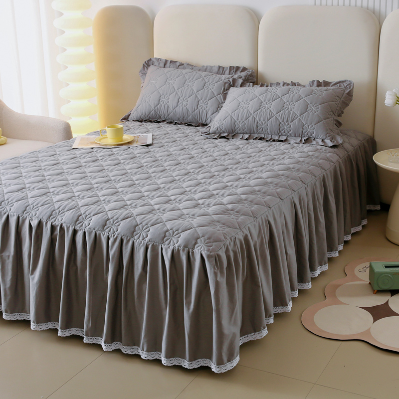 情煊 2023新款全棉夹棉纯色印花床裙款(可定制尺寸) 绅士灰