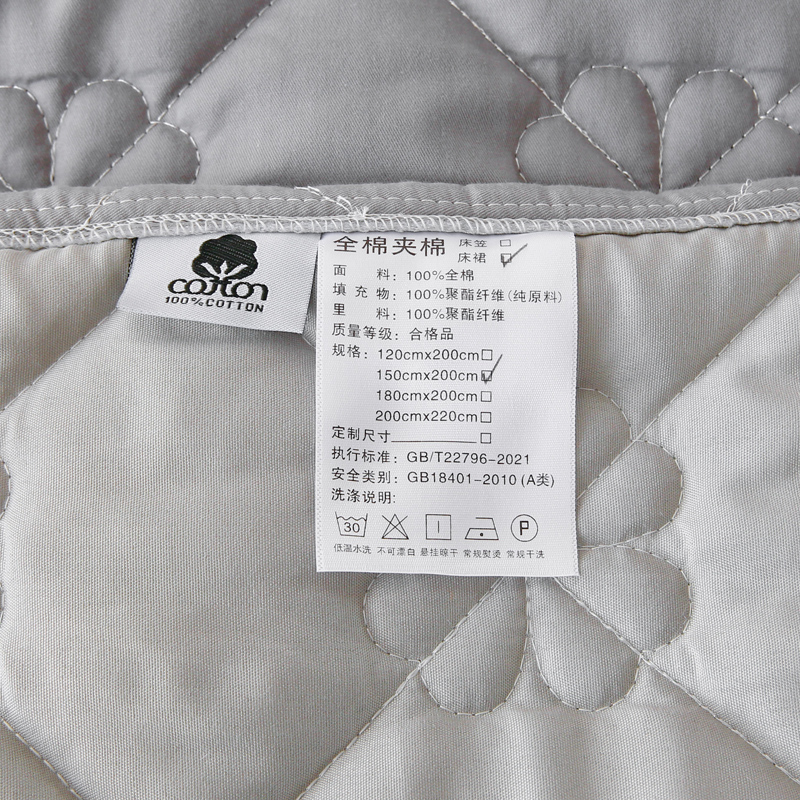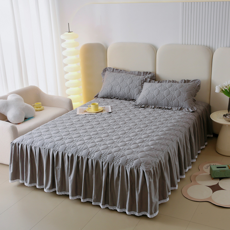 • 91家纺网 家纺一手货源 找家纺 情煊 2023新款全棉夹棉纯色印花床裙款(可定制尺寸) 绅士灰