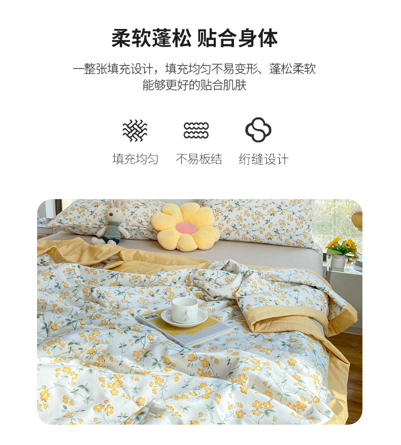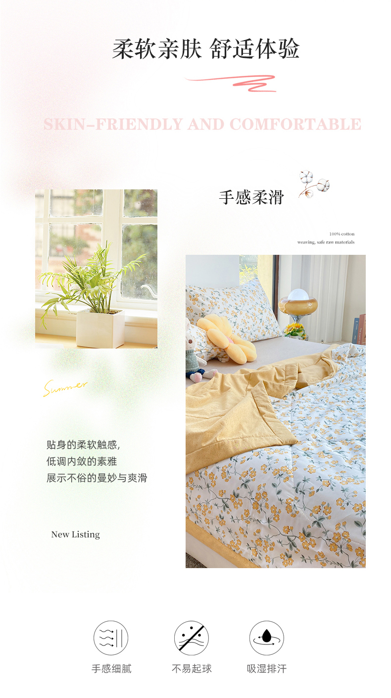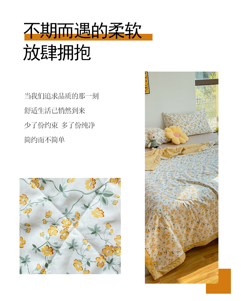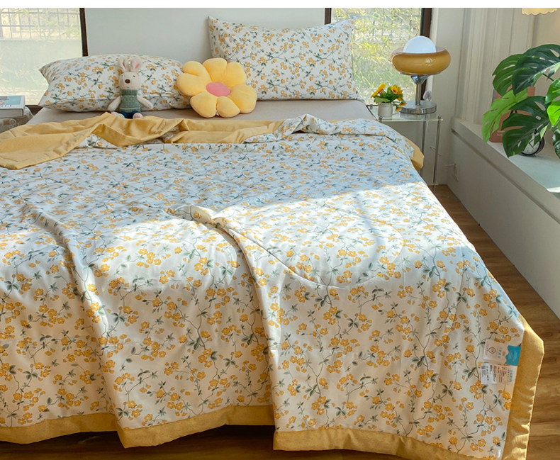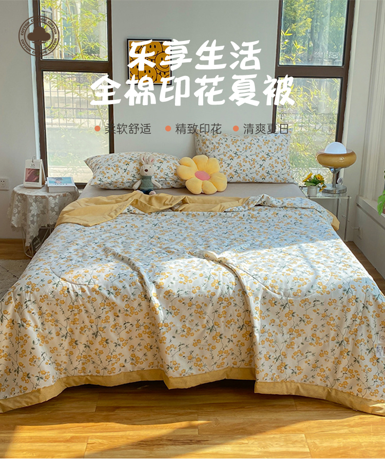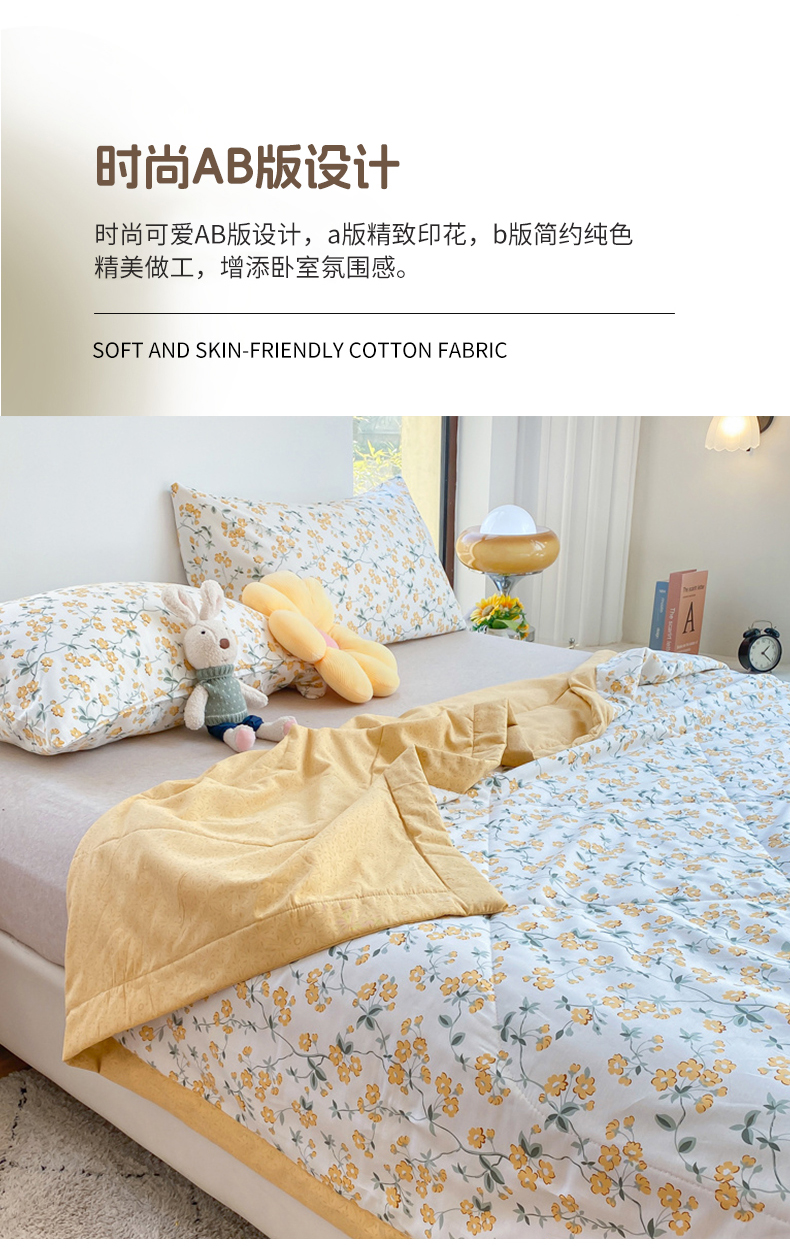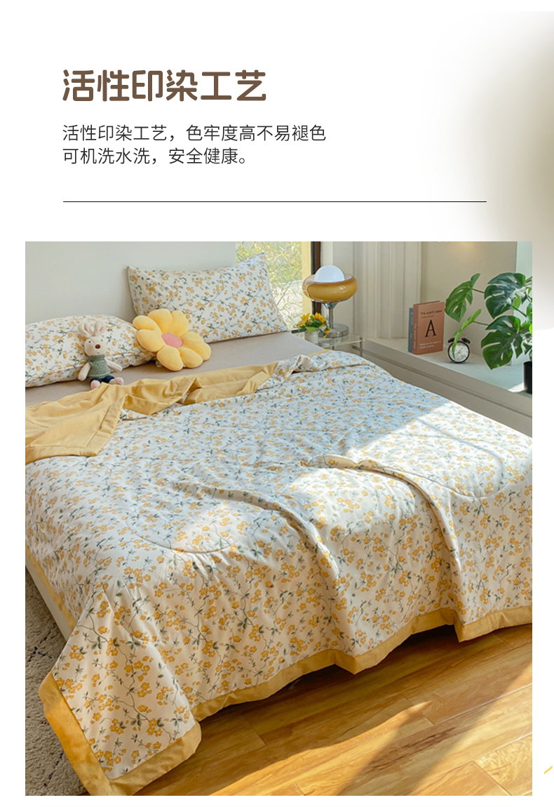 商品名称:瑜珠 2025新款双面全棉印花夏被夏凉被空调被子 春风拂面-黄
