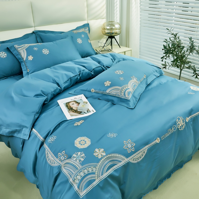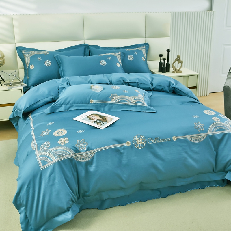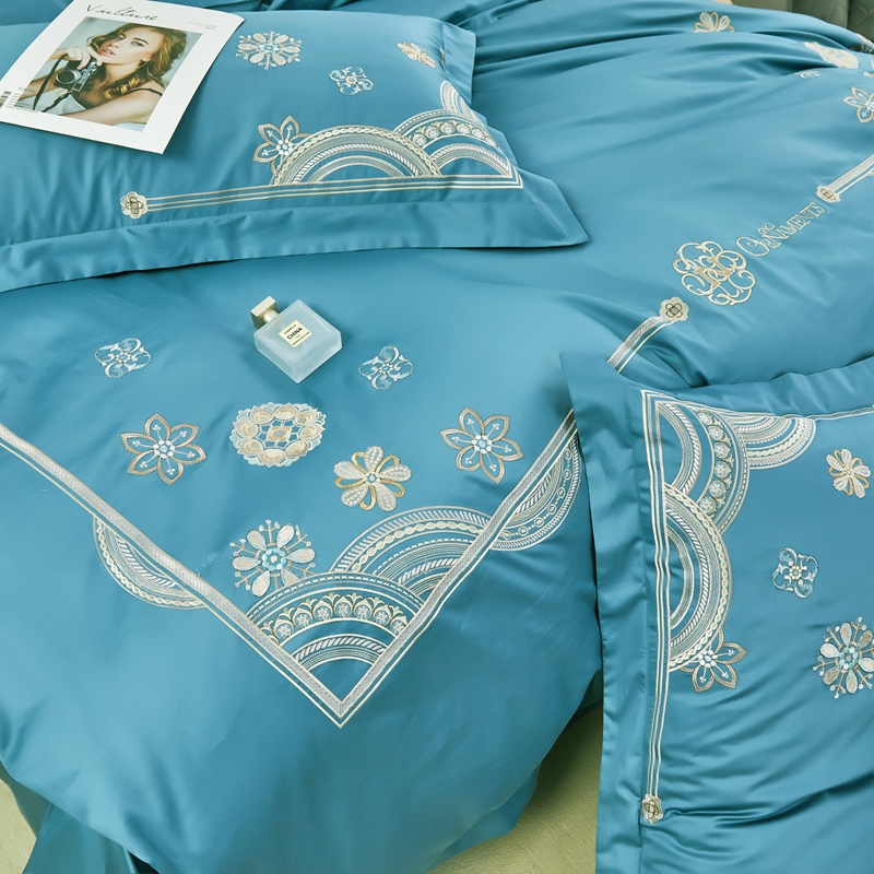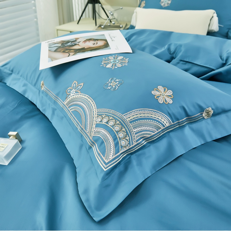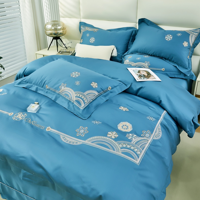 星尚 2023新款100支长绒棉绣花四件套-慕颜 梦之蓝