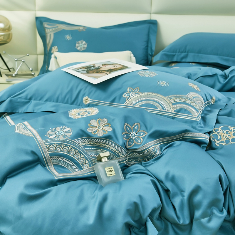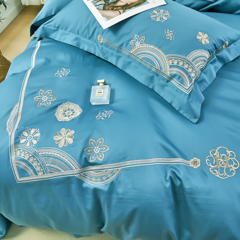 商品名称:星尚 2023新款100支长绒棉绣花四件套-慕颜 梦之蓝