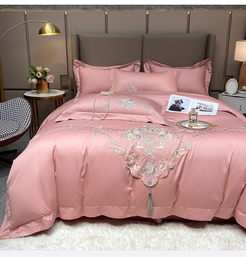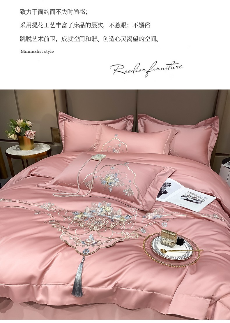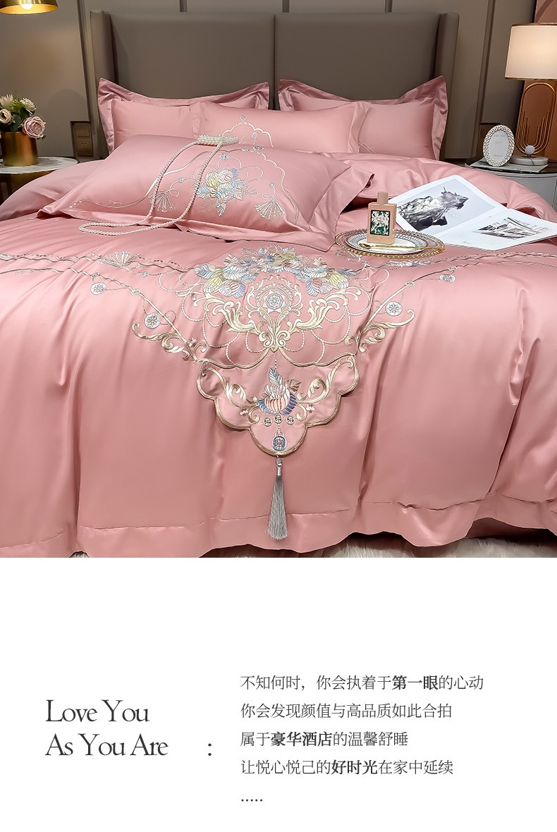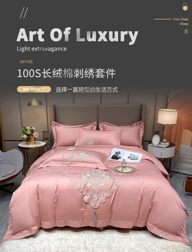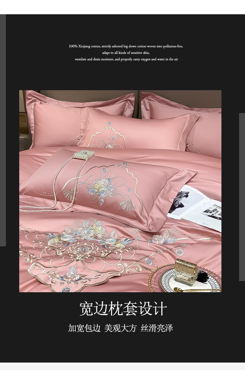 美娘阁2023新款长绒棉刺绣居家款四件套 花迷宝贝(豆沙)