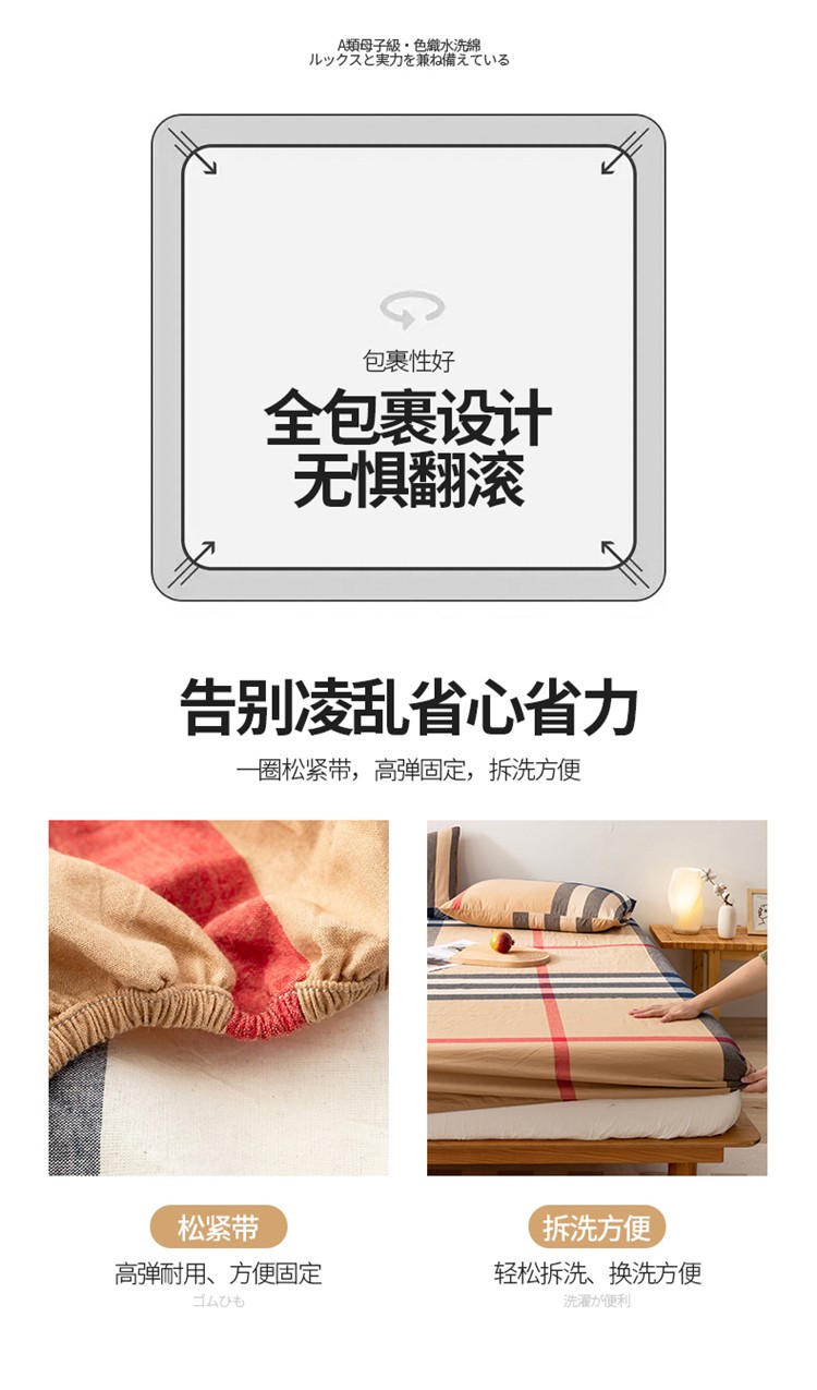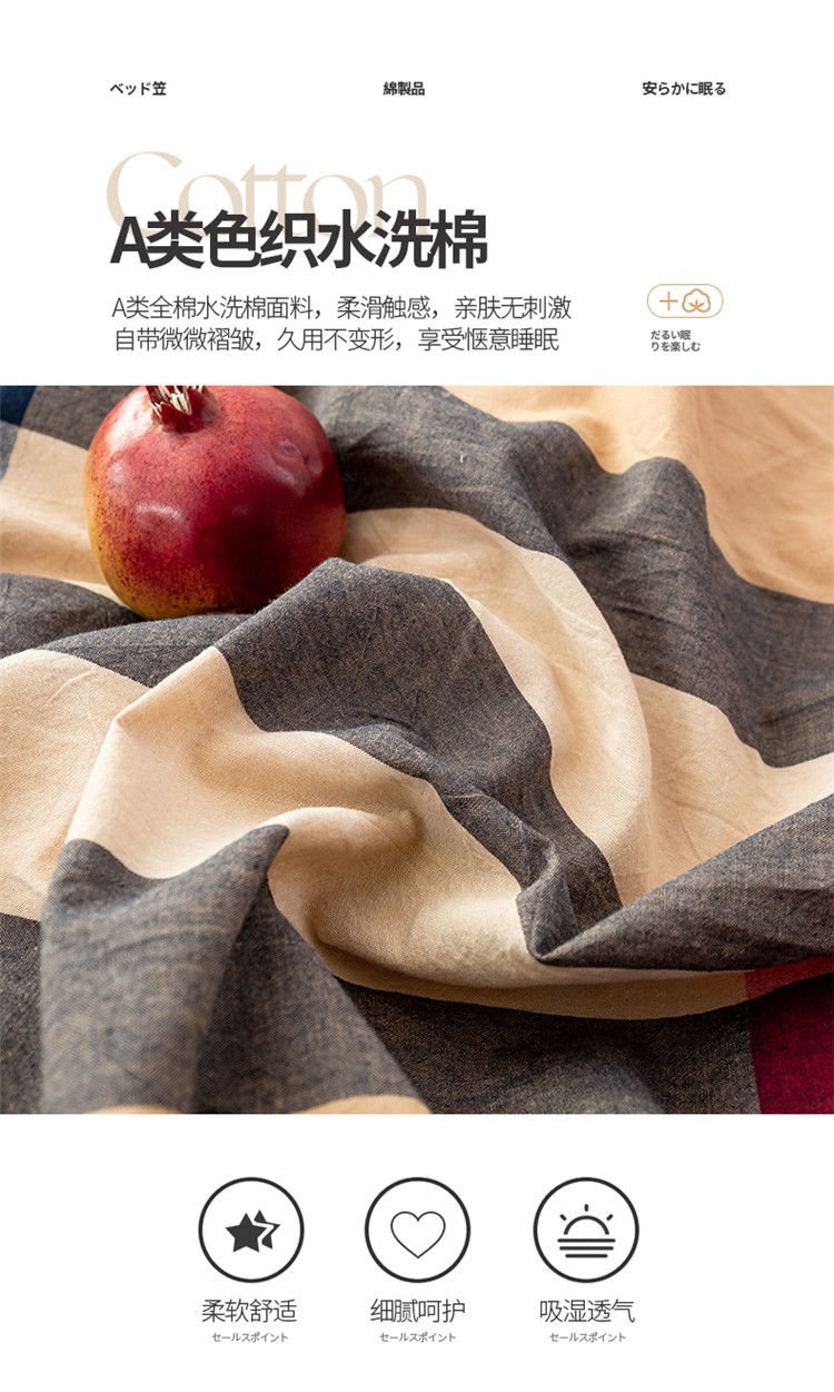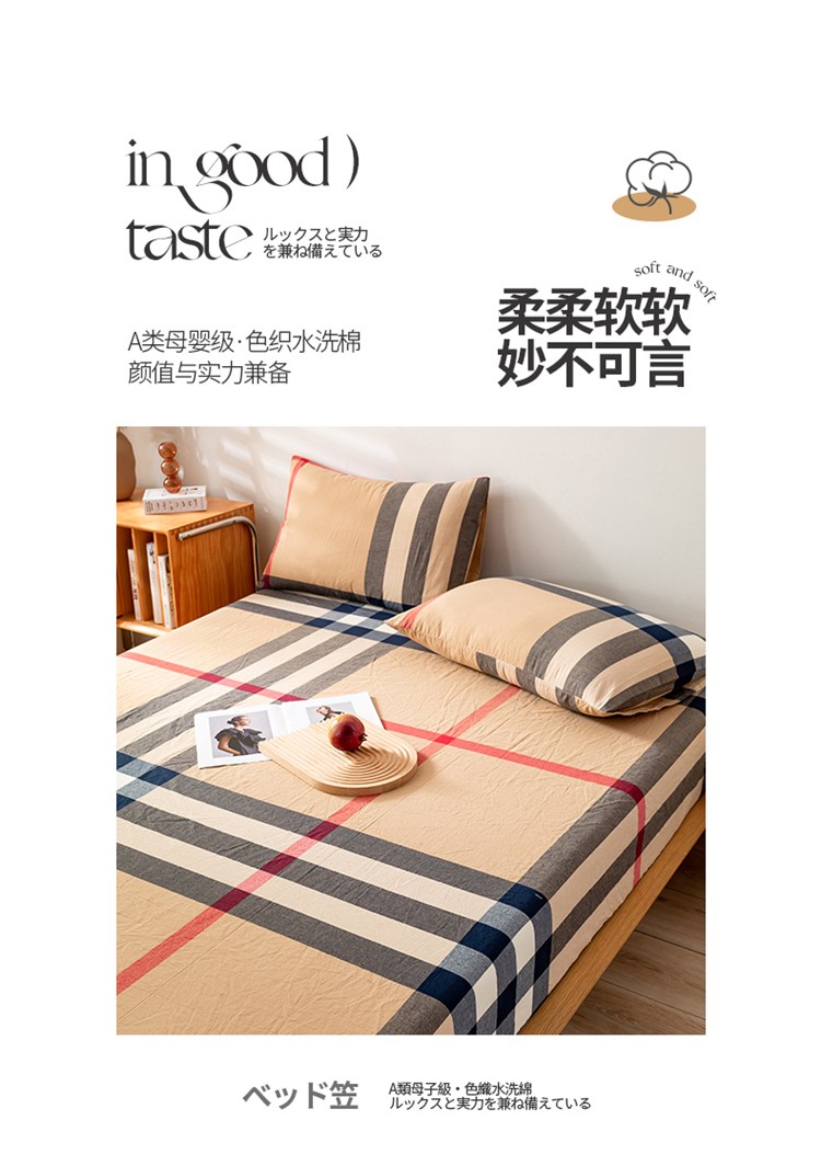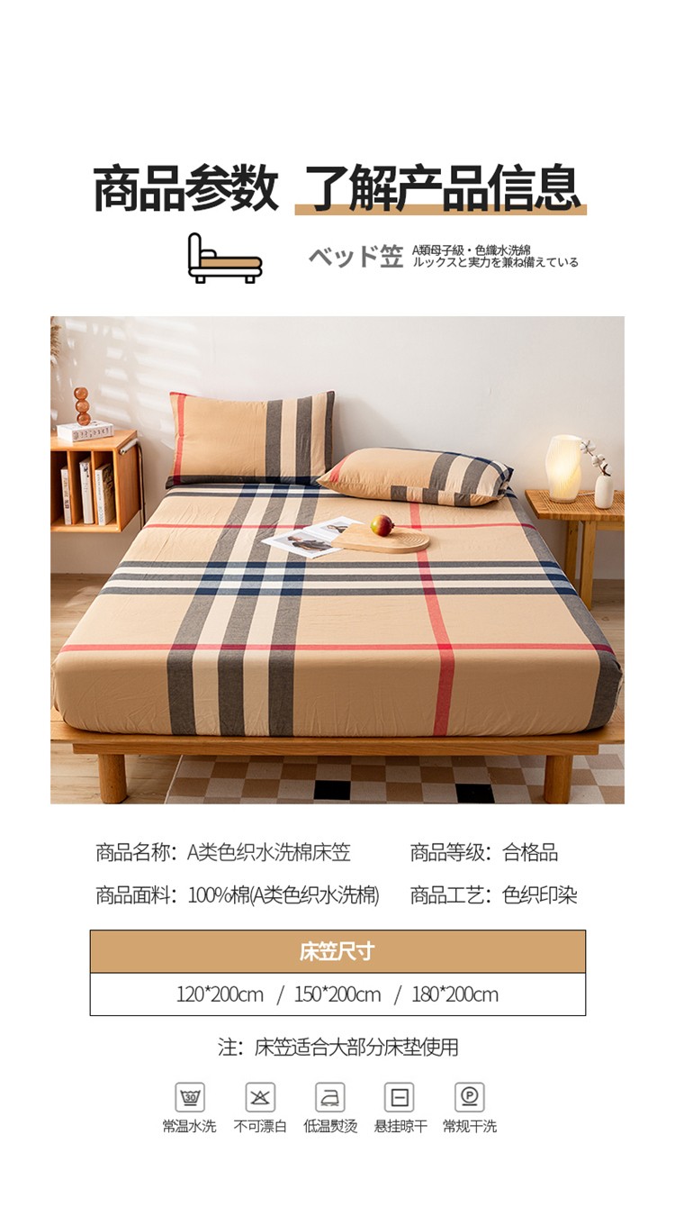 • 91家纺网 家纺一手货源 找家纺 九沐良品 新款A类色织水洗棉床笠 丈青洋红大格