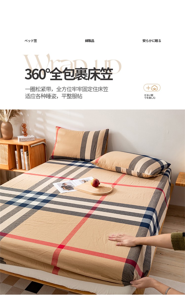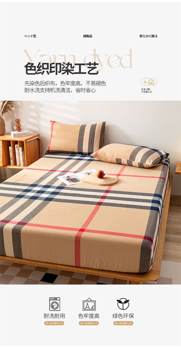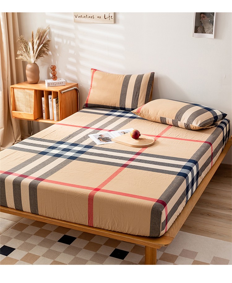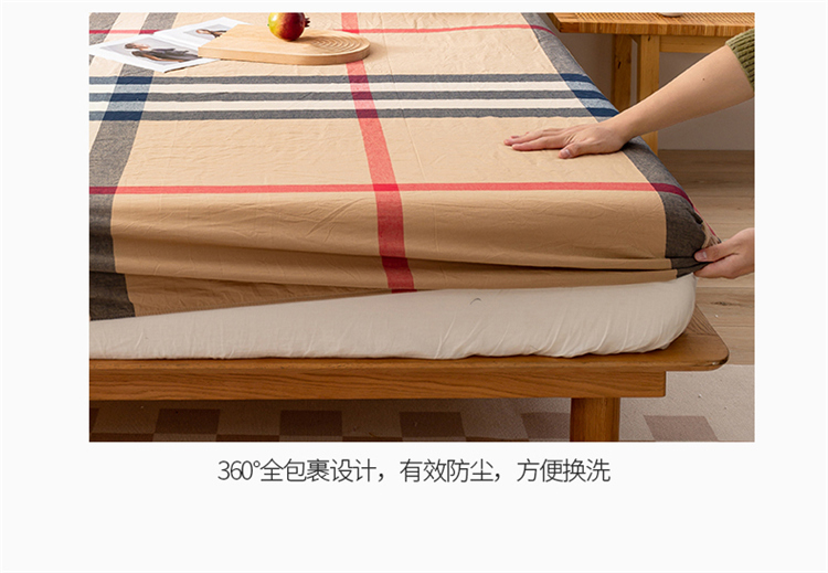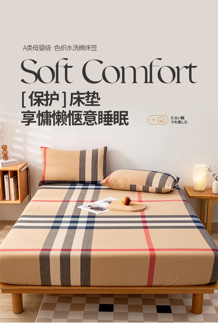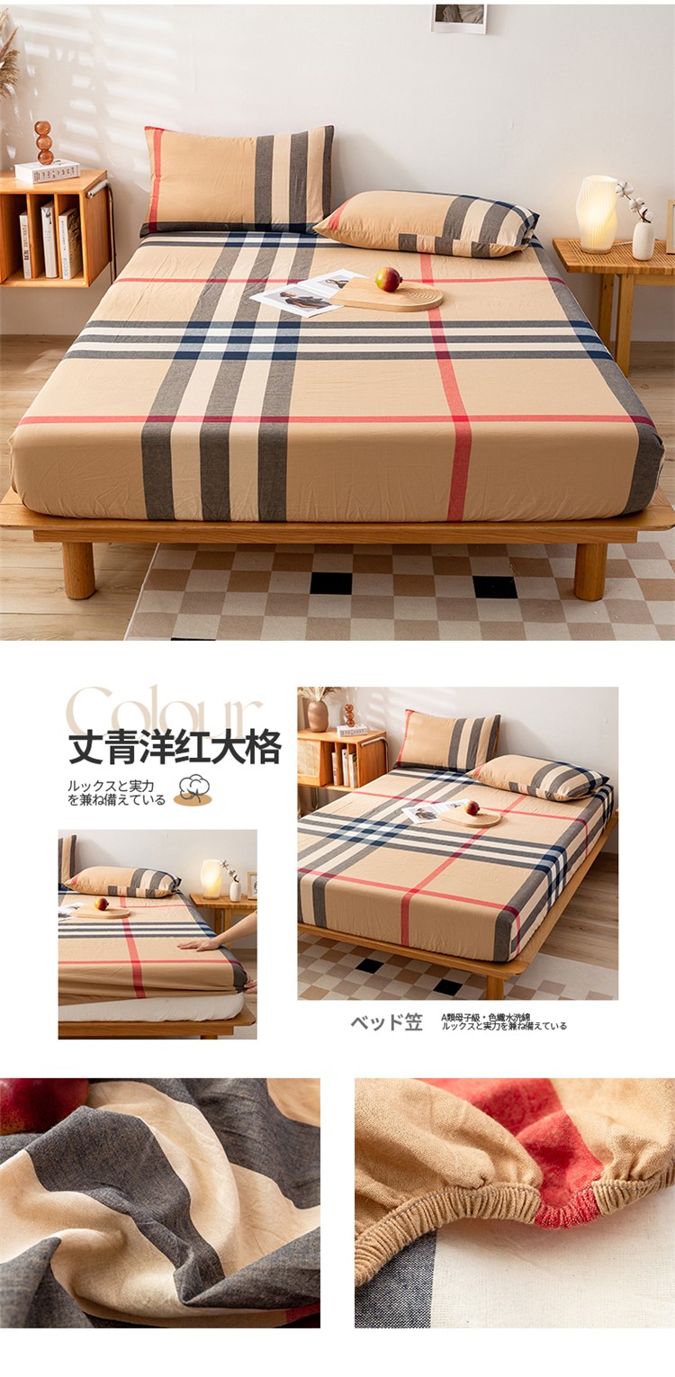 九沐良品 新款A类色织水洗棉床笠 丈青洋红大格