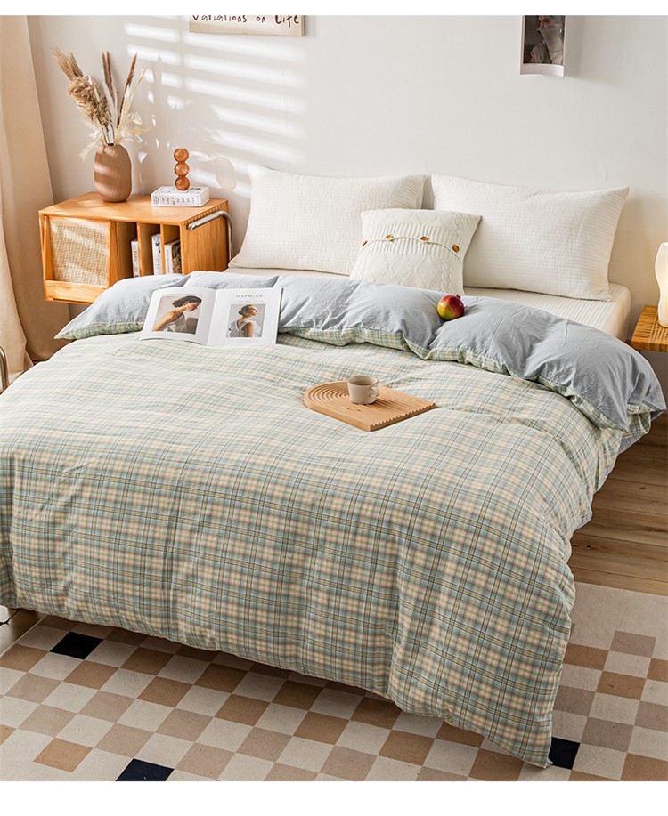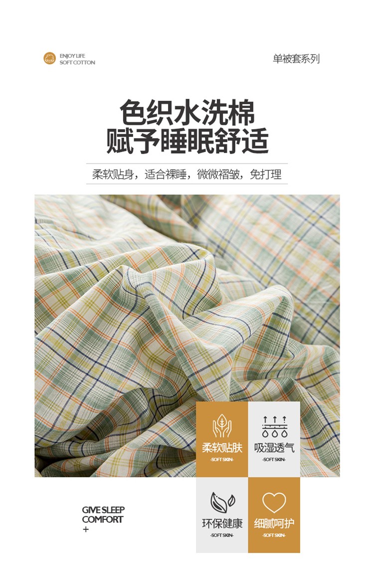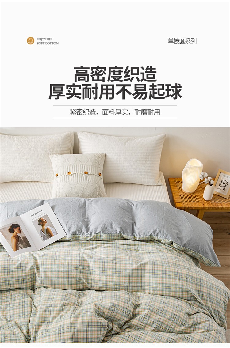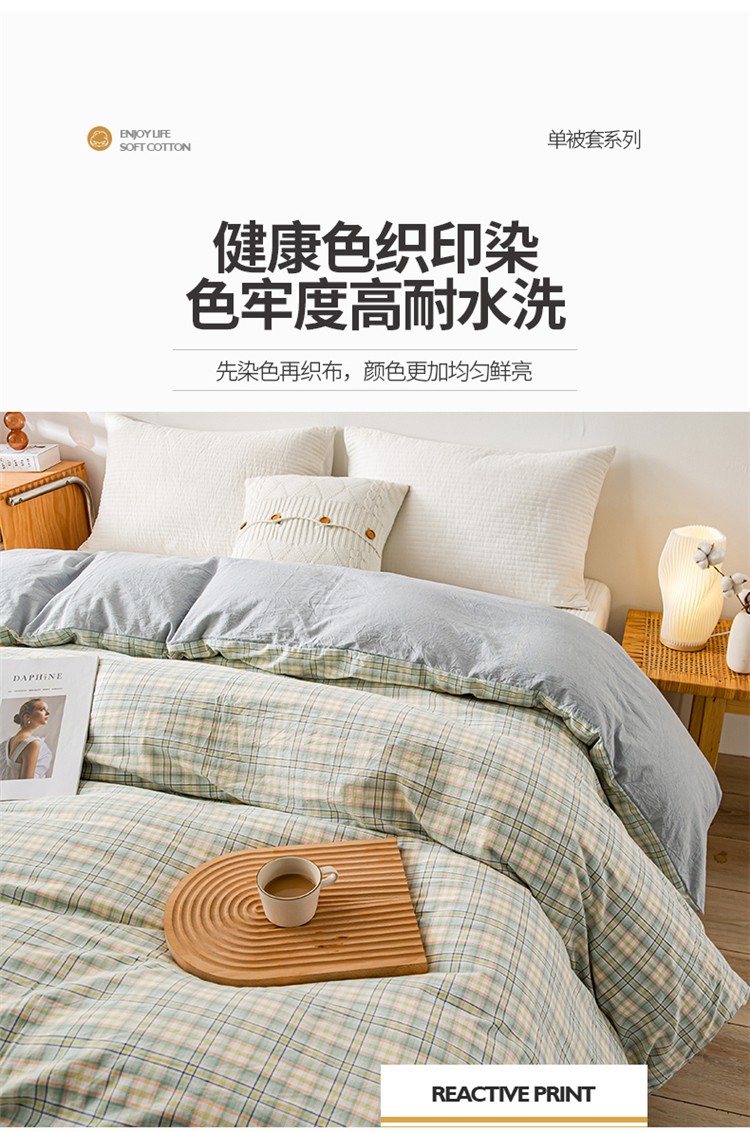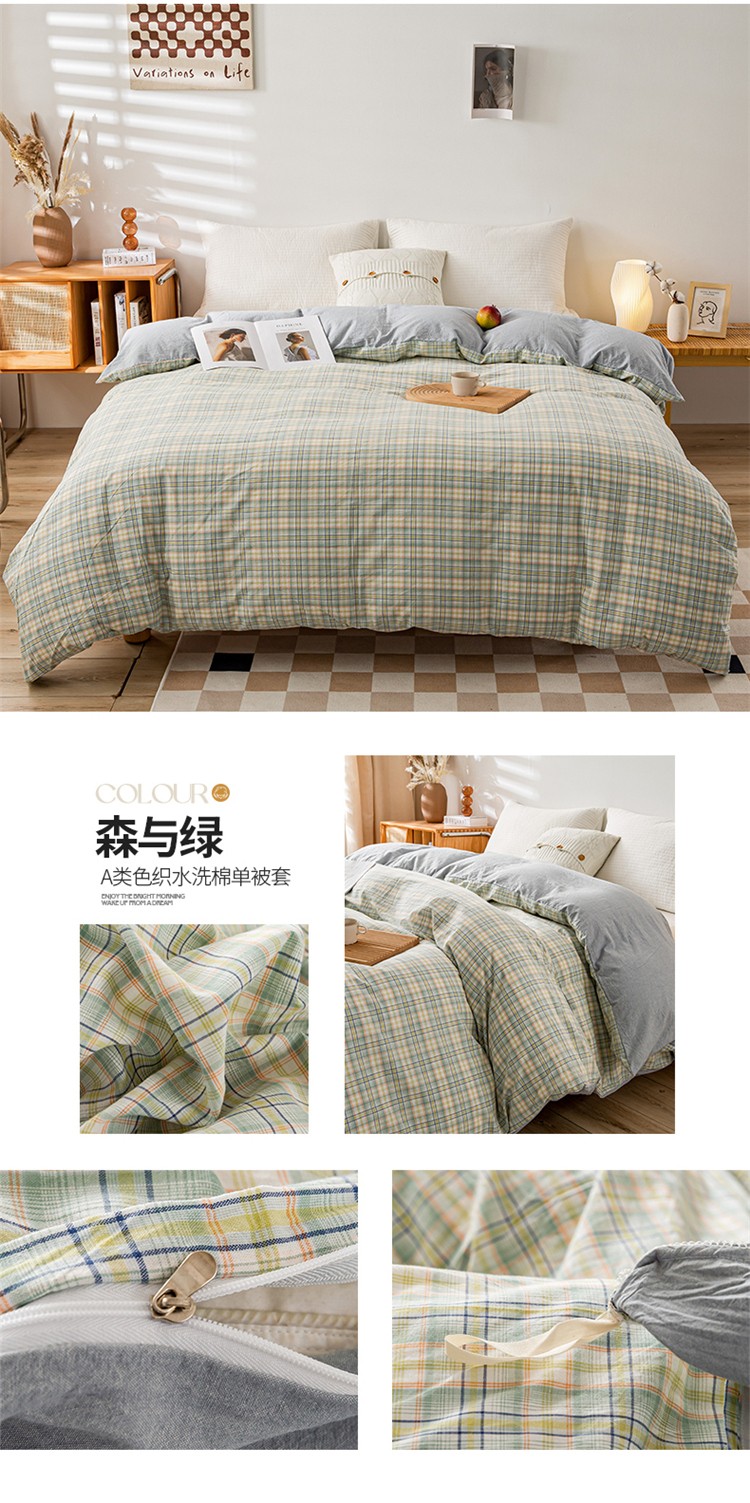 九沐良品 新款A类色织水洗棉四件套单被套 森与绿