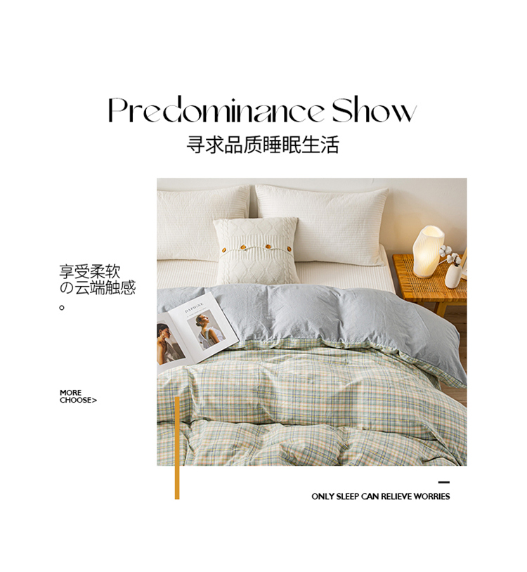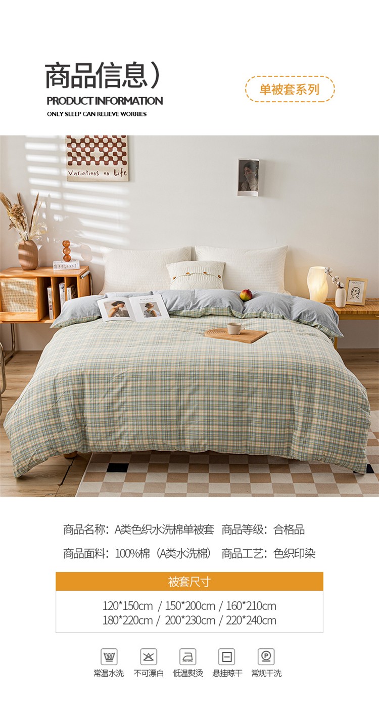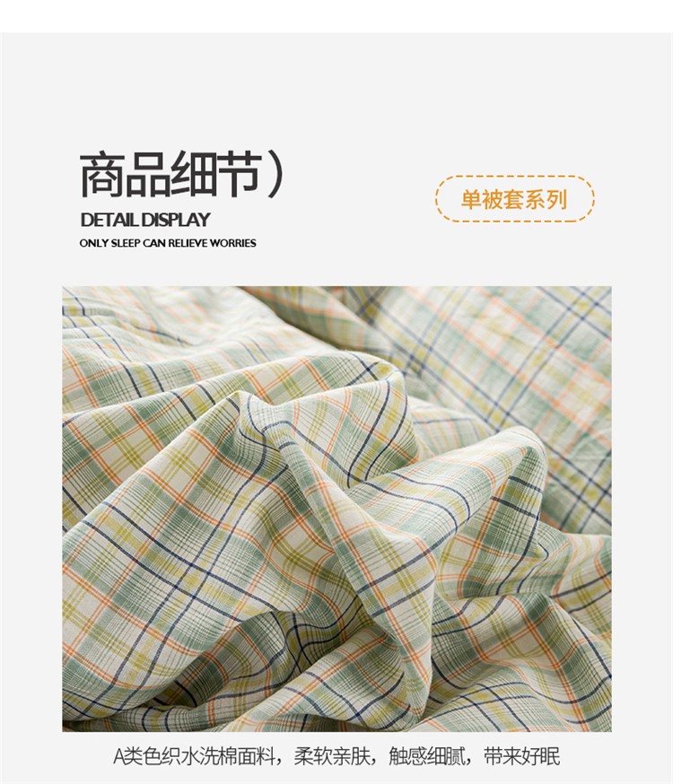 商品名称:九沐良品 新款A类色织水洗棉四件套单被套 森与绿