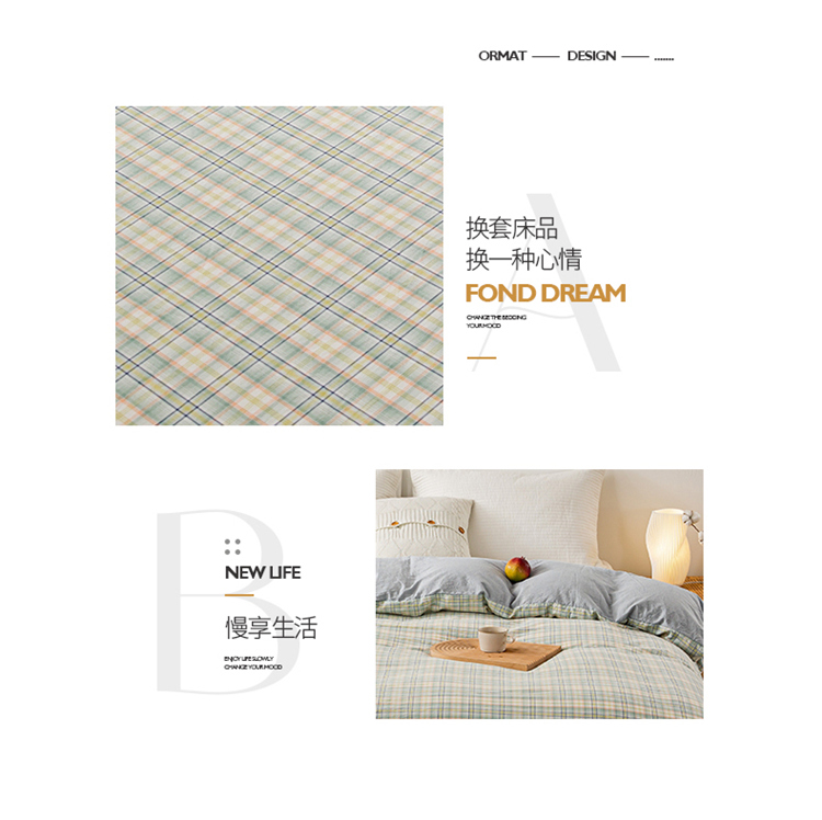 (总)九沐良品 2025新款全棉色织水洗棉无印风四件套,柏拉图-兰,粉小格,格林粉,灰条,绿大格,米小格,米粽艾青格,莫妮卡粉,莫妮卡兰,浅蓝小格,青春海蓝,希尔威亚蓝,新灰格,星空粉,星空绿,英伦格,中灰条