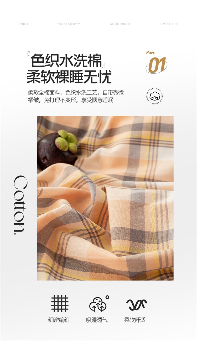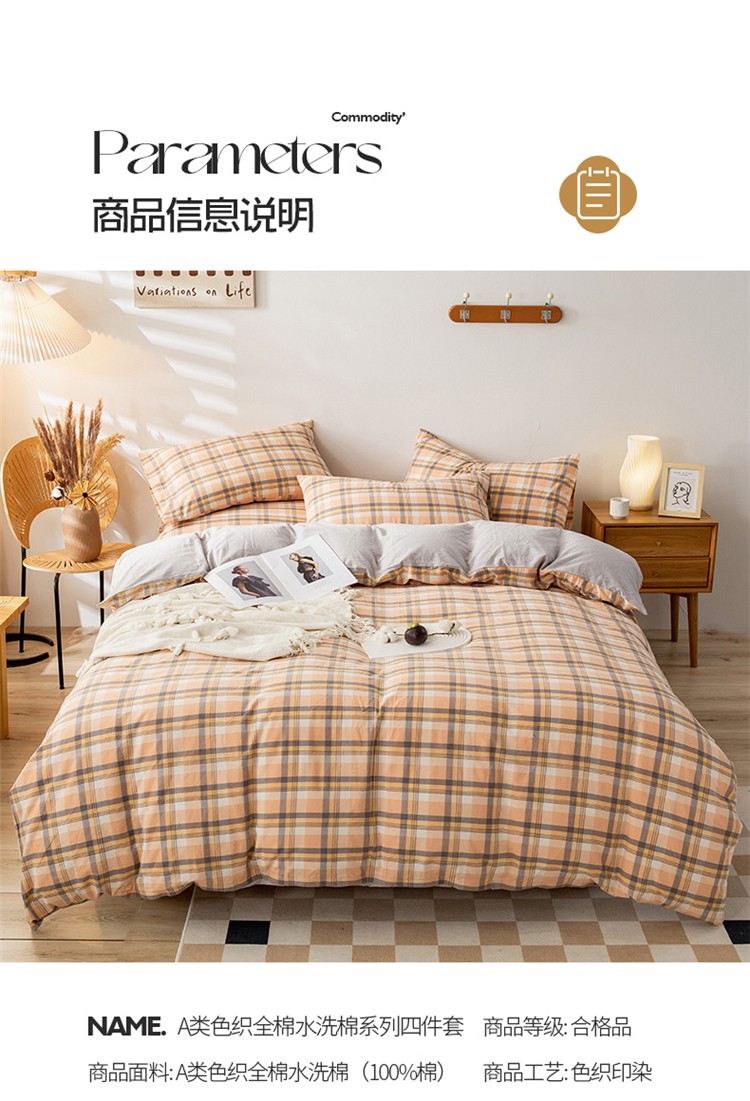 当前位置: 91家纺网 > 商品网购 > 床品套件 > 四件套 > 水洗棉四件套 > 九沐良品 新款A类色织水洗棉四件套 莫妮卡桔