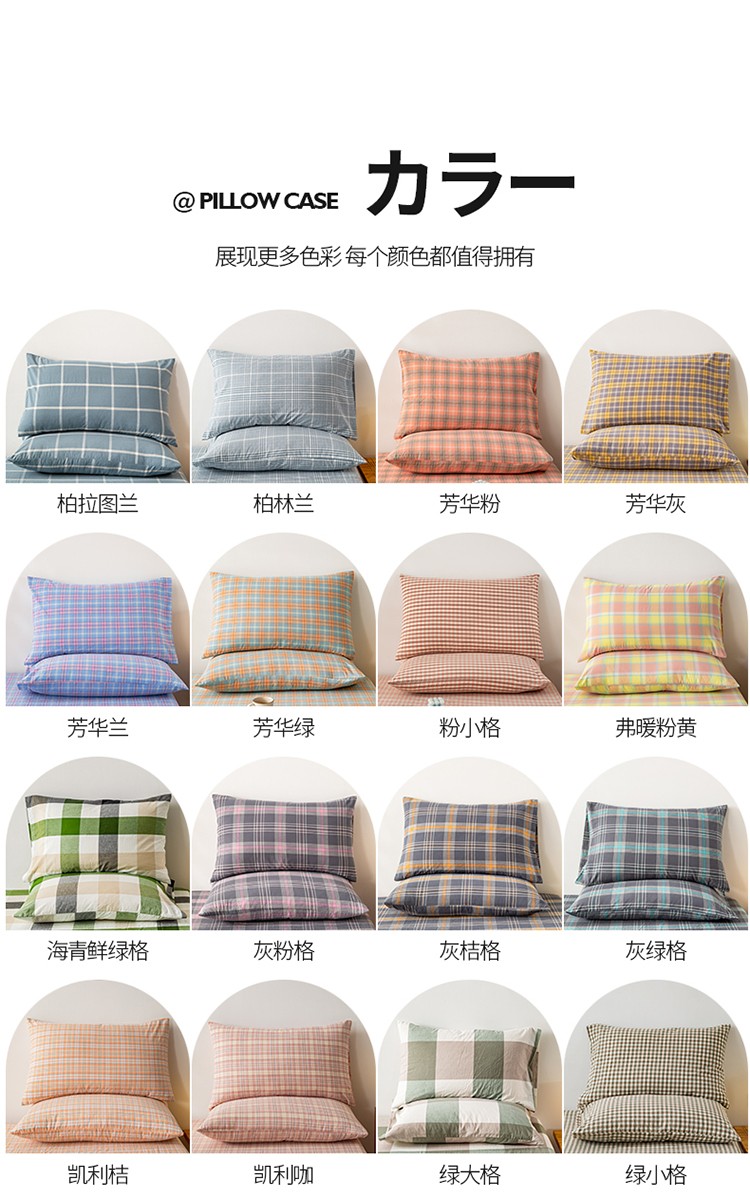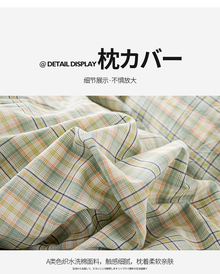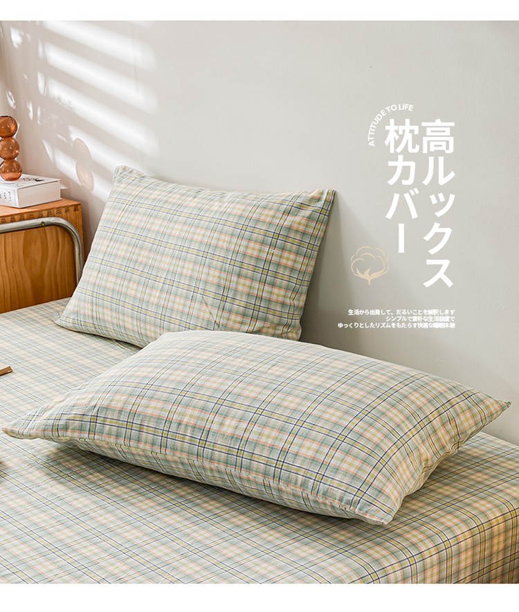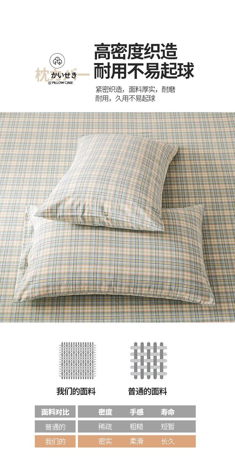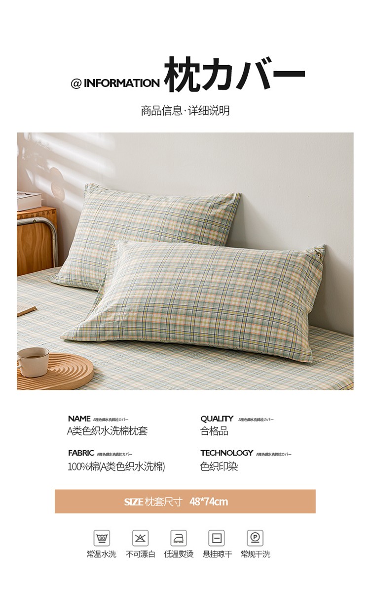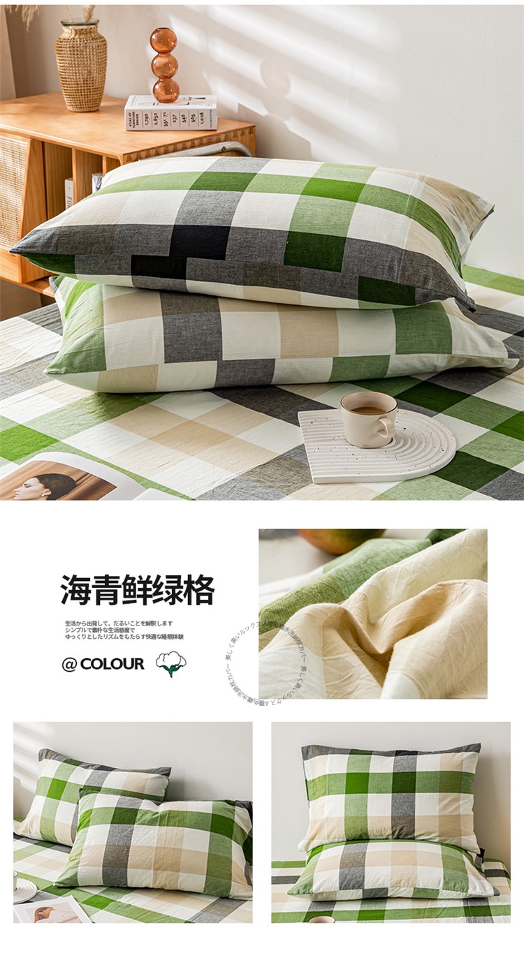 商品名称:九沐良品 新款A类色织水洗棉四件套-单品枕套 海青鲜绿格