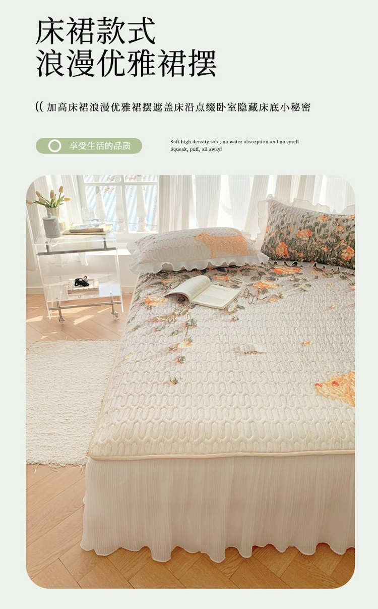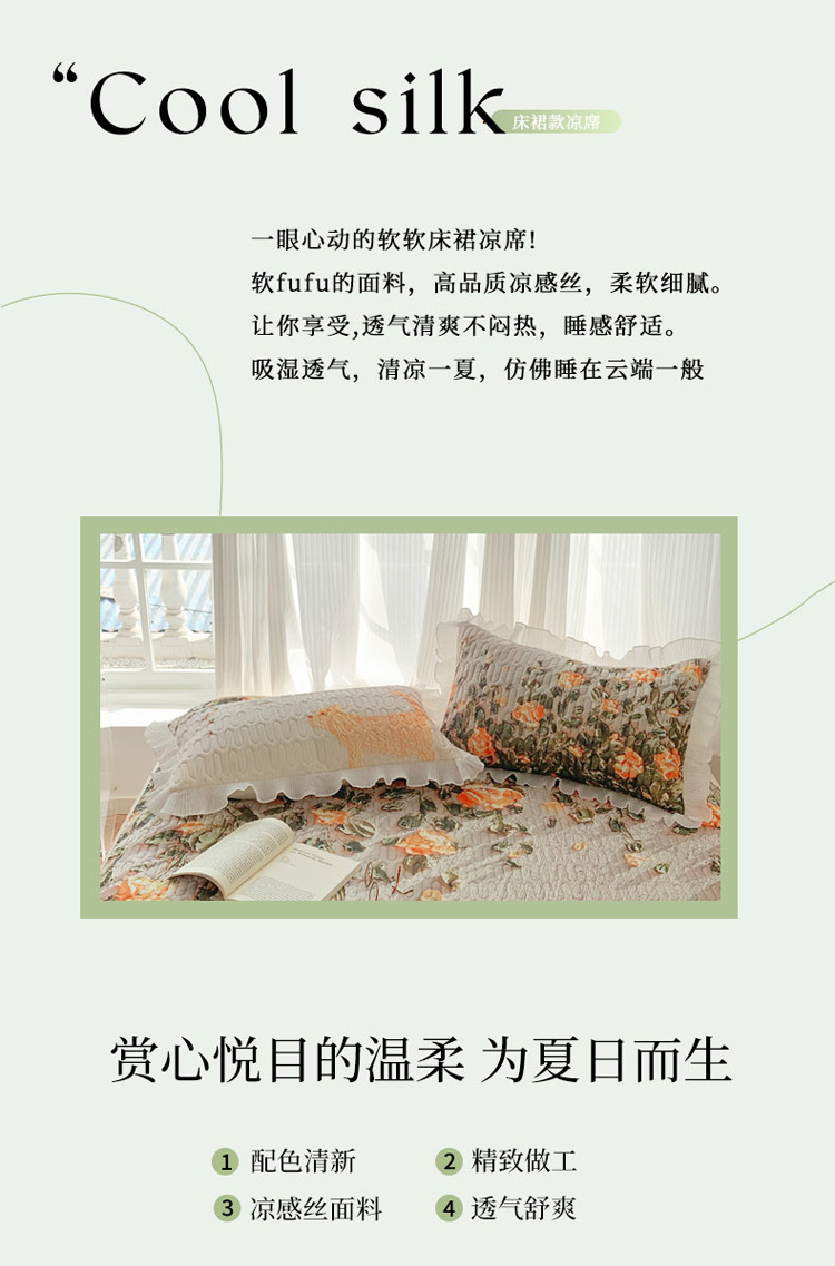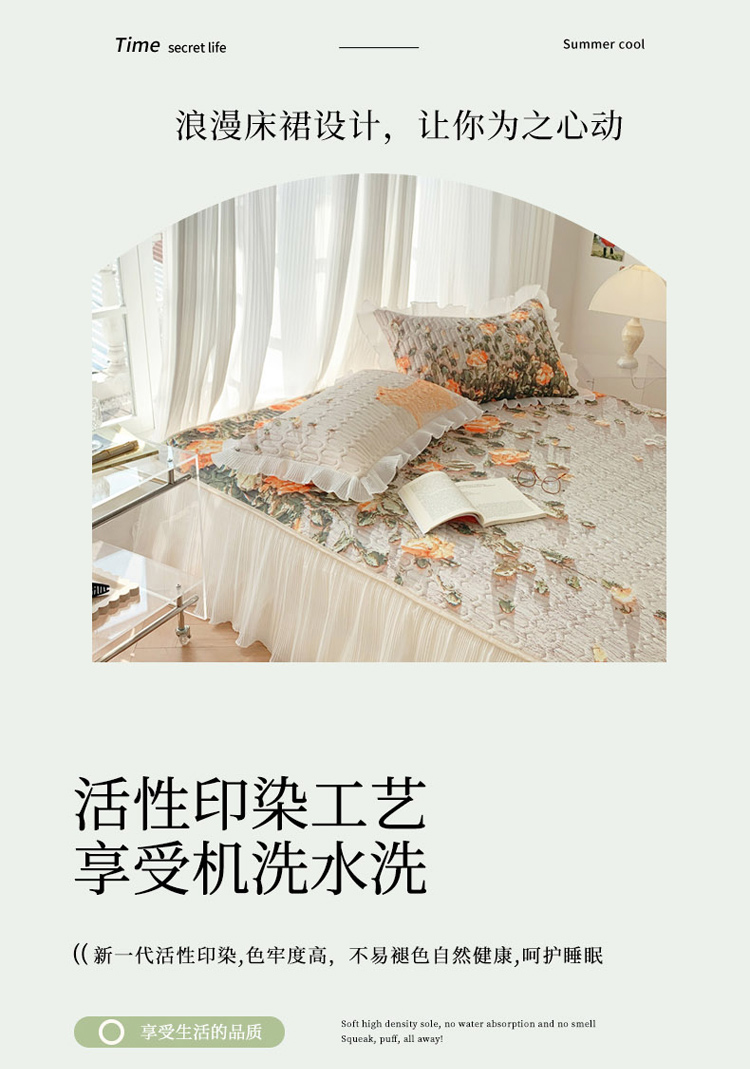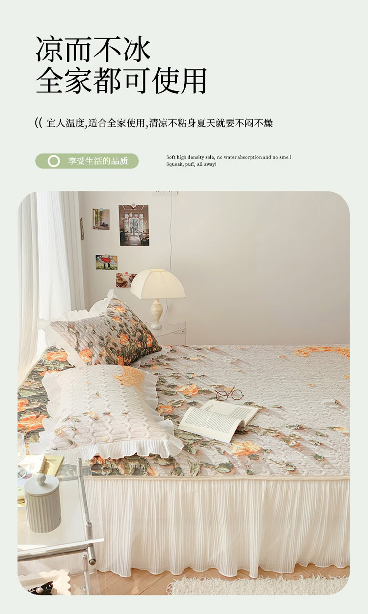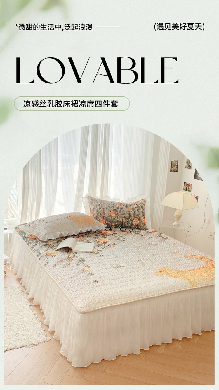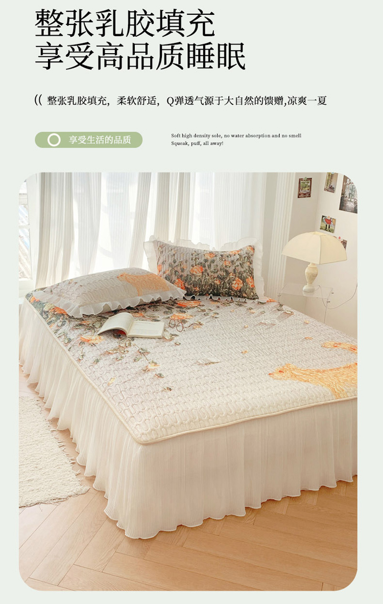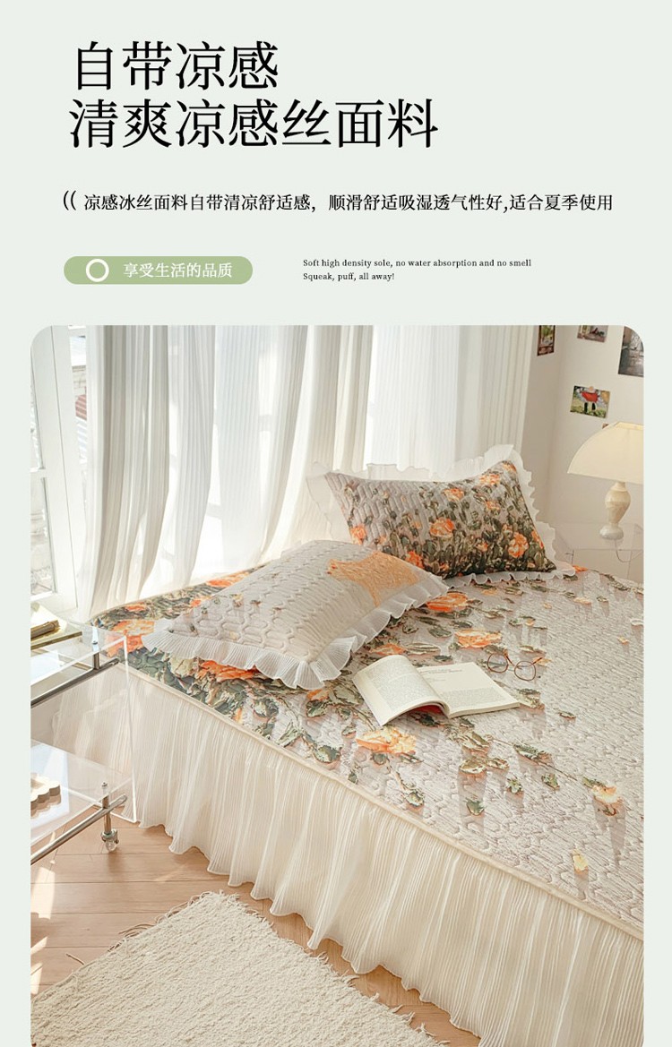 商品名称:慕澄 2023新款大版雪纺床裙款乳胶凉席系列 床裙款-风吹一夏
