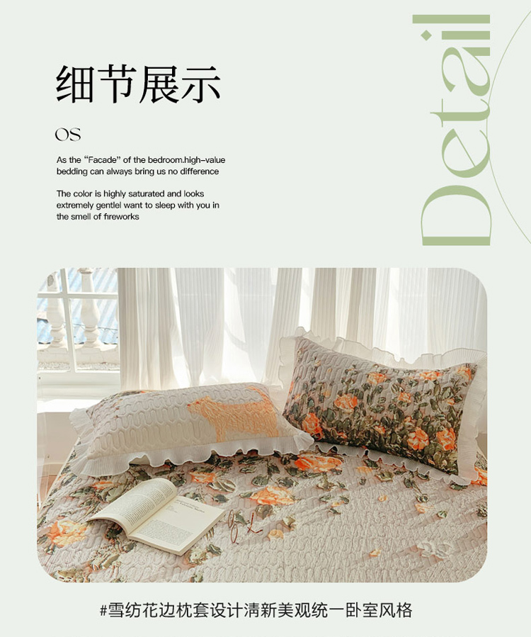慕澄家纺 2024新款时尚印花泡泡棉花边夏被夏凉被空调被 夏被-叶苏,夏被-叶苏