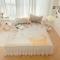 (总)慕澄家纺 2022新款华夫格雪纺花边四件套,湖水绿,魅惑紫,奶白色,奶黄色,浅豆沙,情调灰,天空蓝,樱花粉