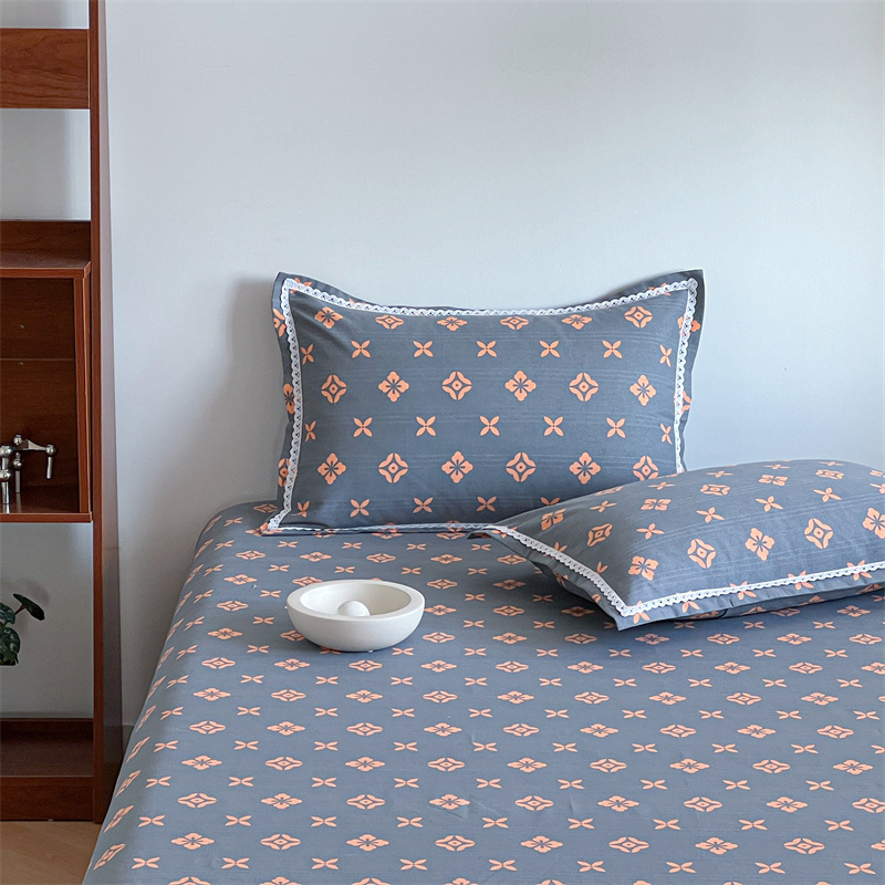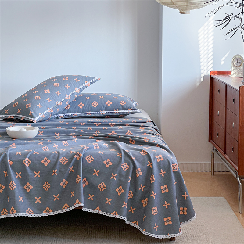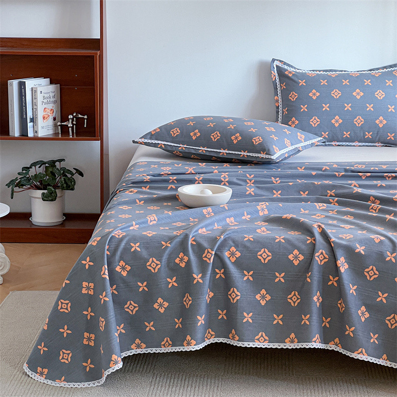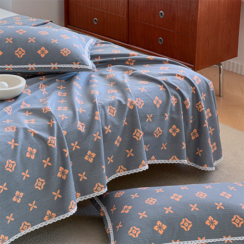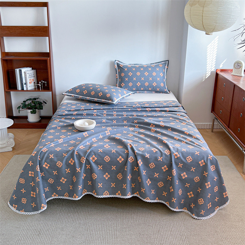 萌宝 新款纯棉细纱三枚缎卡帆布花边款软凉席床单路易世家