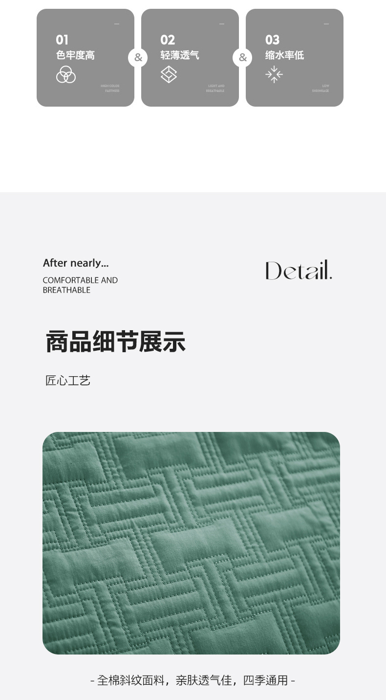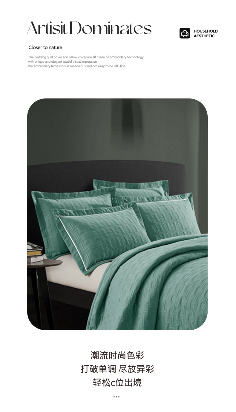 商品名称:优乐家纺 2023新款双面全棉斜纹绗绣床盖唐顿系列三件套 唐顿-森林绿